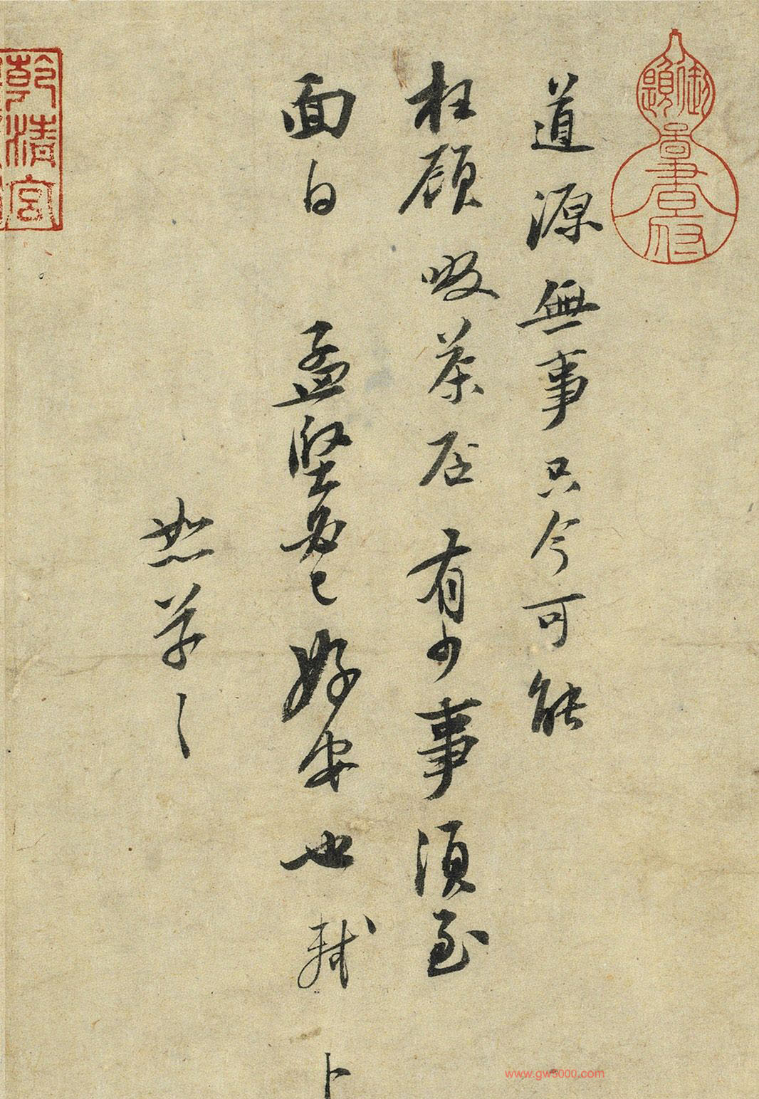 释文:道源无事 只今可能枉顾啜茶否 有少事须至面白 孟坚必已好安也 轼上 恕草草
