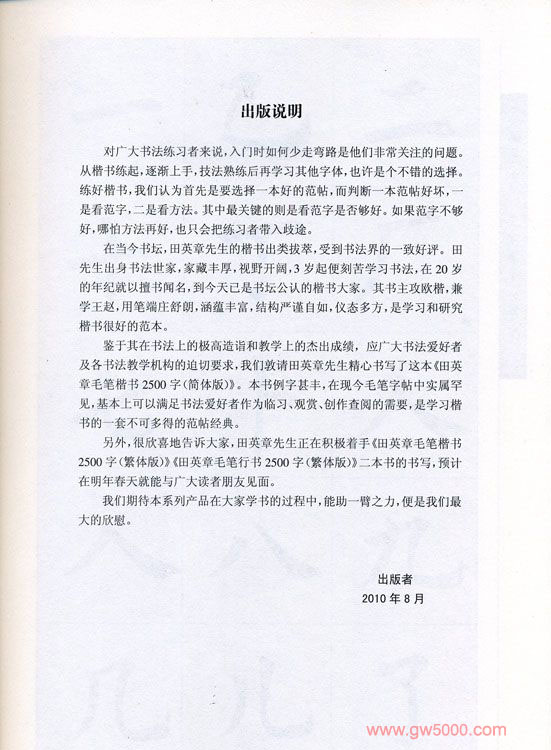 简体版字帖:田英章毛笔楷书2500字,湖南美术出版社。