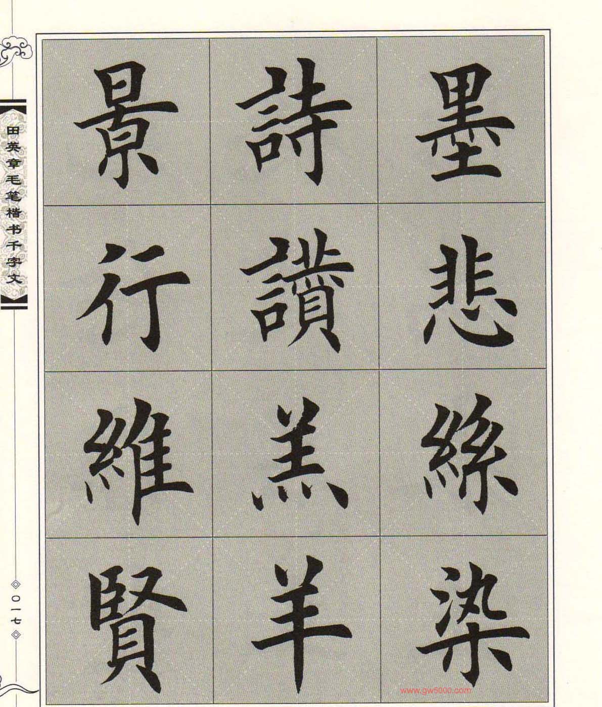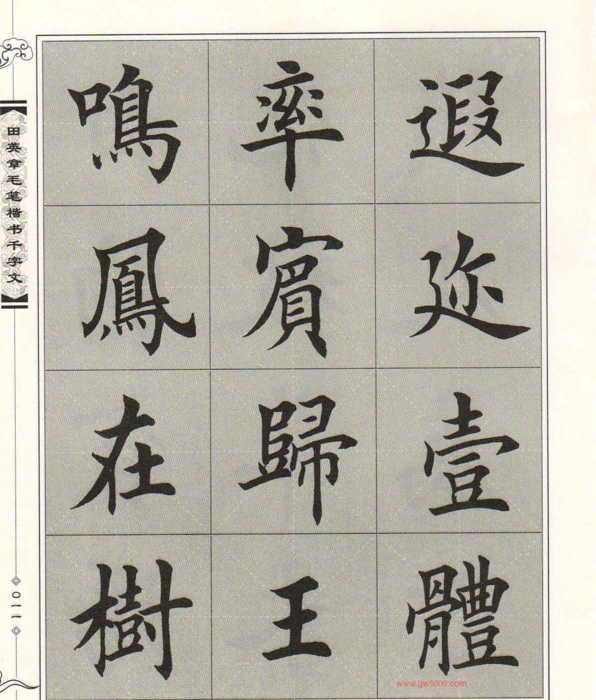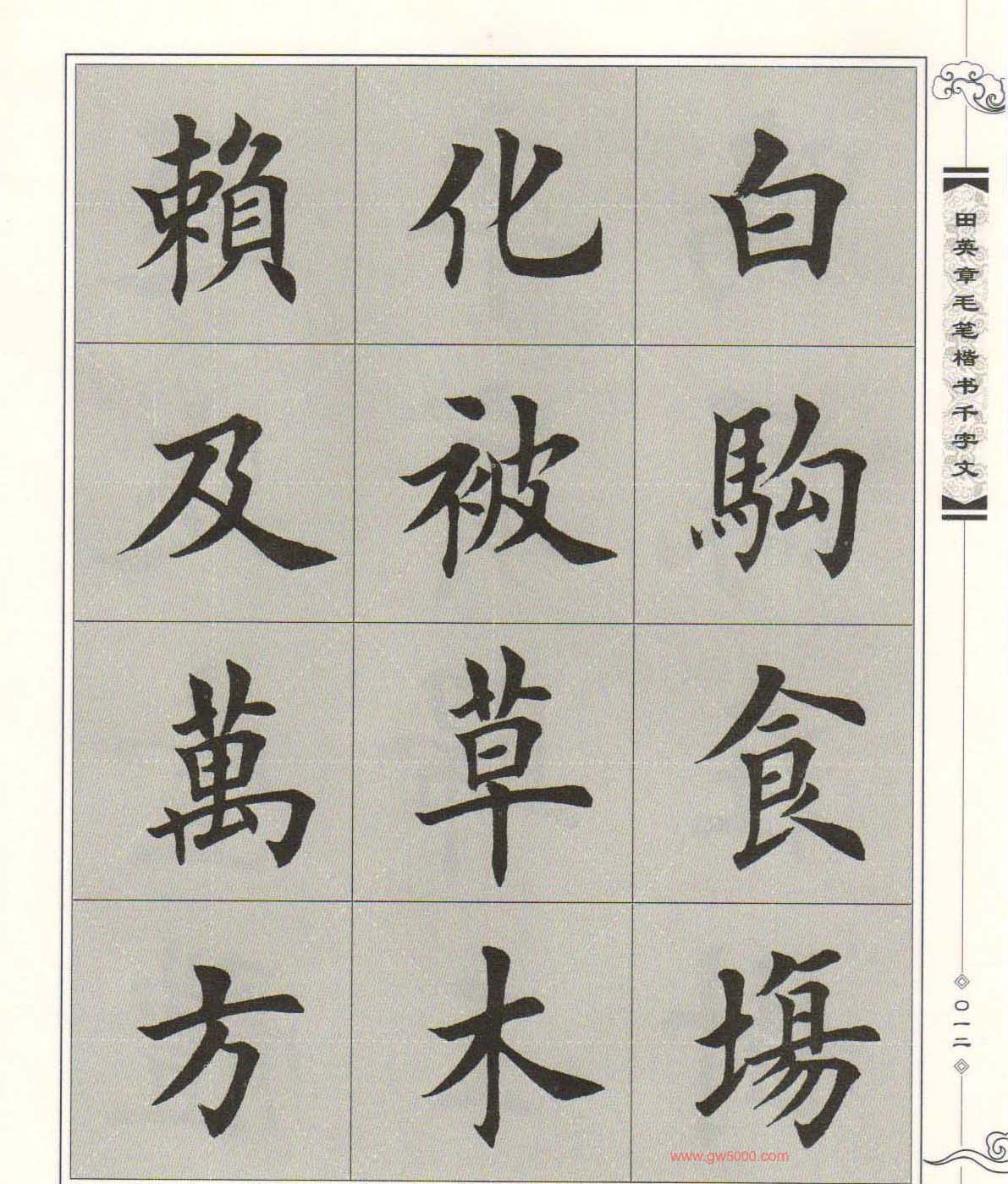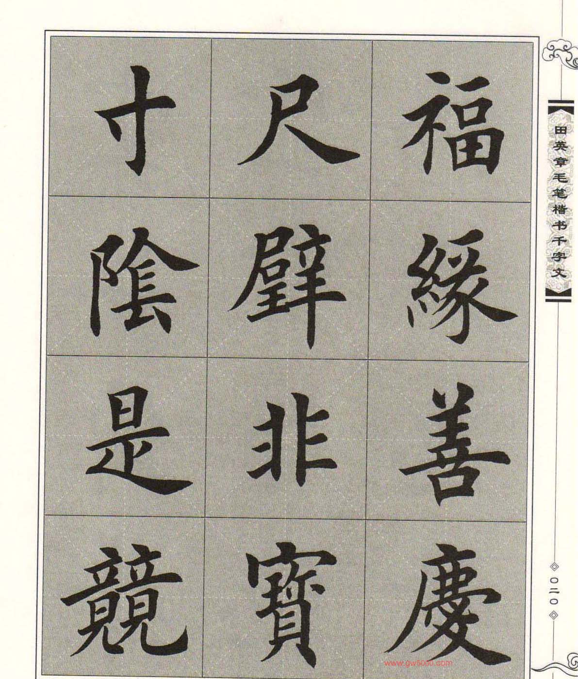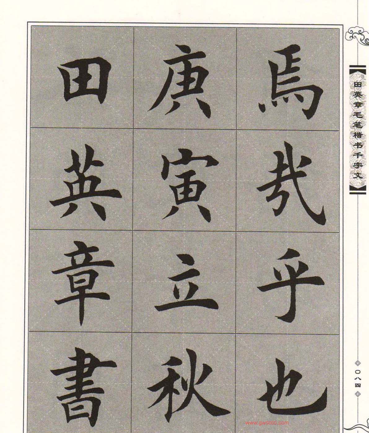字帖下载《田英章毛笔楷书千字文》人民美术出版社;高清晰放大书法字帖图片85张。