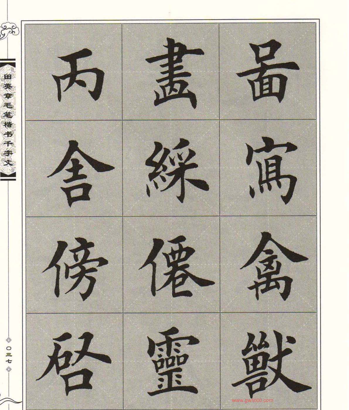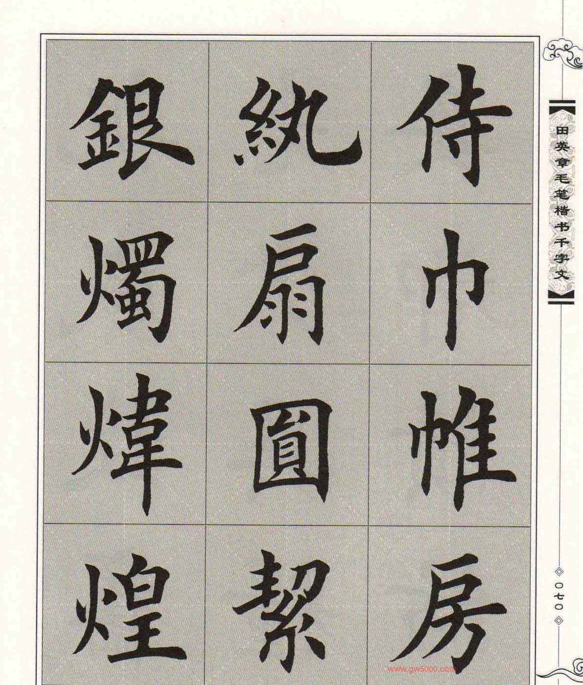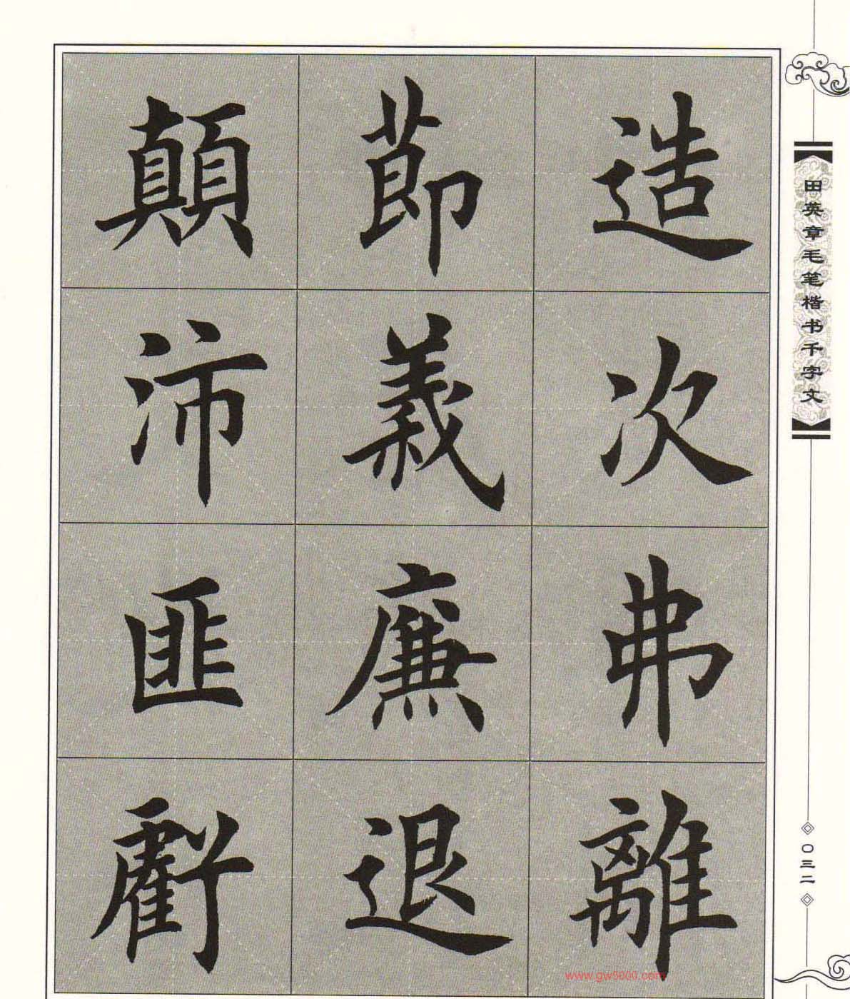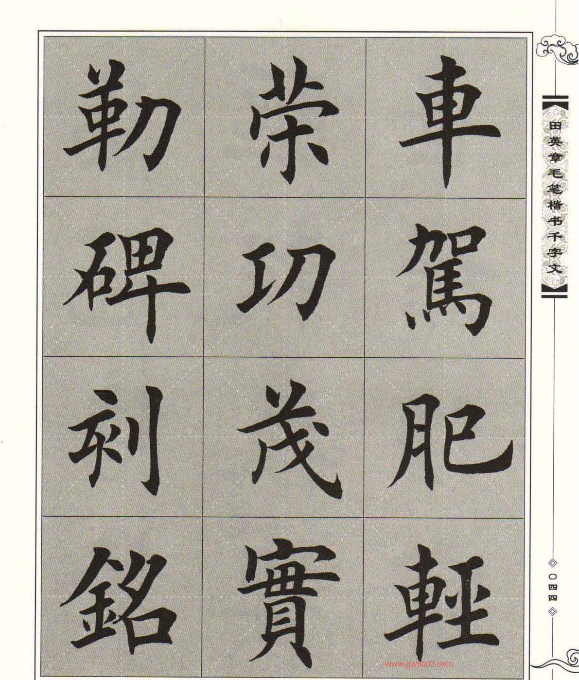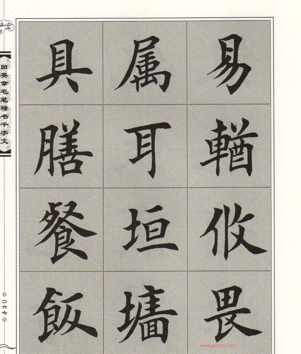 字帖下载《田英章毛笔楷书千字文》人民美术出版社;高清晰放大书法字帖图片85张。