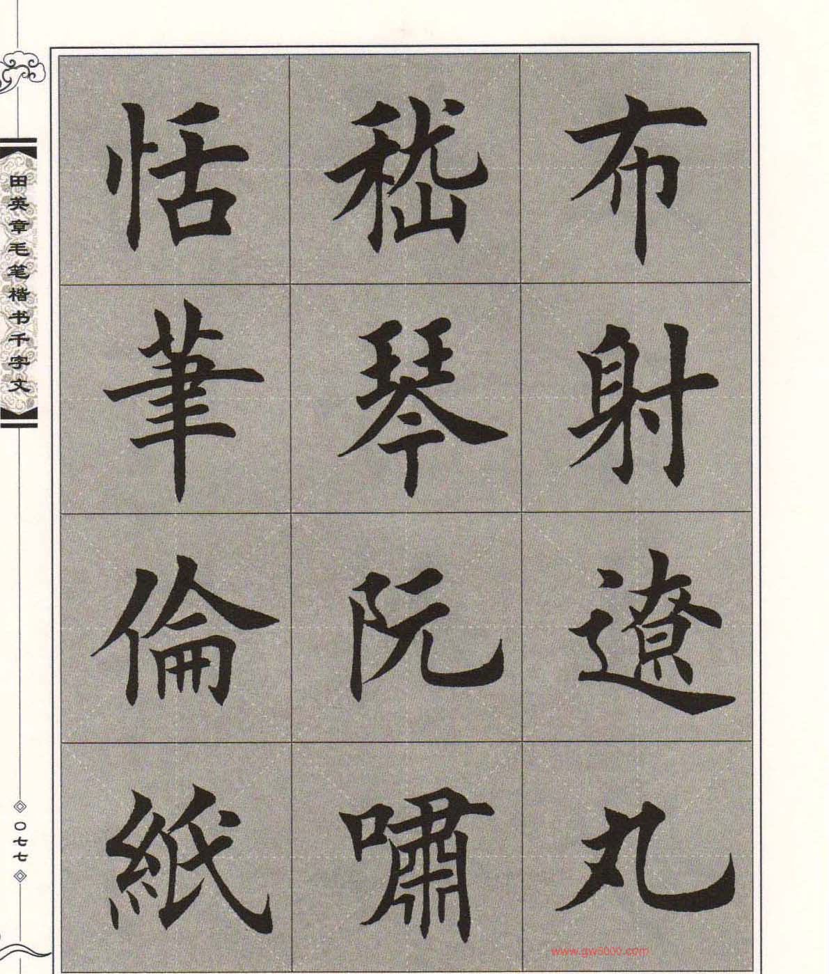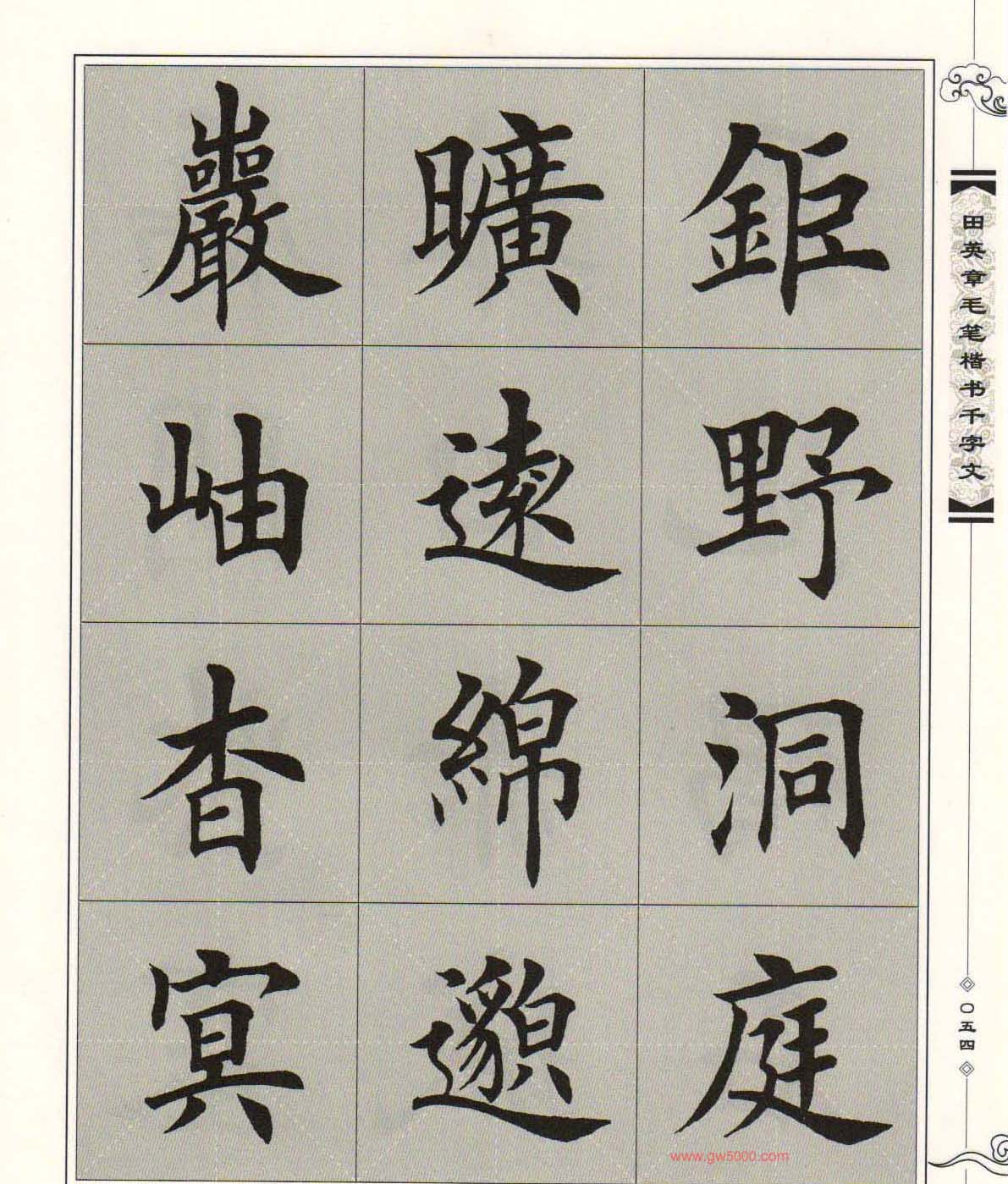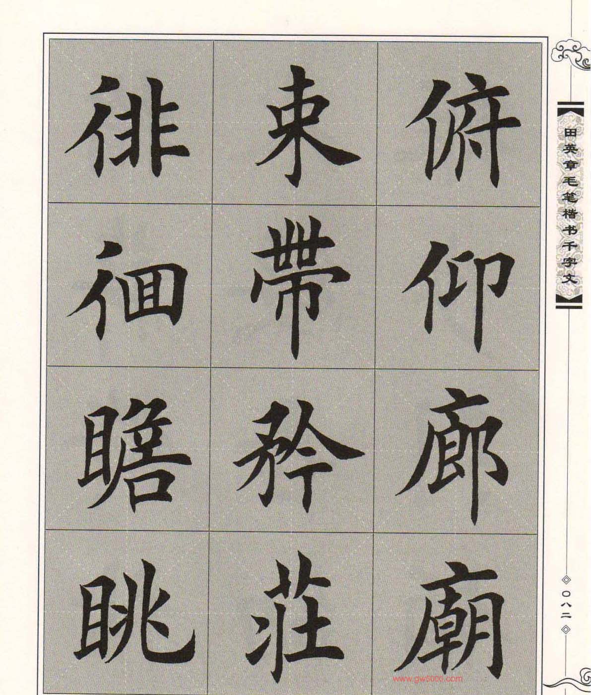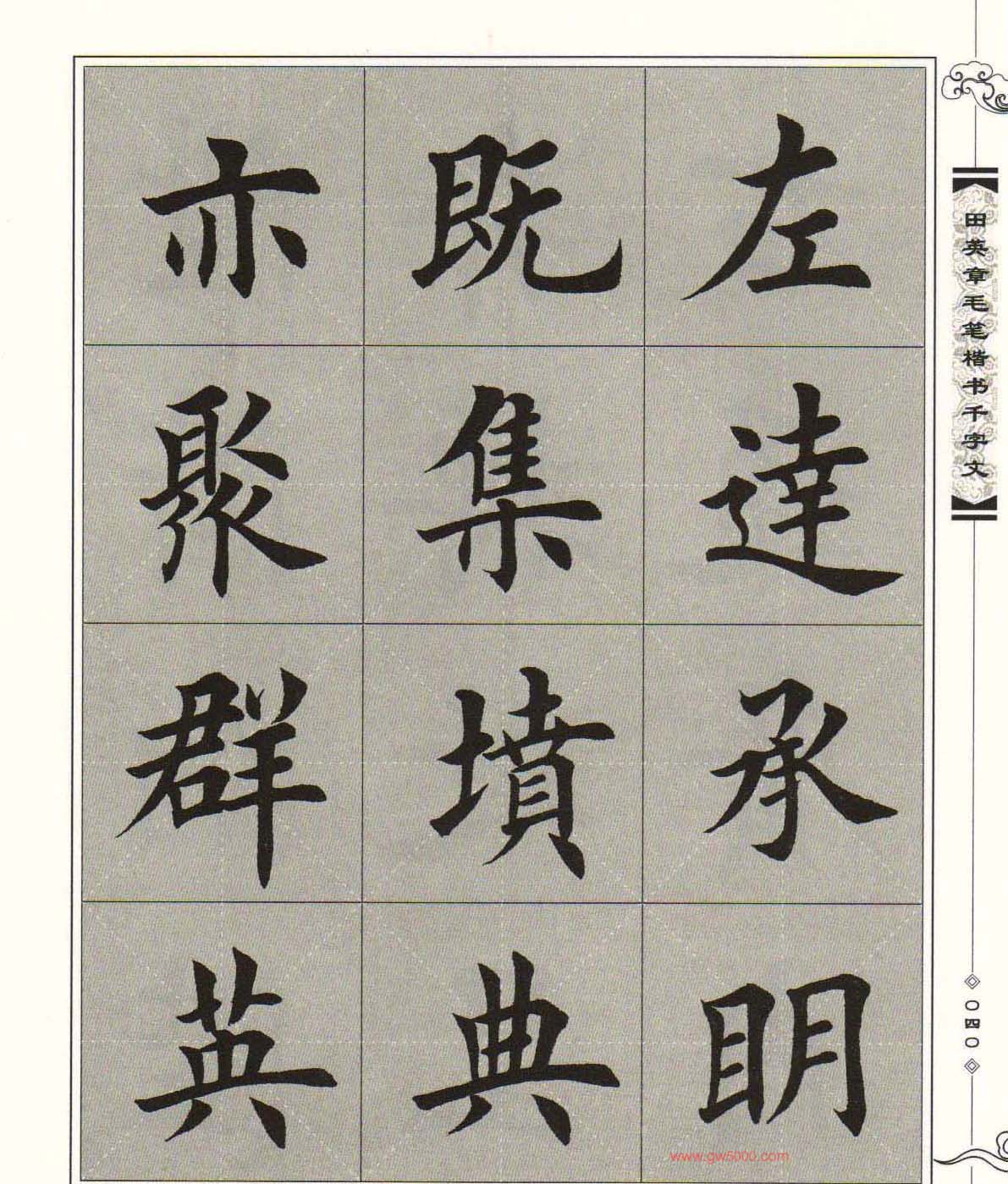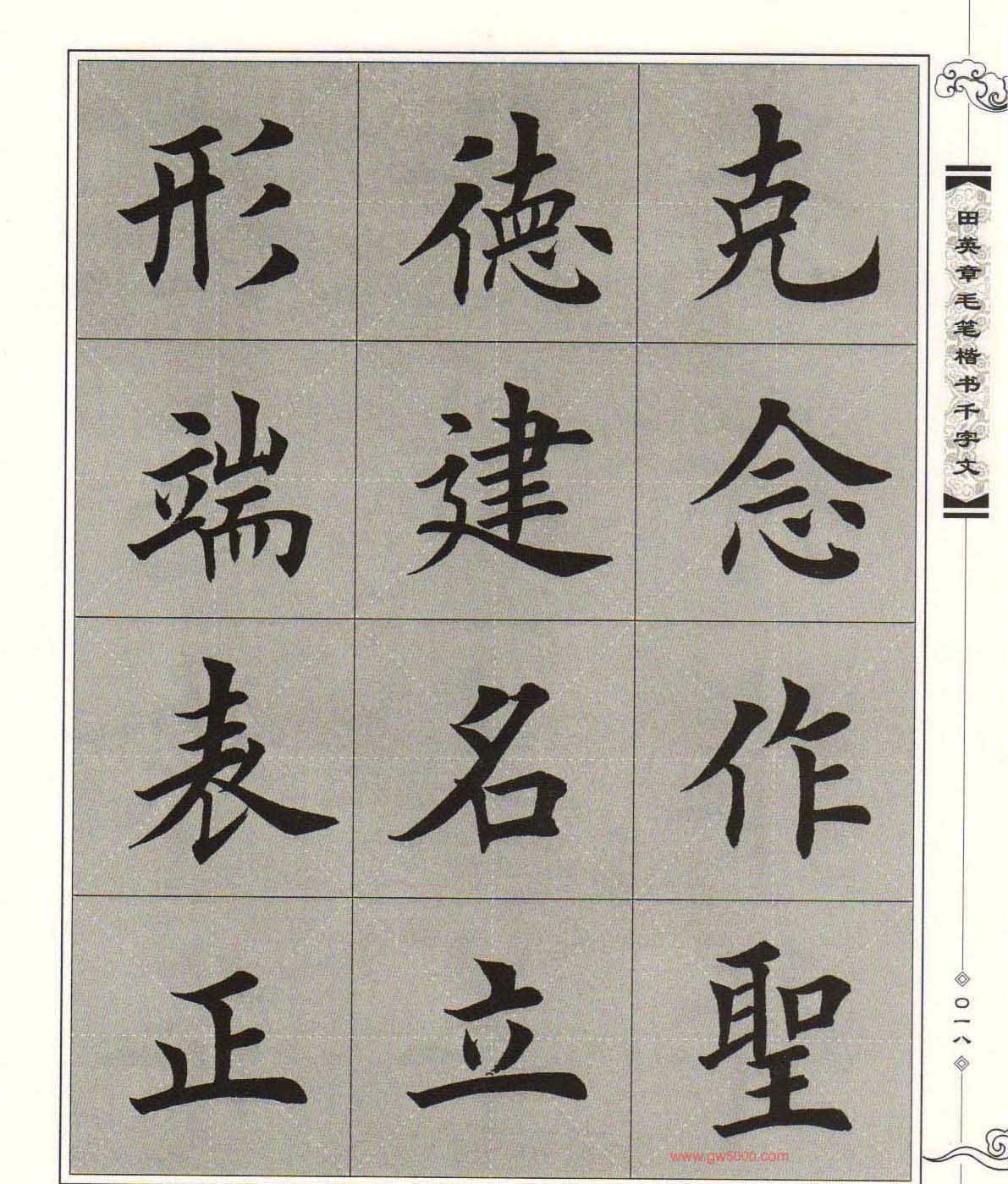 字帖下载《田英章毛笔楷书千字文》人民美术出版社;高清晰放大书法字帖图片85张。