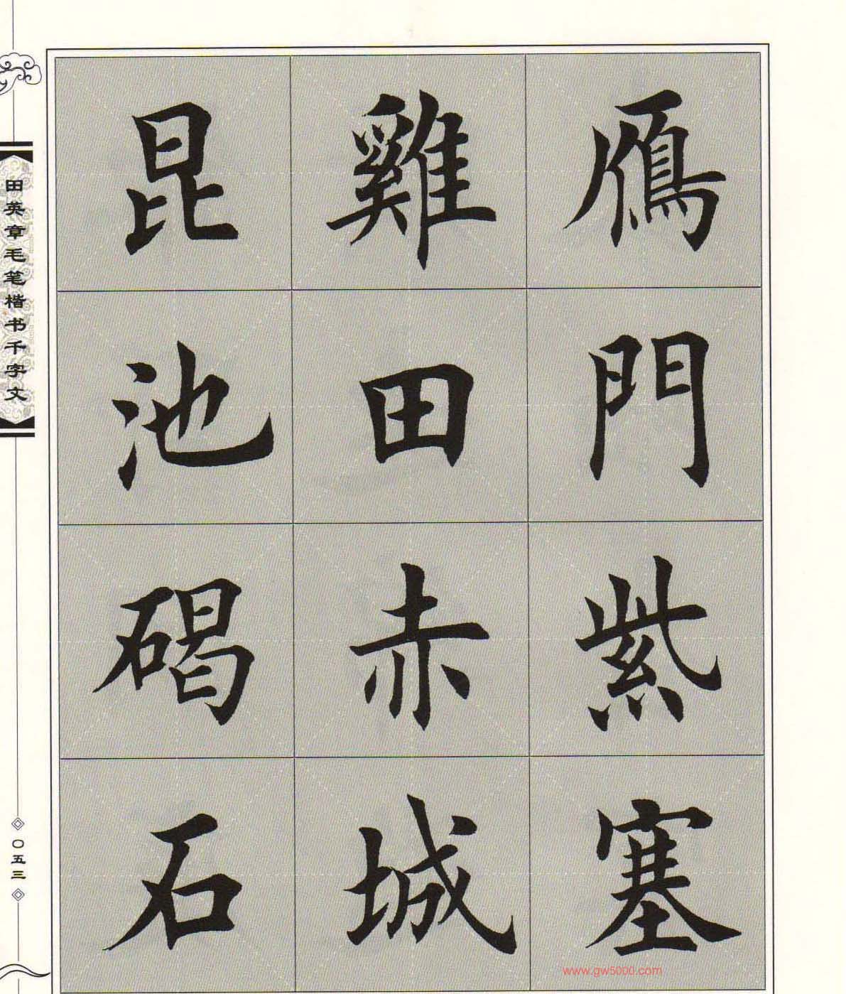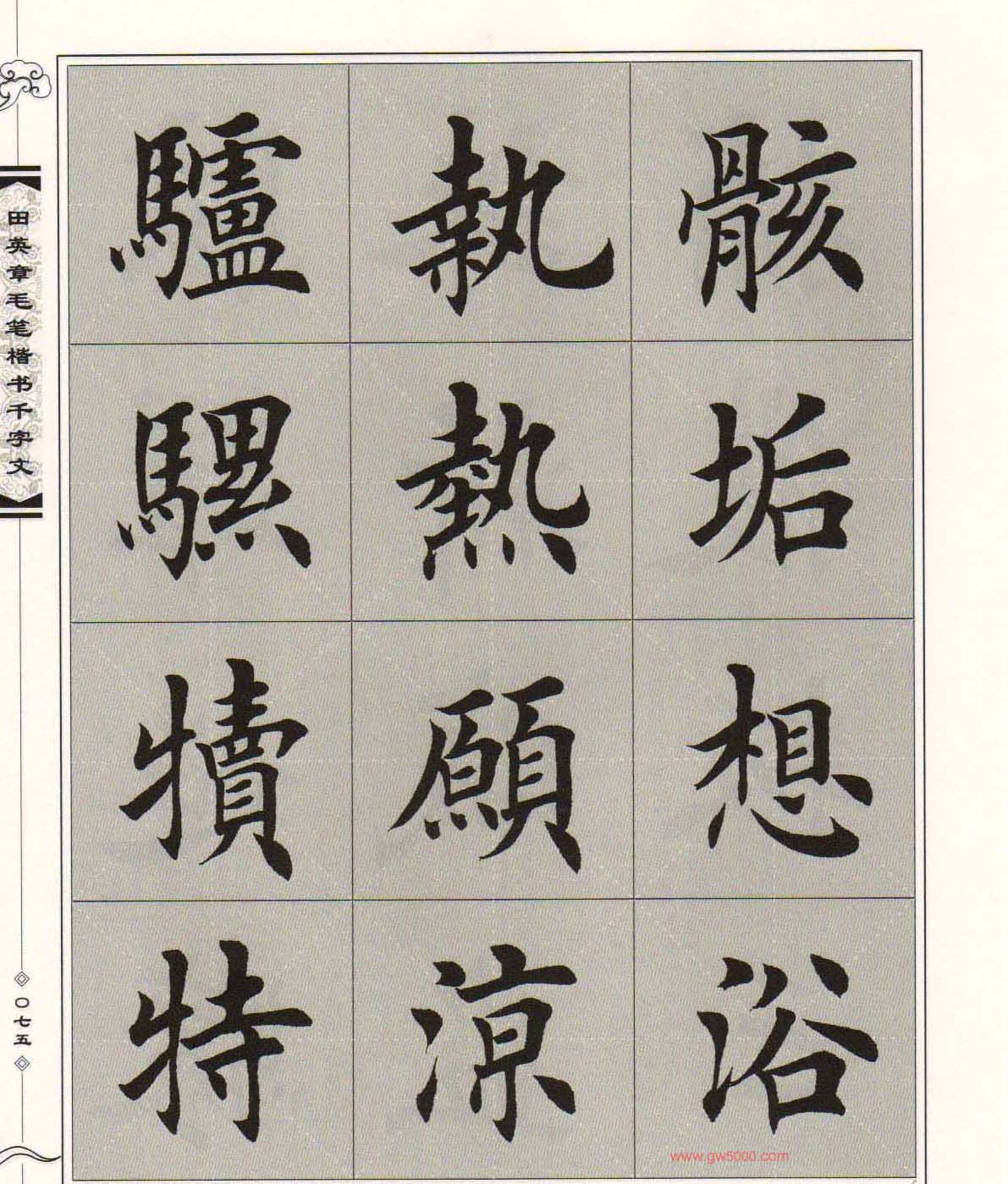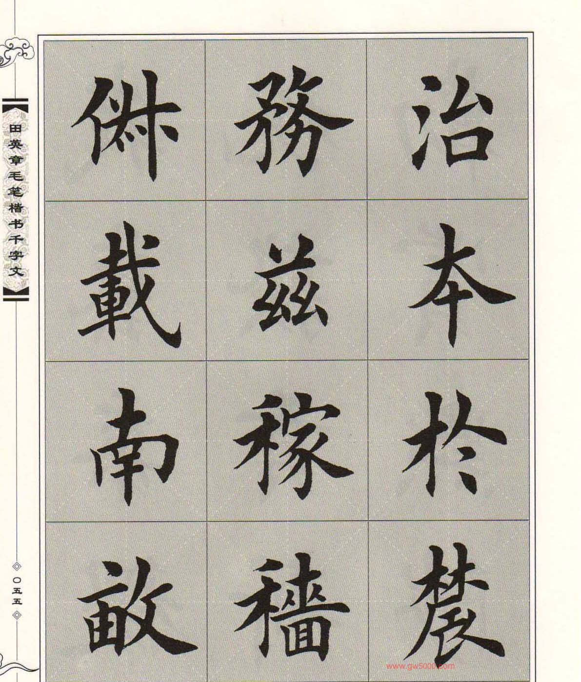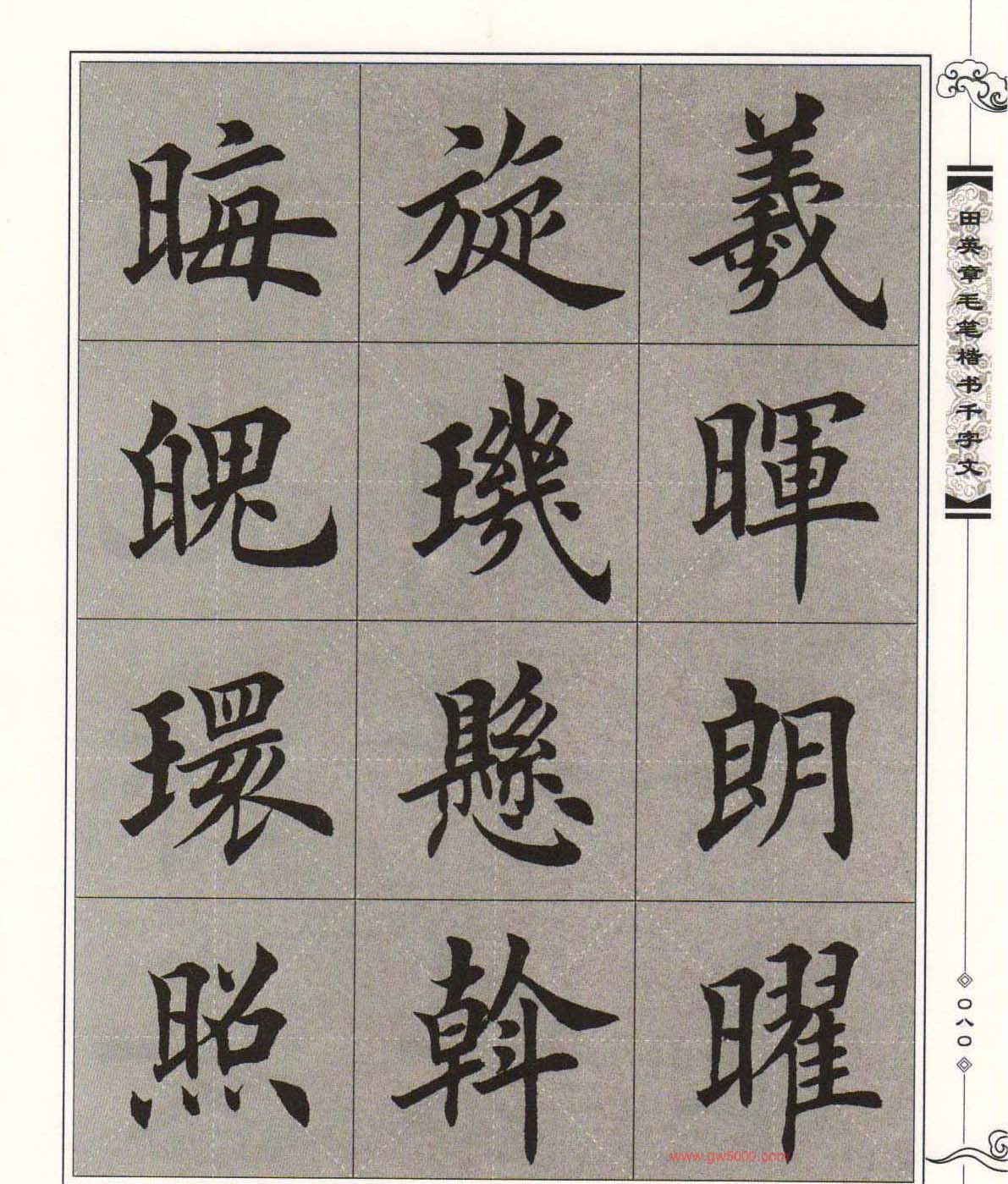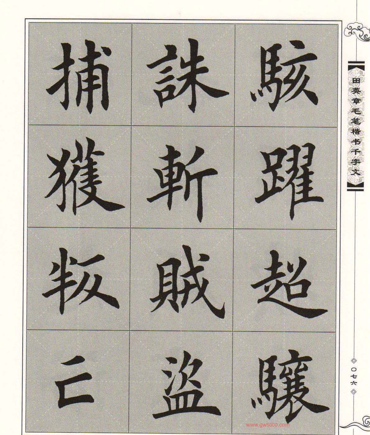 字帖下载《田英章毛笔楷书千字文》人民美术出版社;高清晰放大书法字帖图片85张。