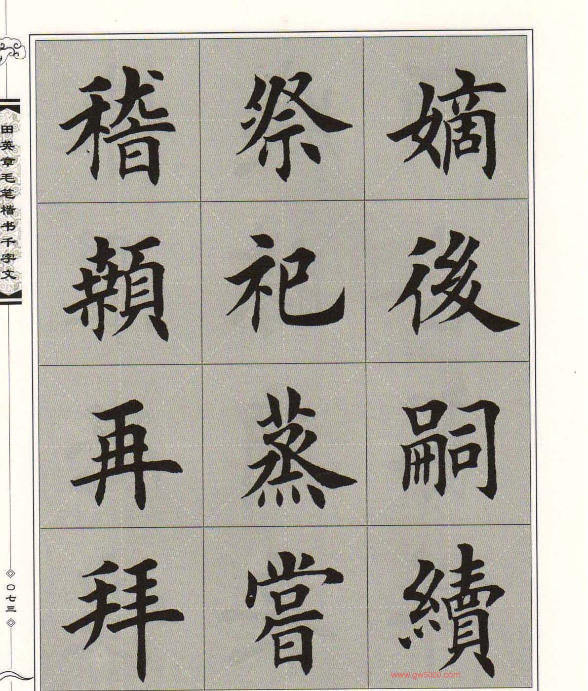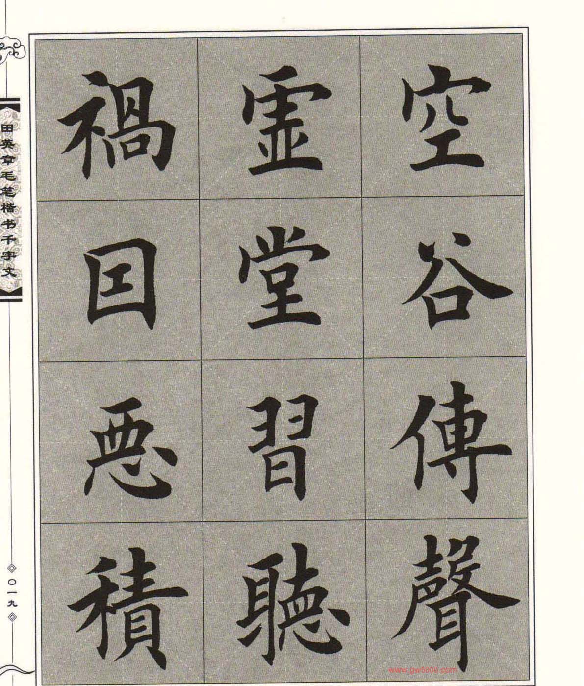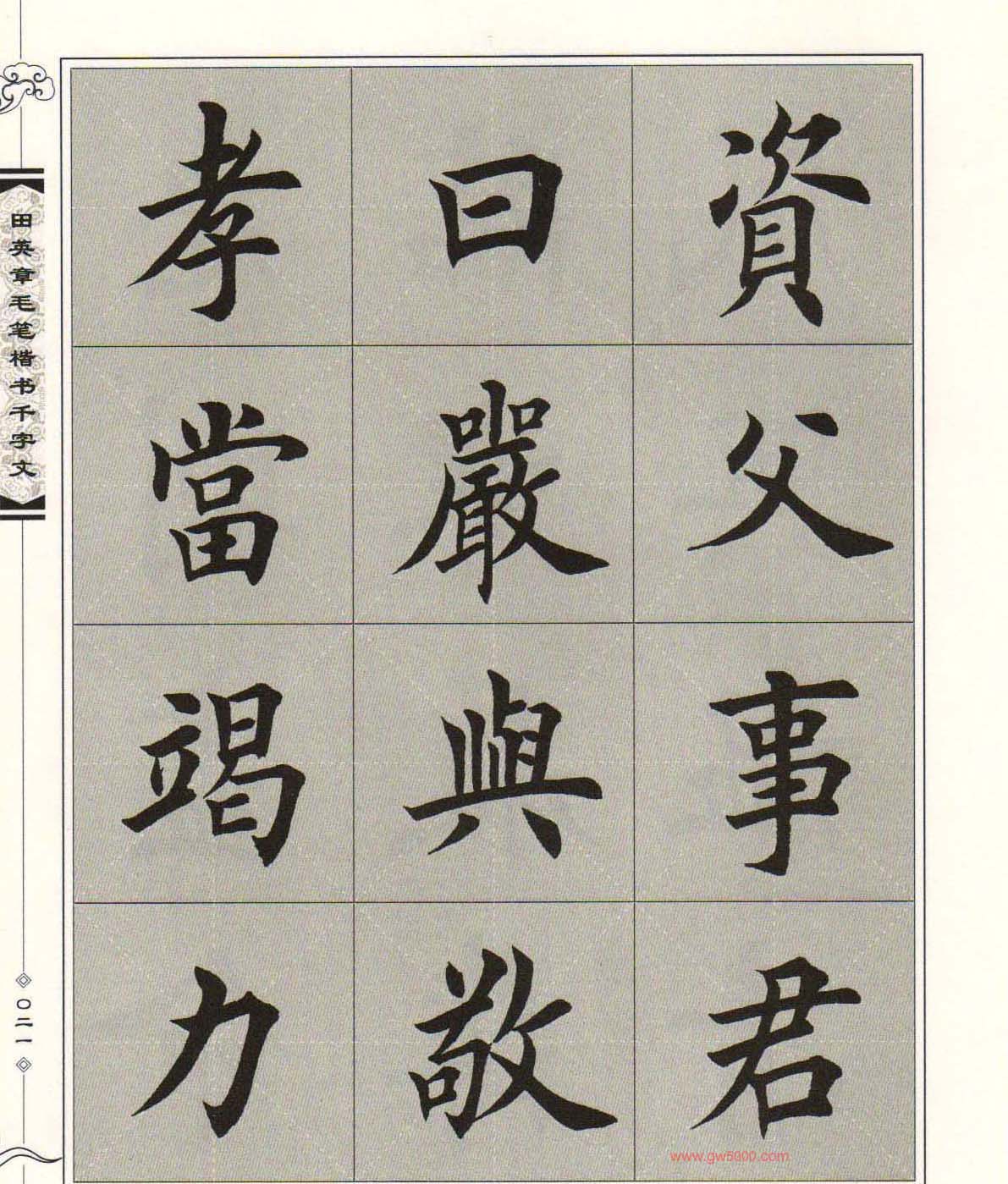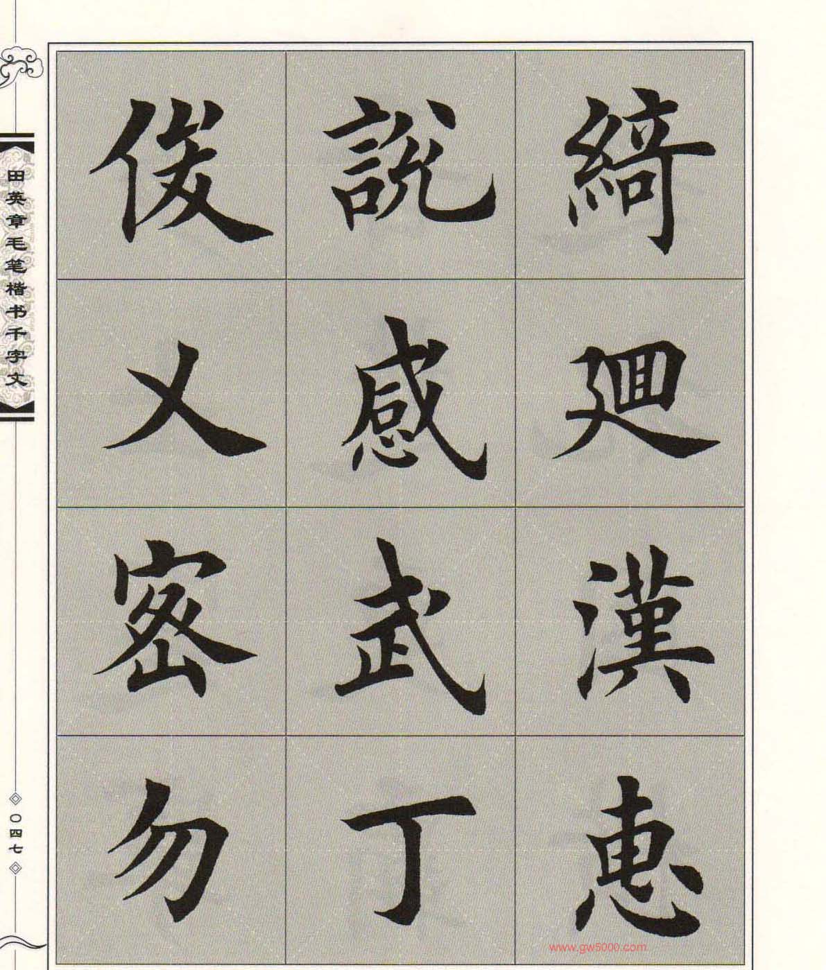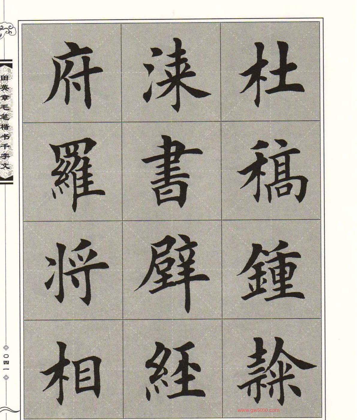 字帖下载《田英章毛笔楷书千字文》人民美术出版社;高清晰放大书法字帖图片85张。