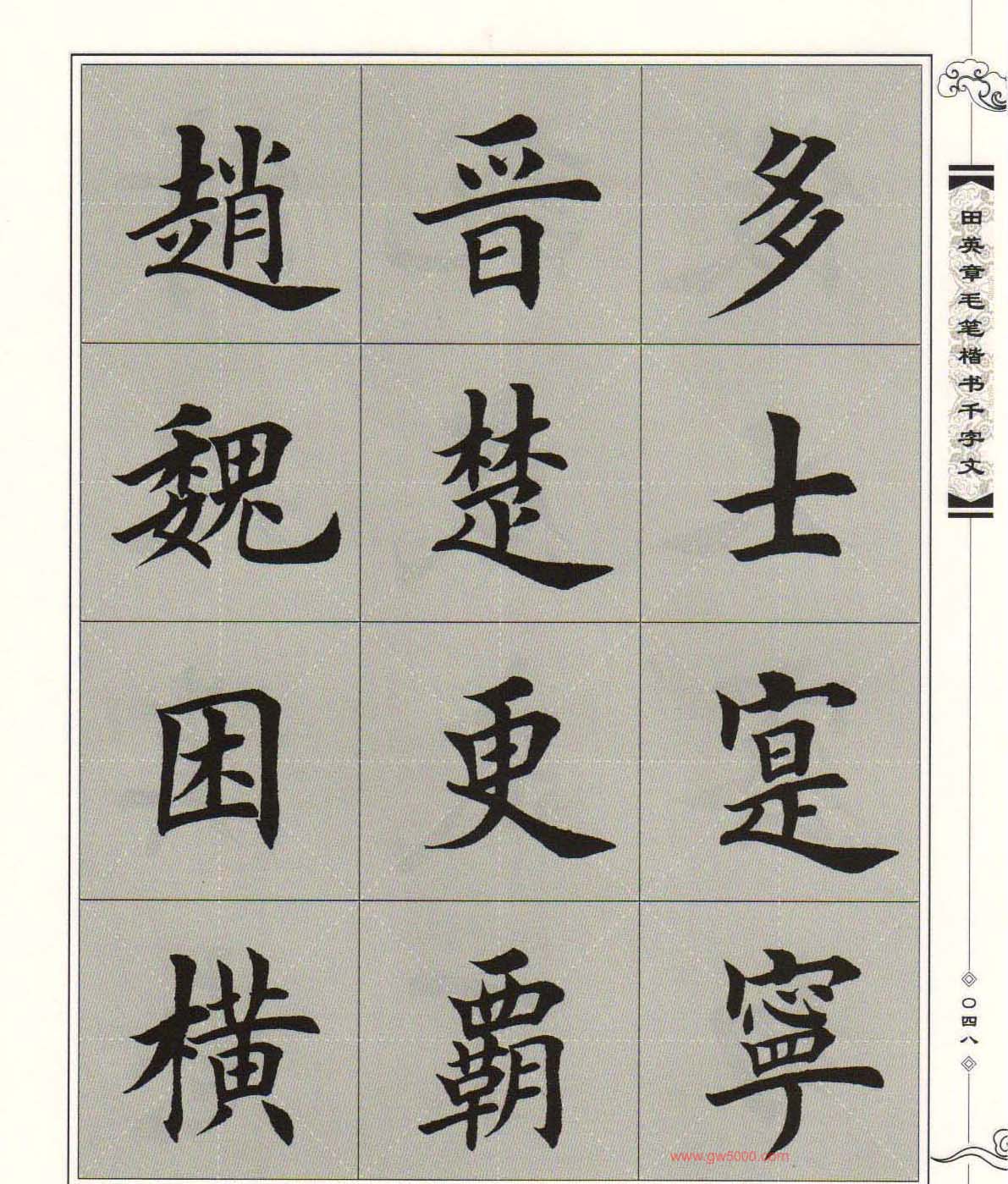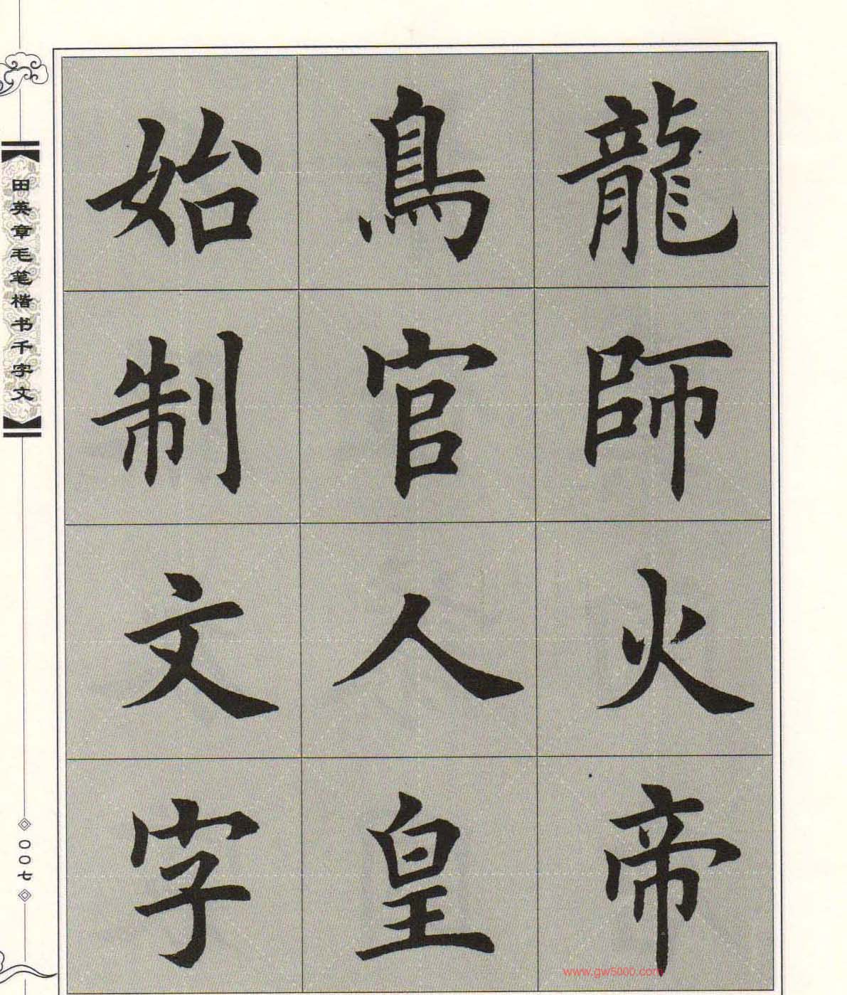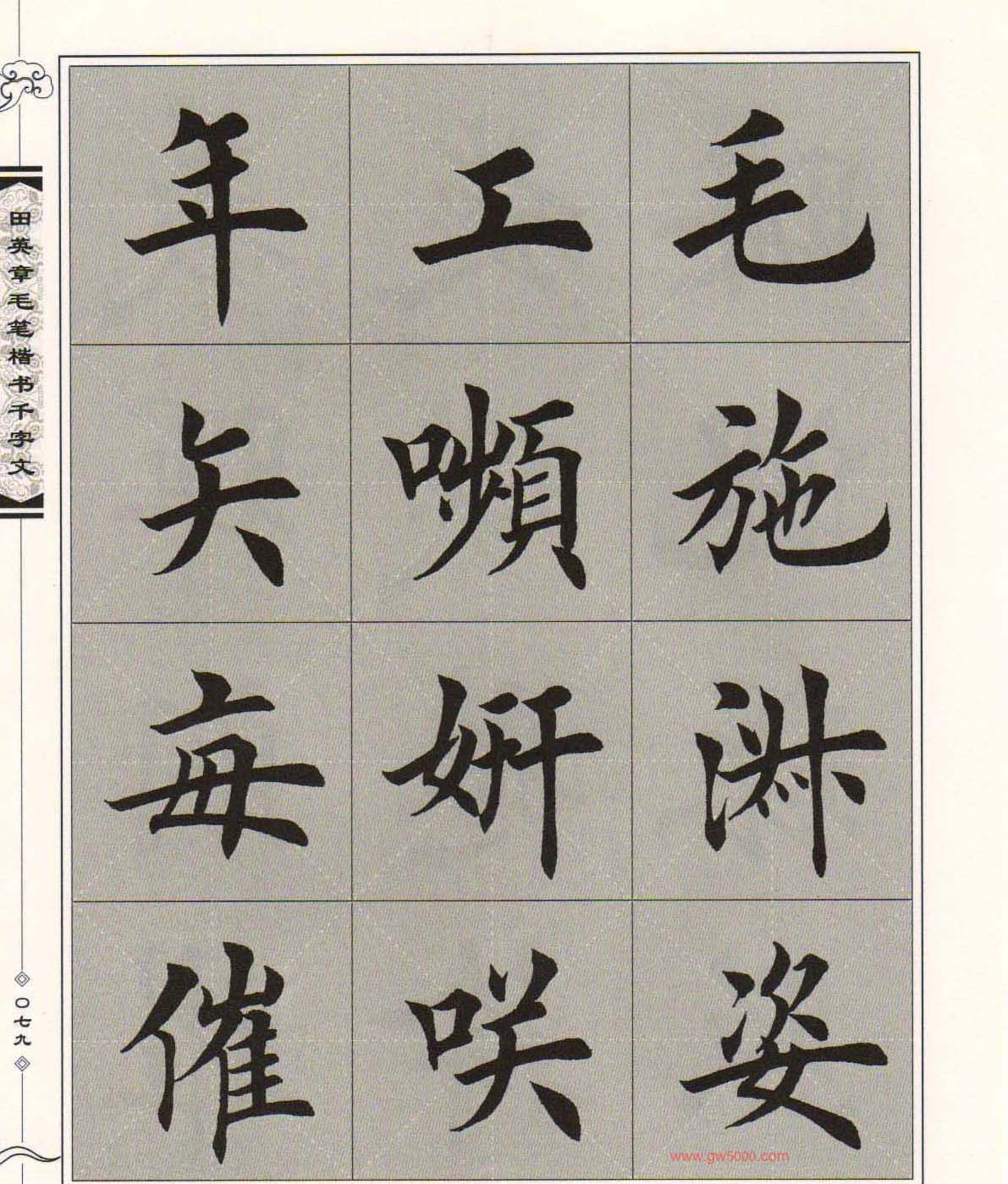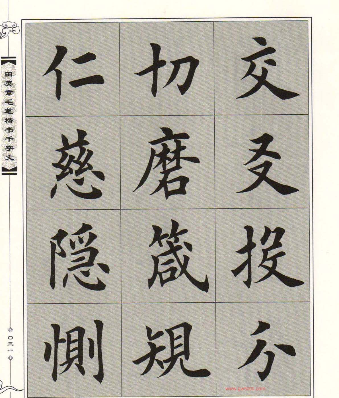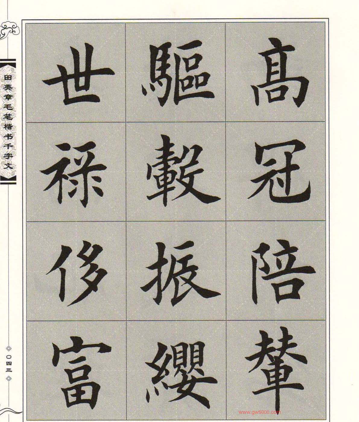 字帖下载《田英章毛笔楷书千字文》人民美术出版社;高清晰放大书法字帖图片85张。