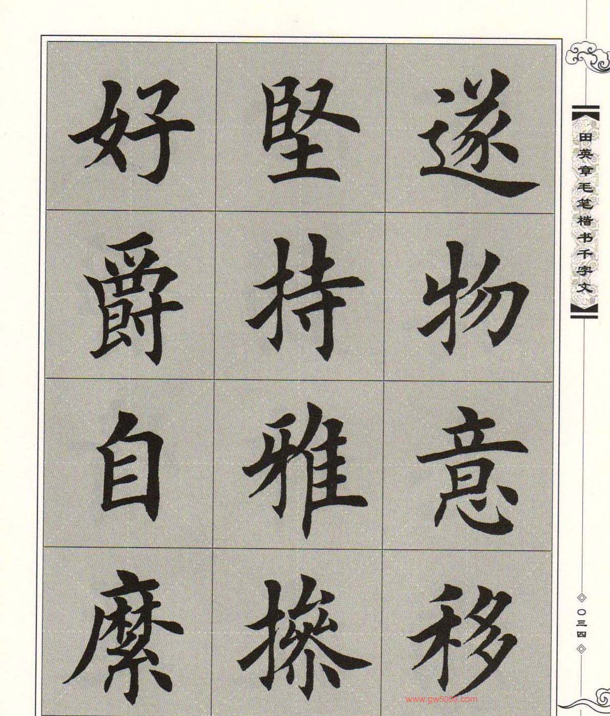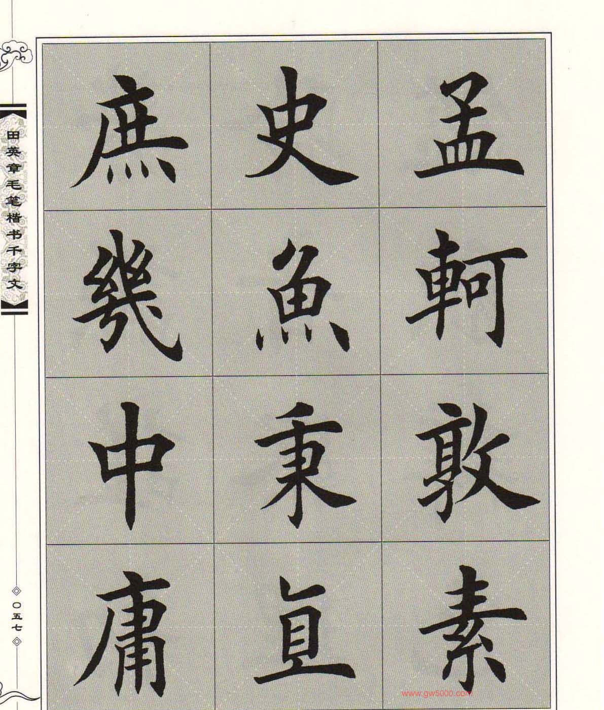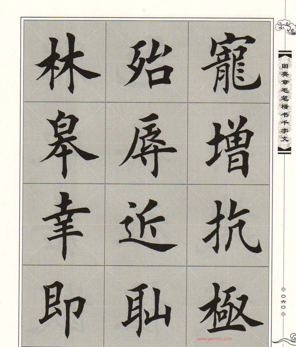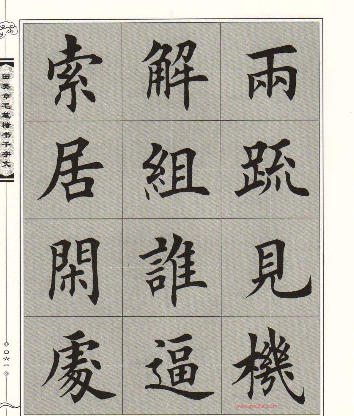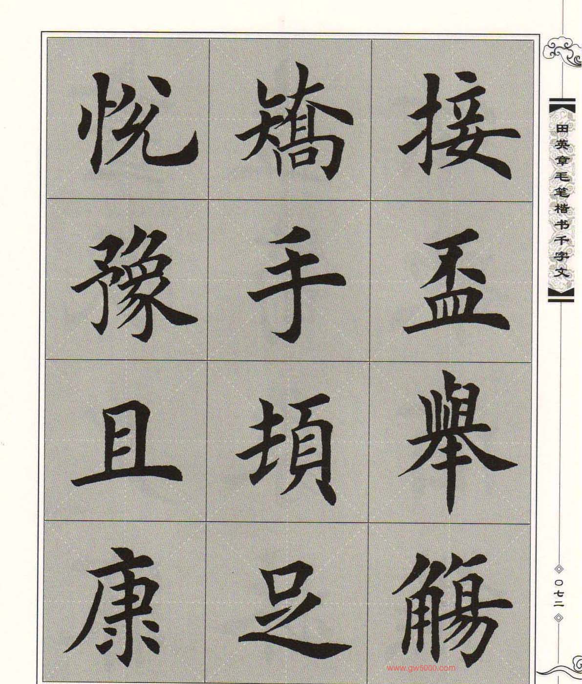 字帖下载《田英章毛笔楷书千字文》人民美术出版社;高清晰放大书法字帖图片85张。