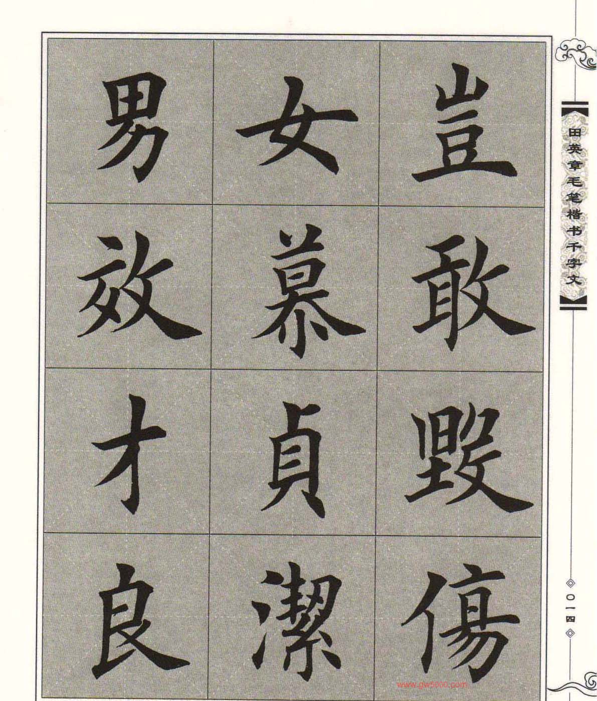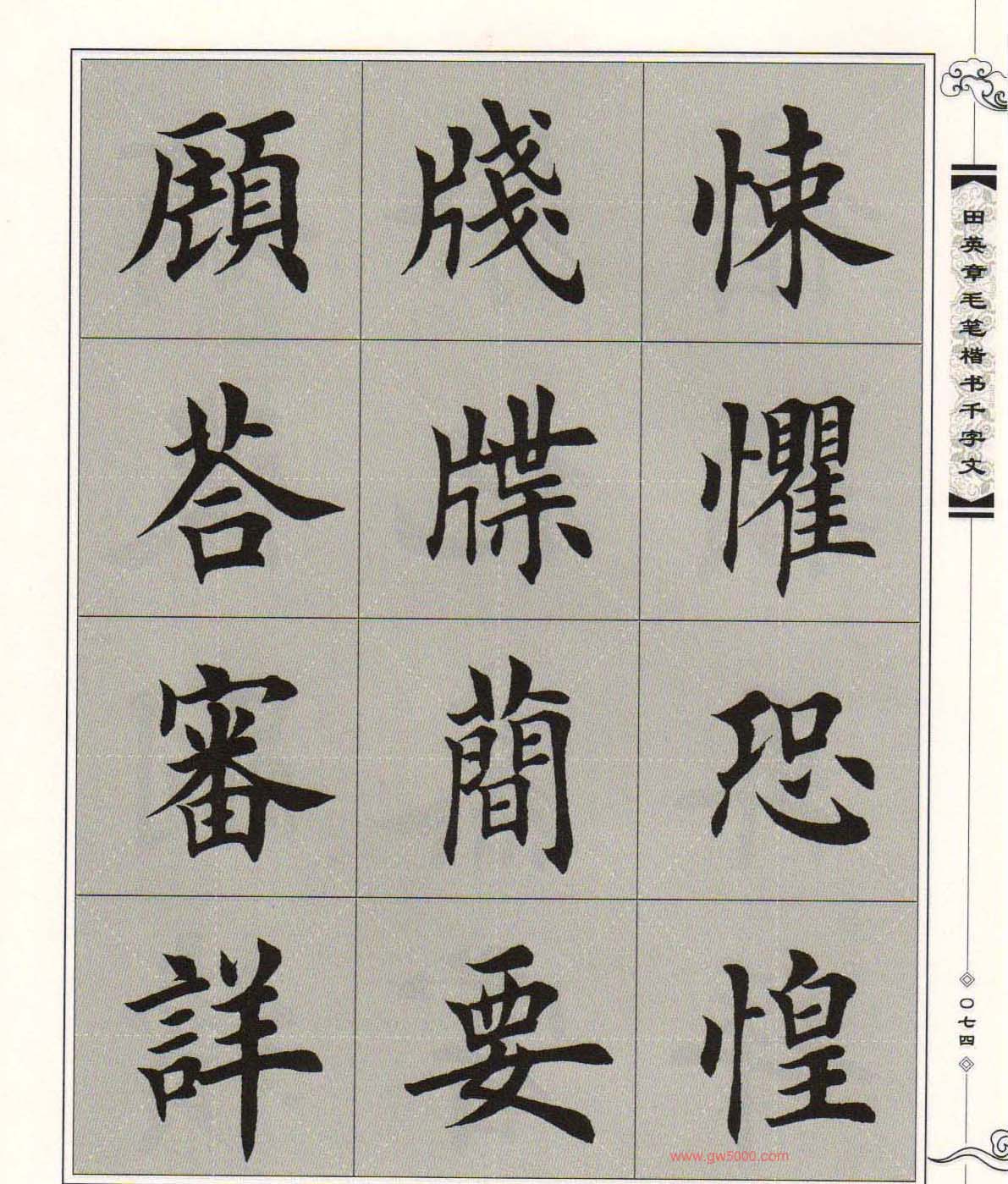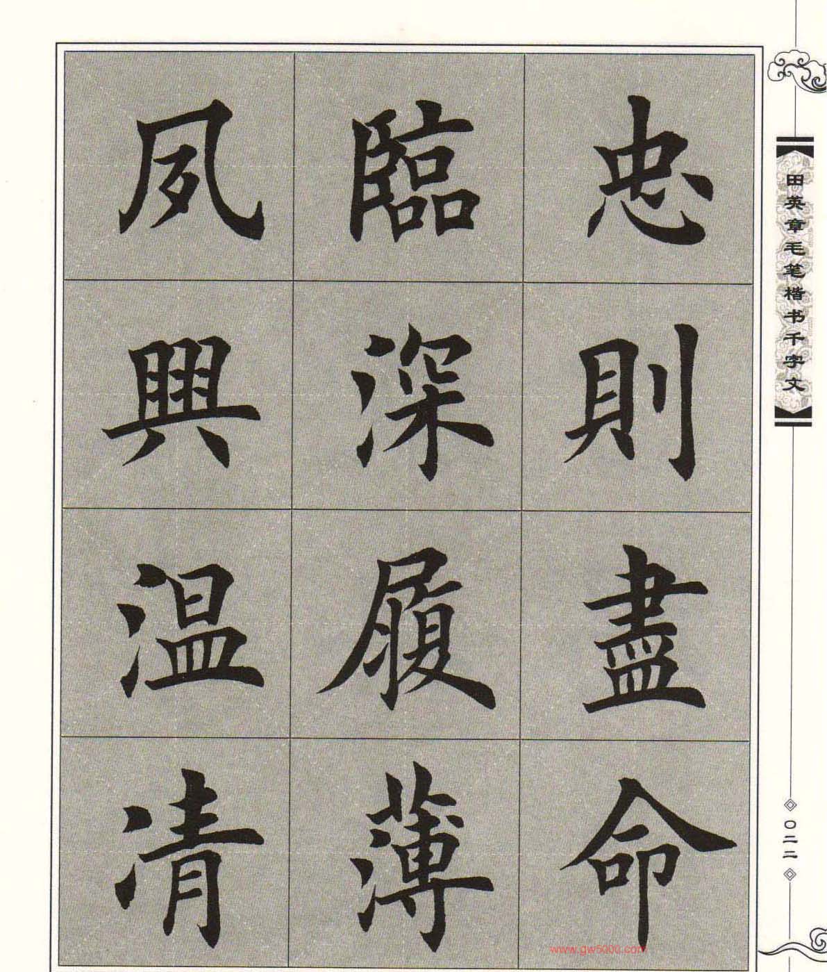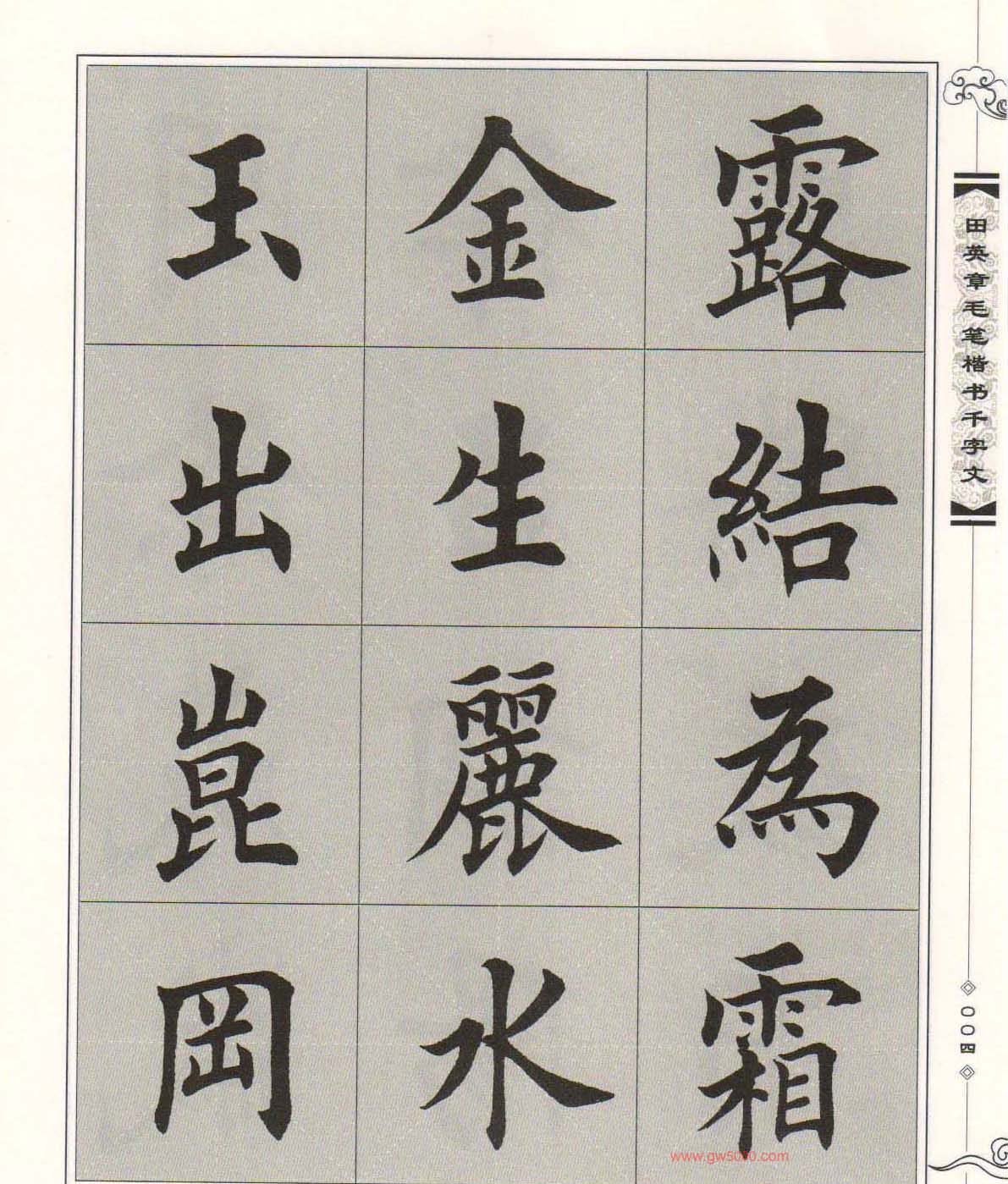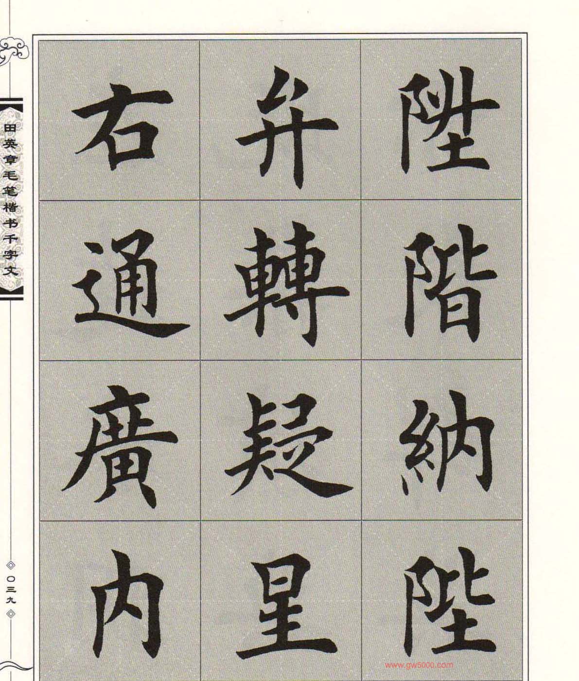 字帖下载《田英章毛笔楷书千字文》人民美术出版社;高清晰放大书法字帖图片85张。