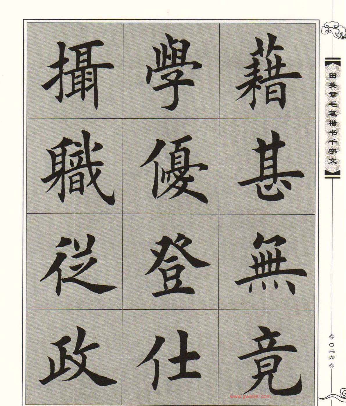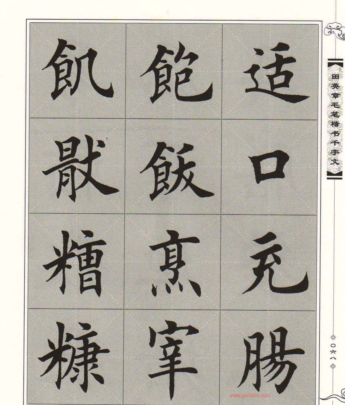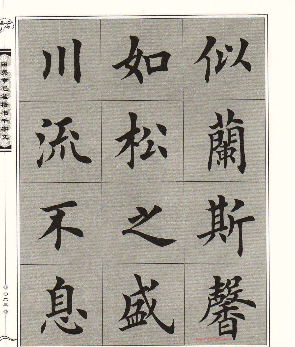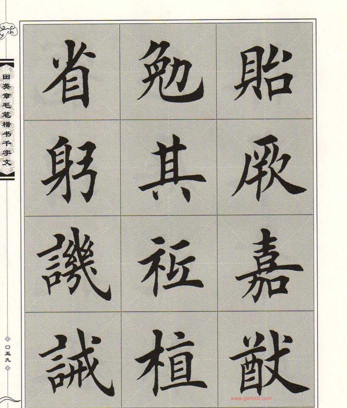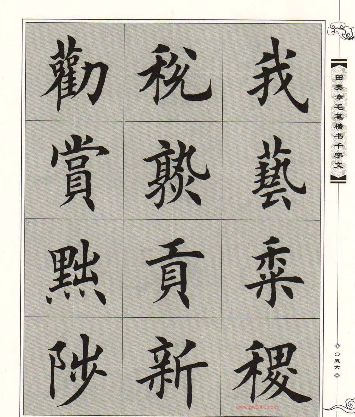 字帖下载《田英章毛笔楷书千字文》人民美术出版社;高清晰放大书法字帖图片85张。