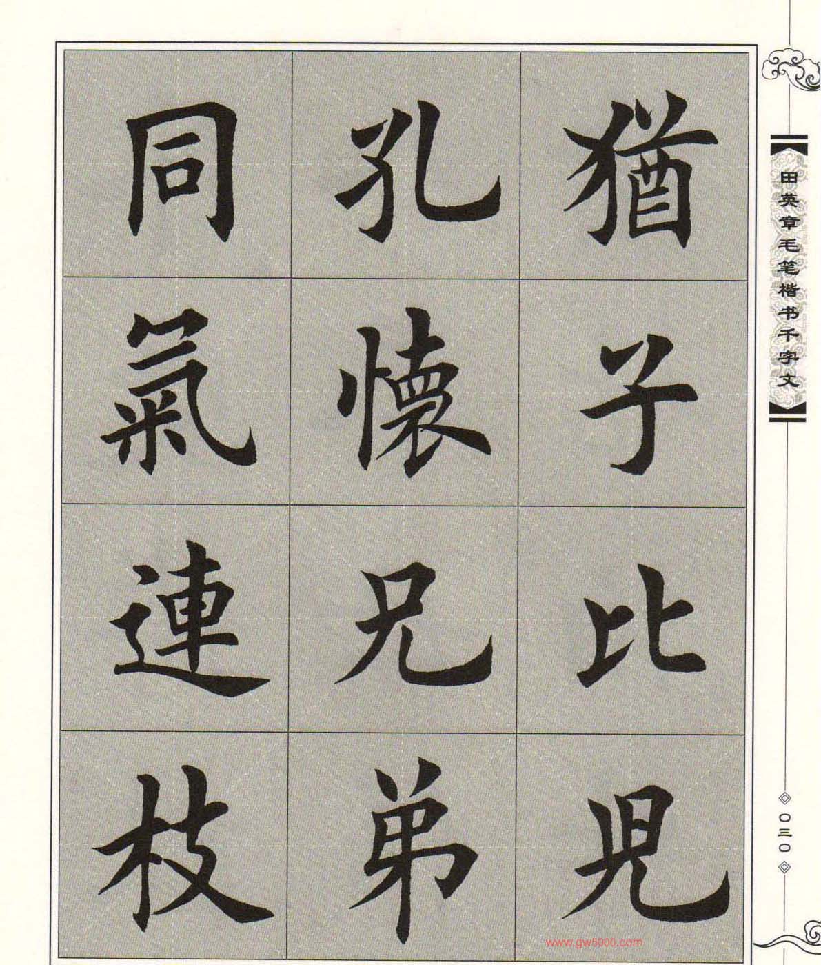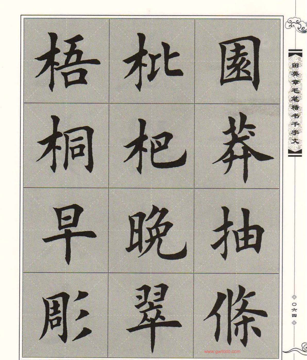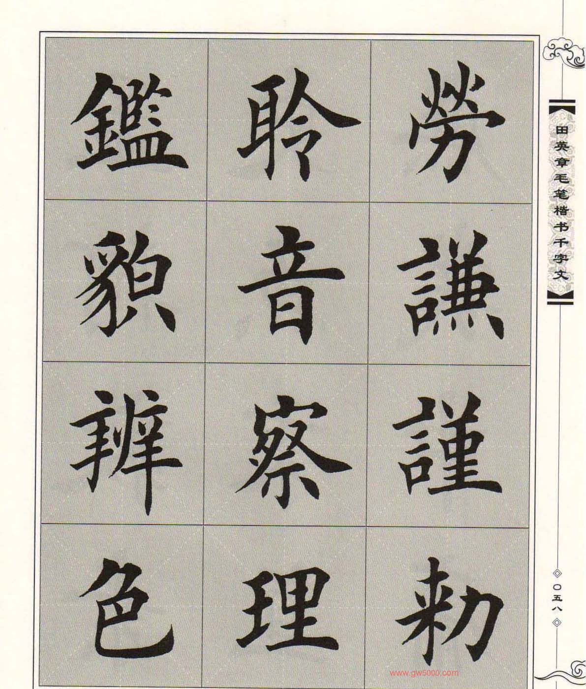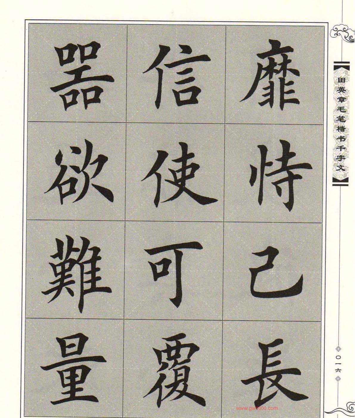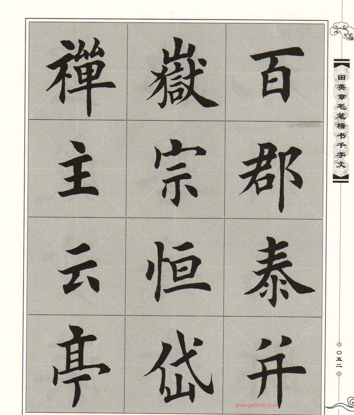 字帖下载《田英章毛笔楷书千字文》人民美术出版社;高清晰放大书法字帖图片85张。