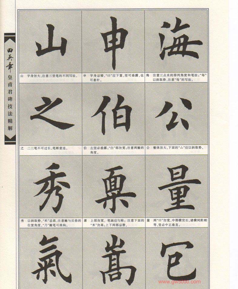 欧楷字帖欣赏《田英章皇甫君碑技法精解》,上海交通大学出版社,欧体楷书字帖图片132张。
