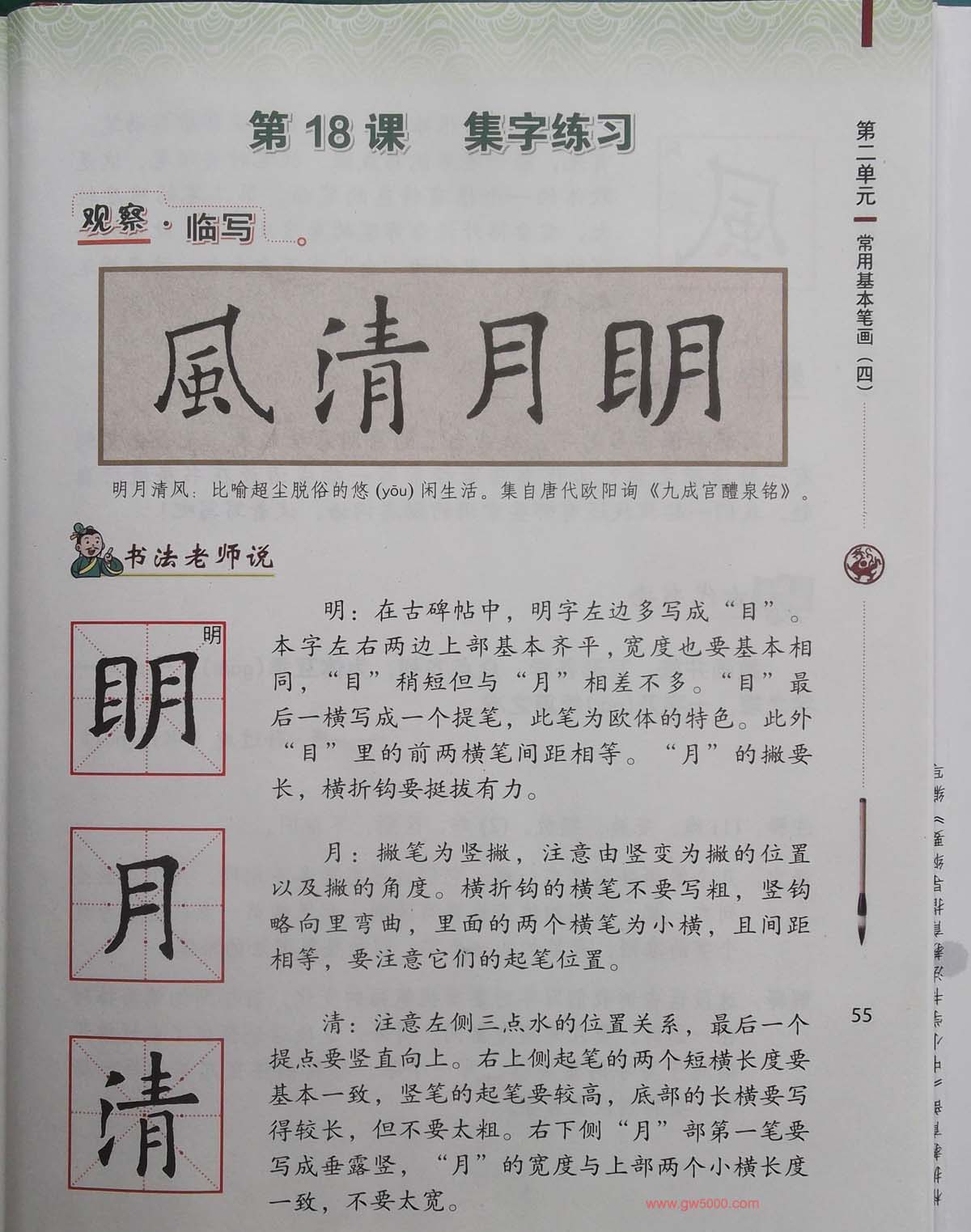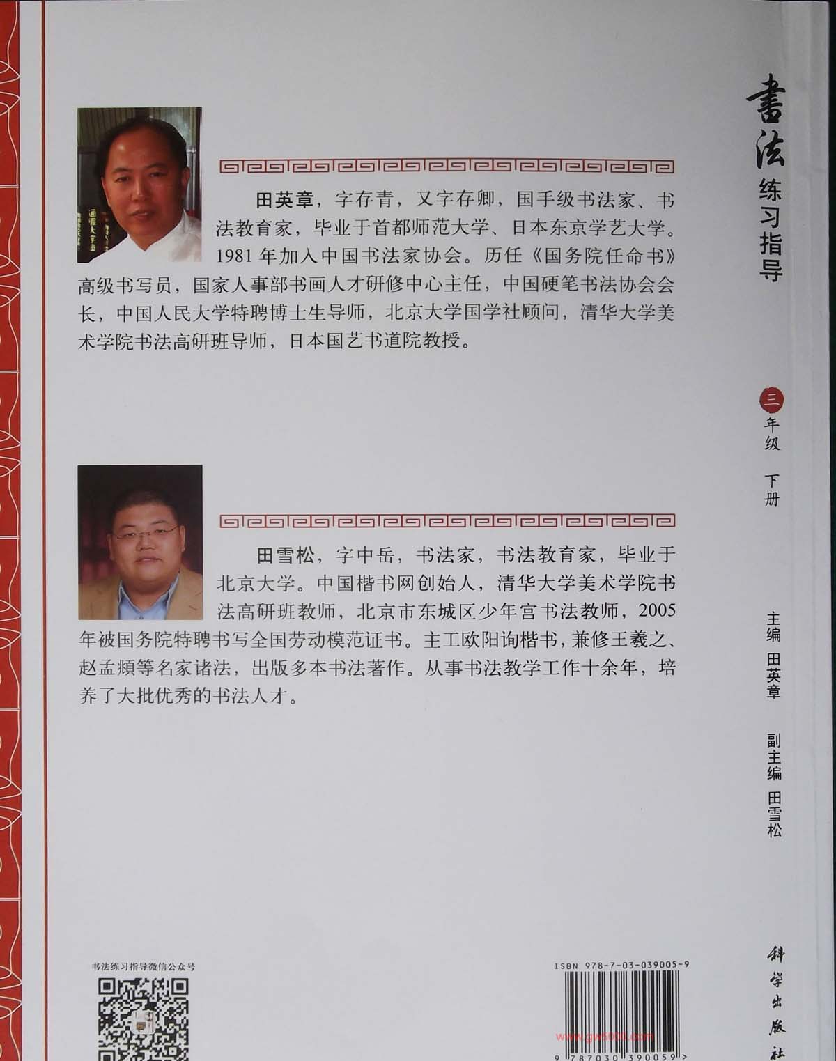 国内第一套视觉系书法教材:《书法练习指导三年级下册》,田英章主编,范字书写:田雪松,科学出版社,中小学书法教育彩图60张。