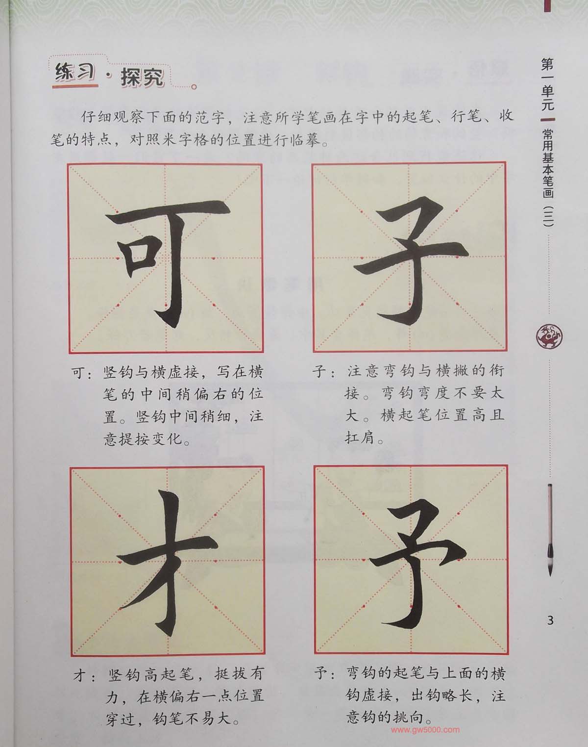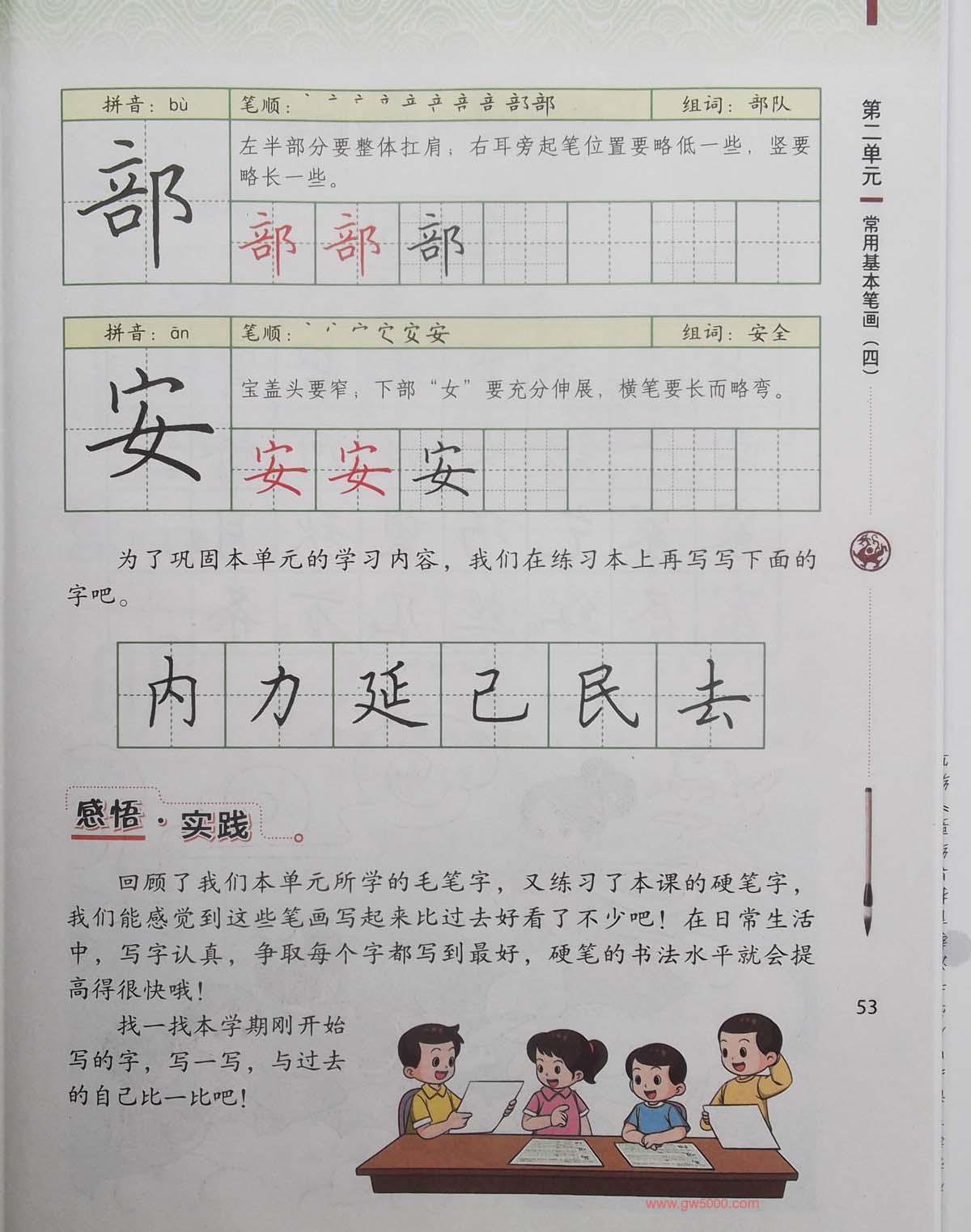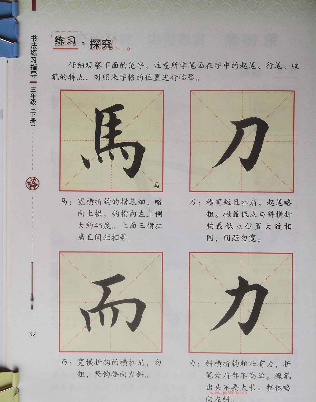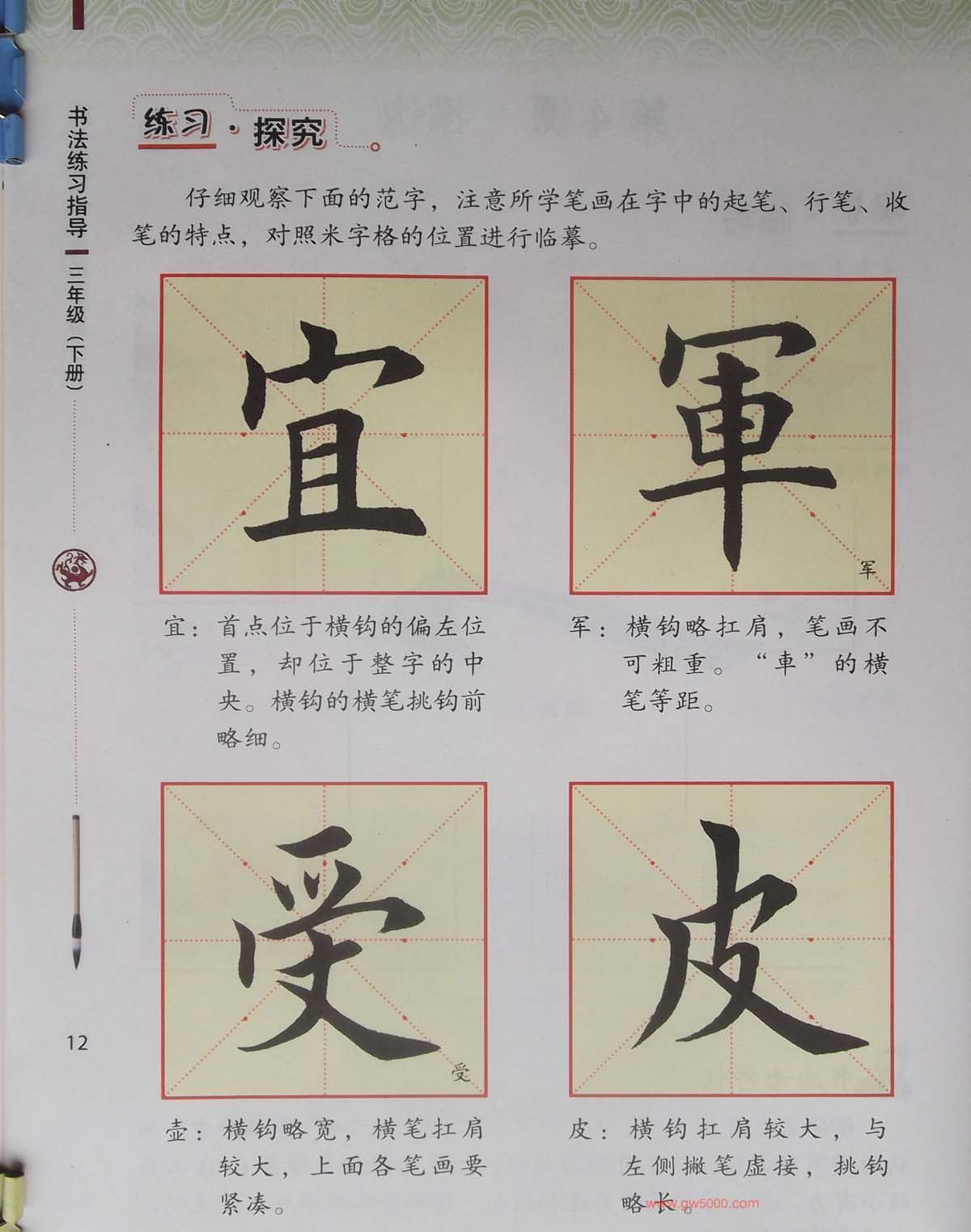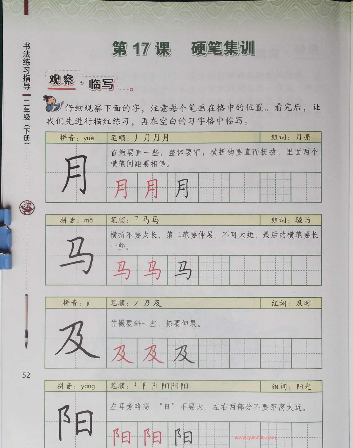 毛笔硬笔书法教材《书法练习指导三年级下册》