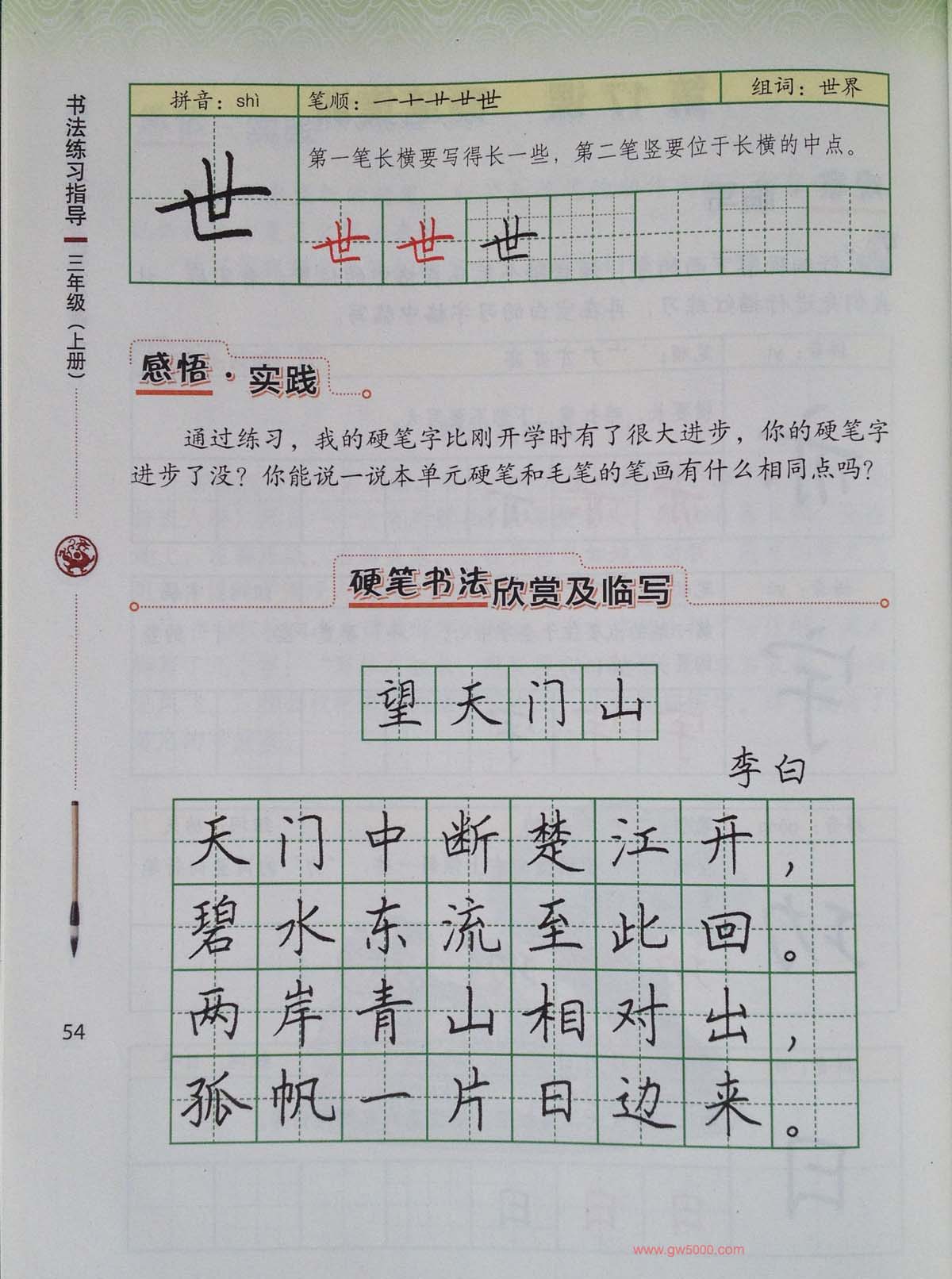 毛笔硬笔书法教材《书法练习指导三年级下册》