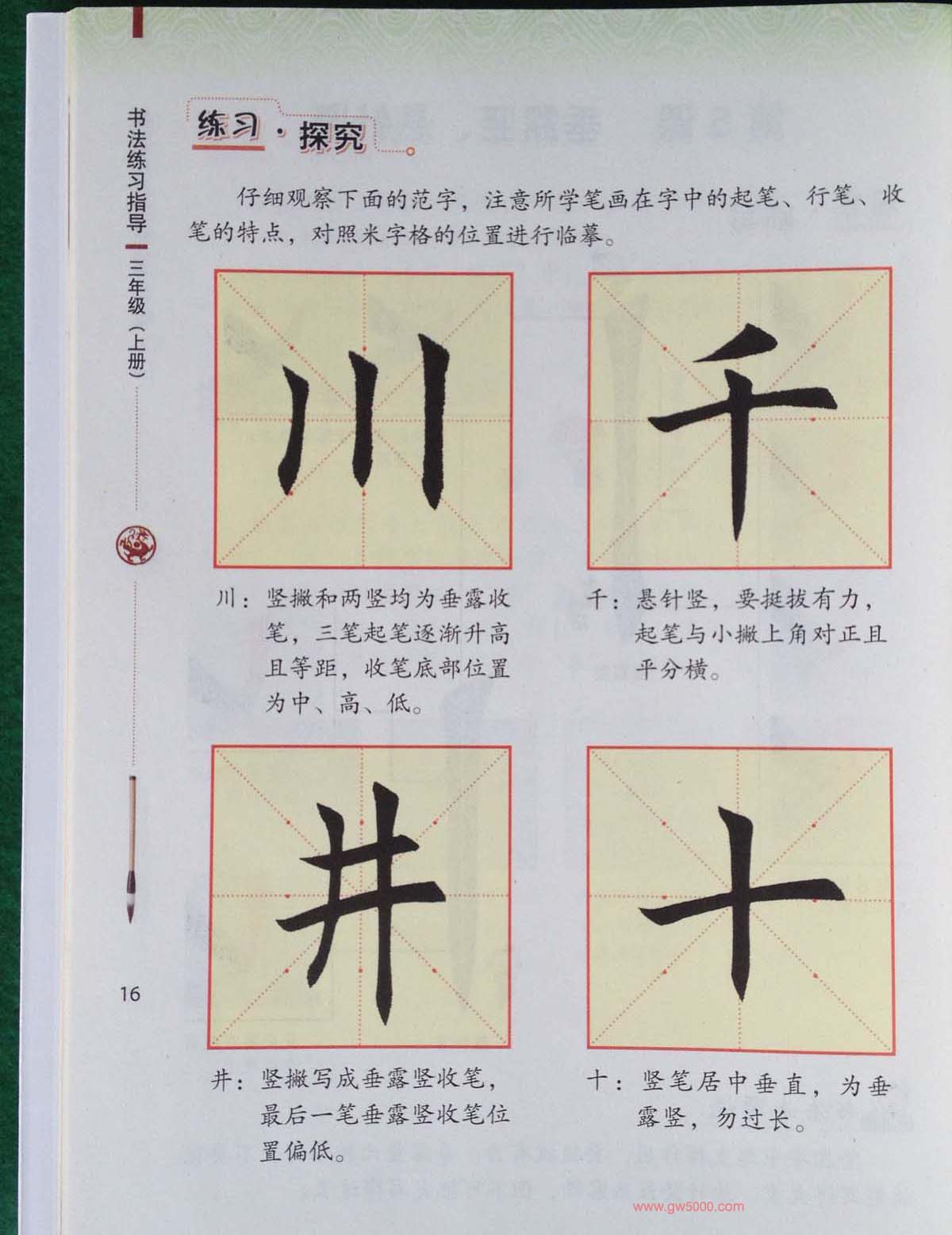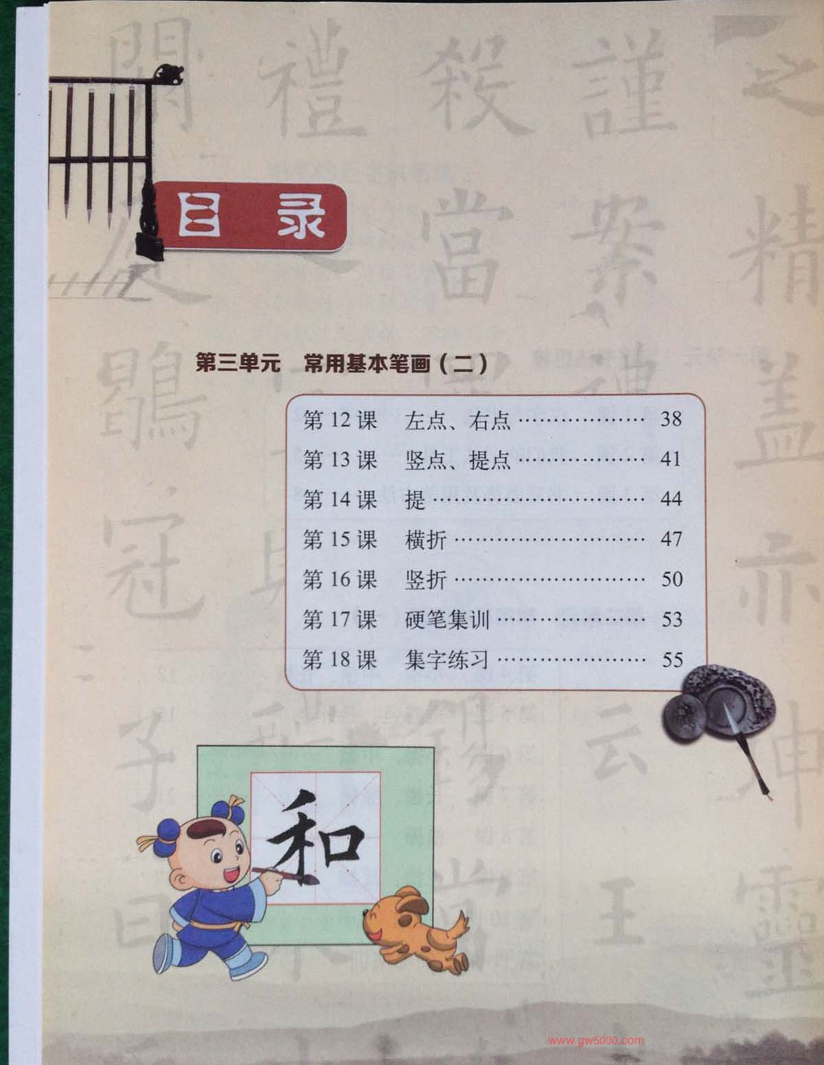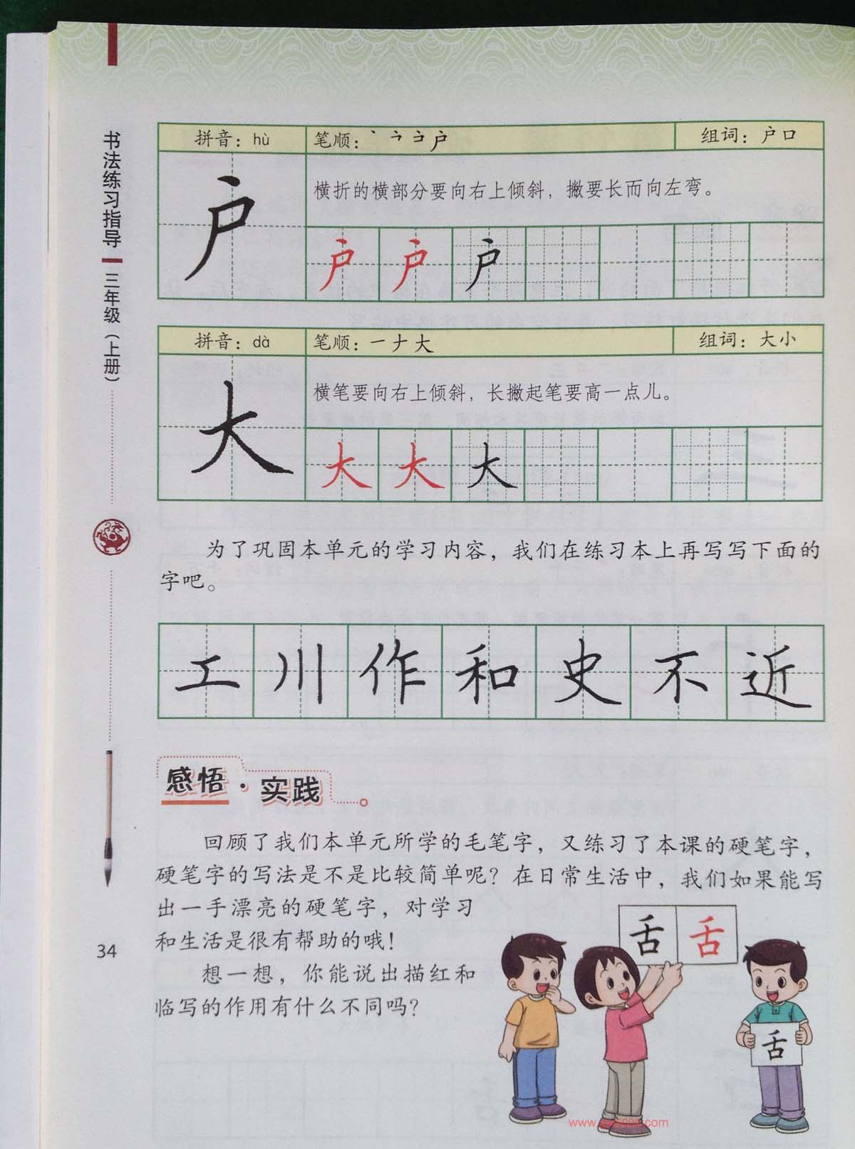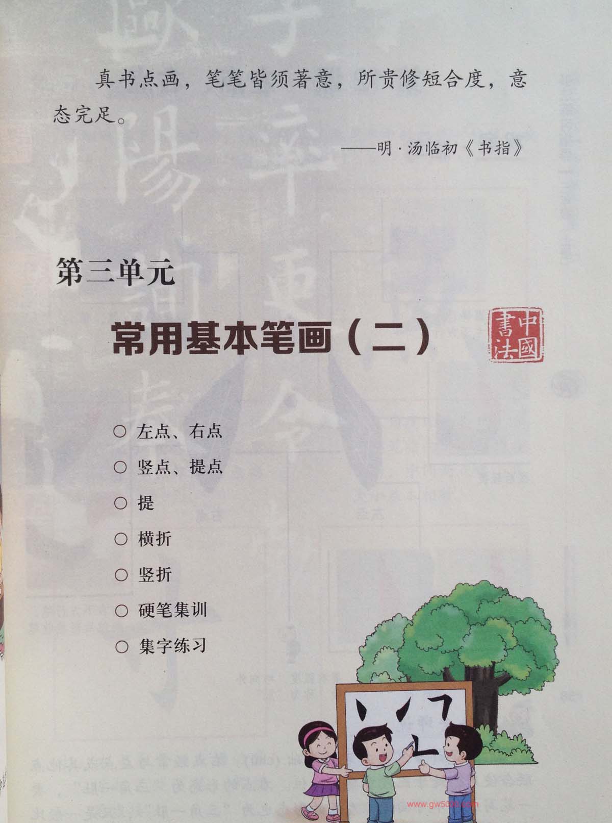 国内第一套视觉系书法教材:《书法练习指导三年级上册》,田英章主编,科学出版社,田雪松毛笔、硬笔书法字帖图片62张。