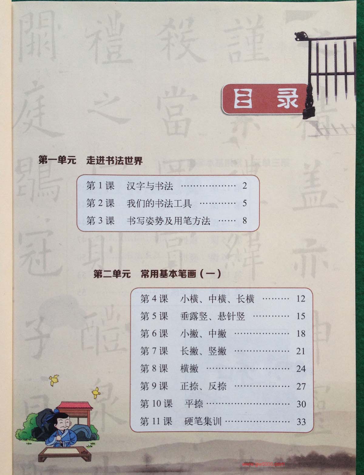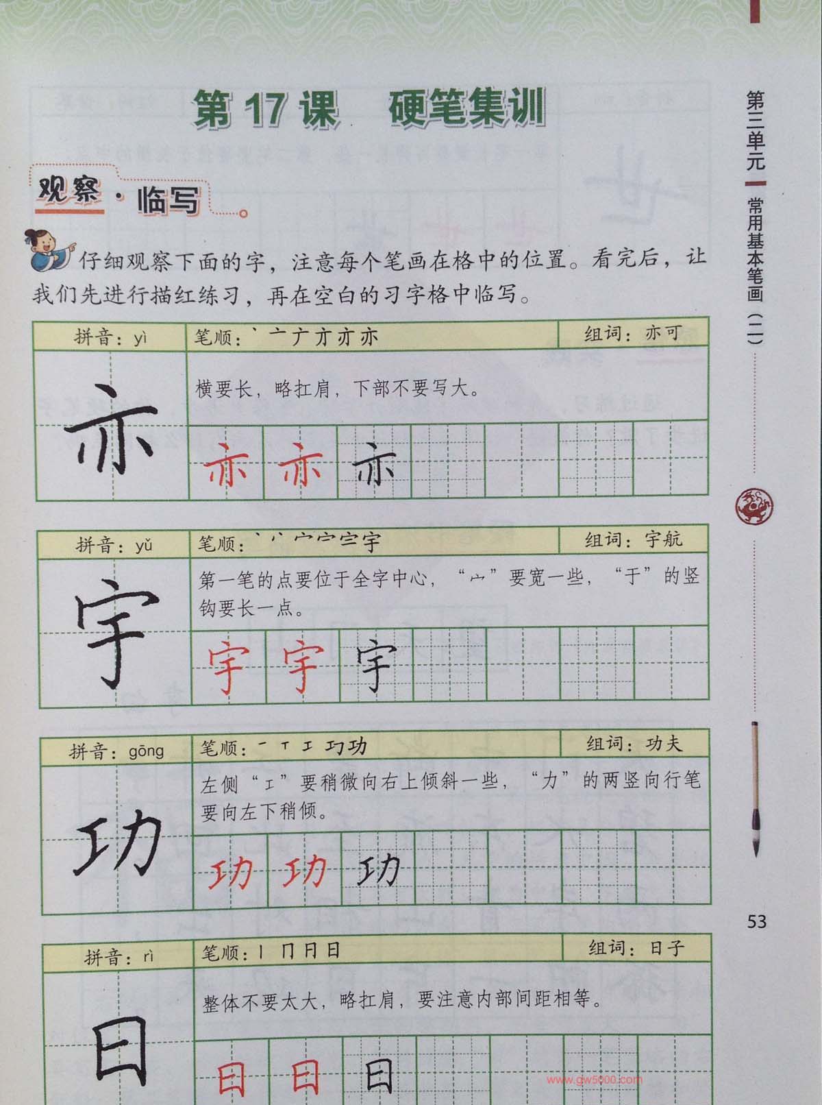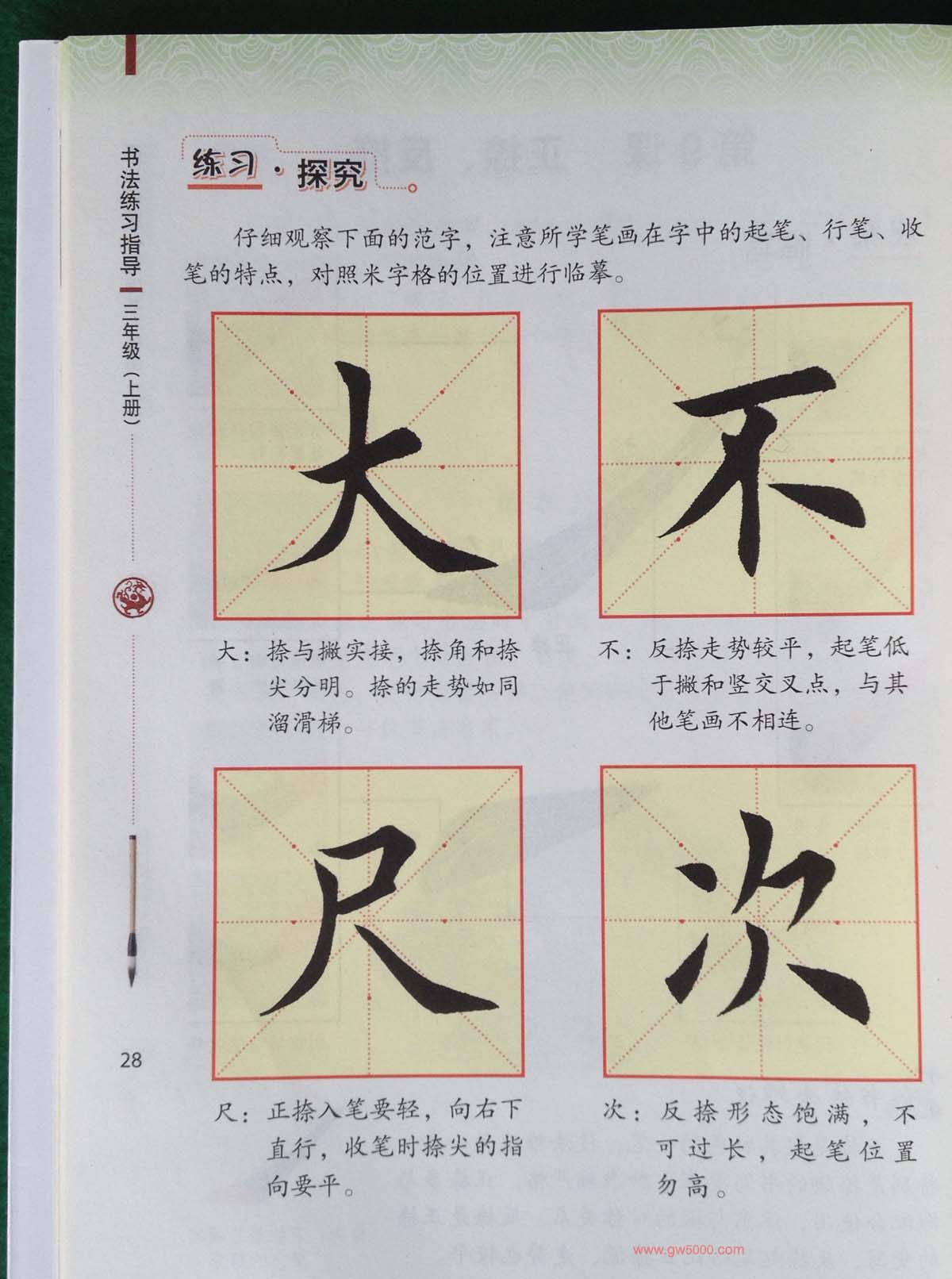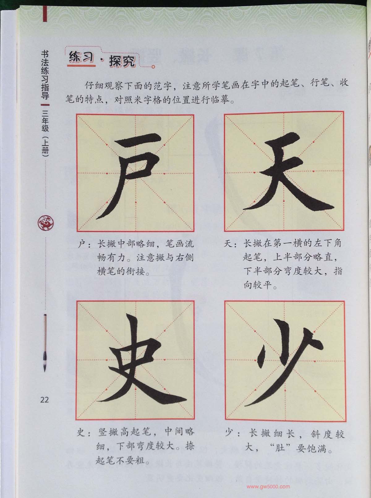 国内第一套视觉系书法教材:《书法练习指导三年级上册》,田英章主编,科学出版社,田雪松毛笔、硬笔书法字帖图片62张。