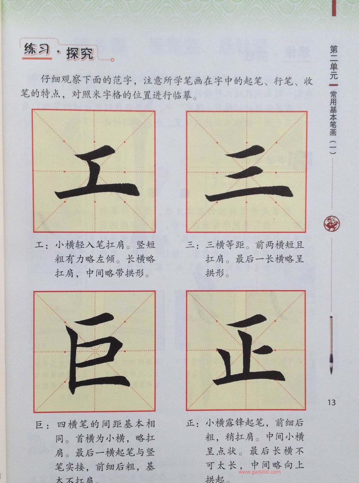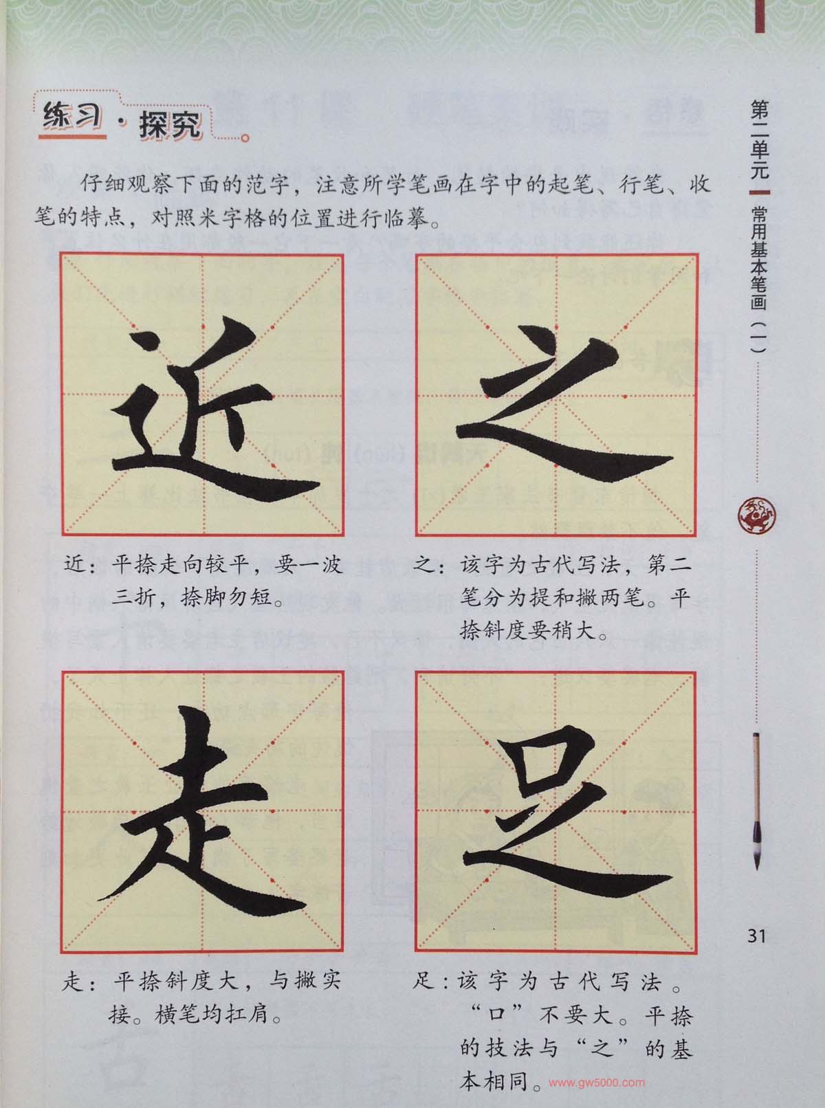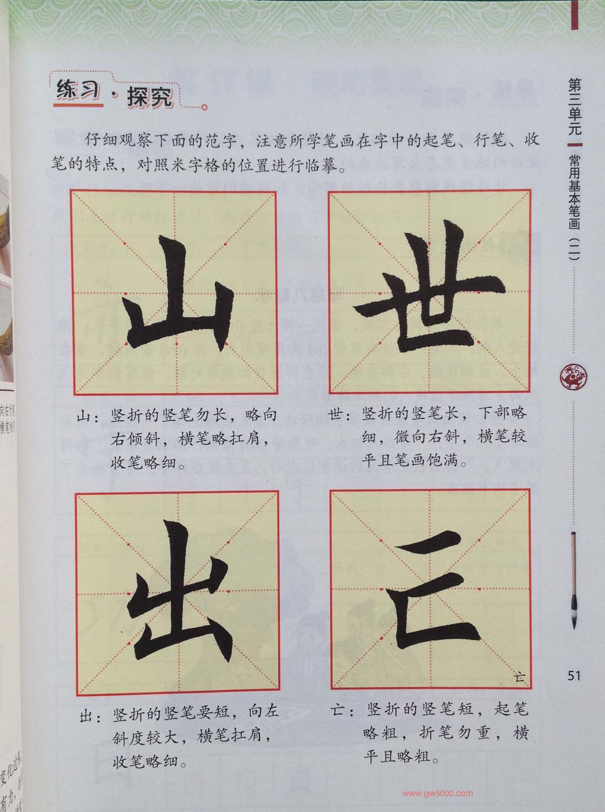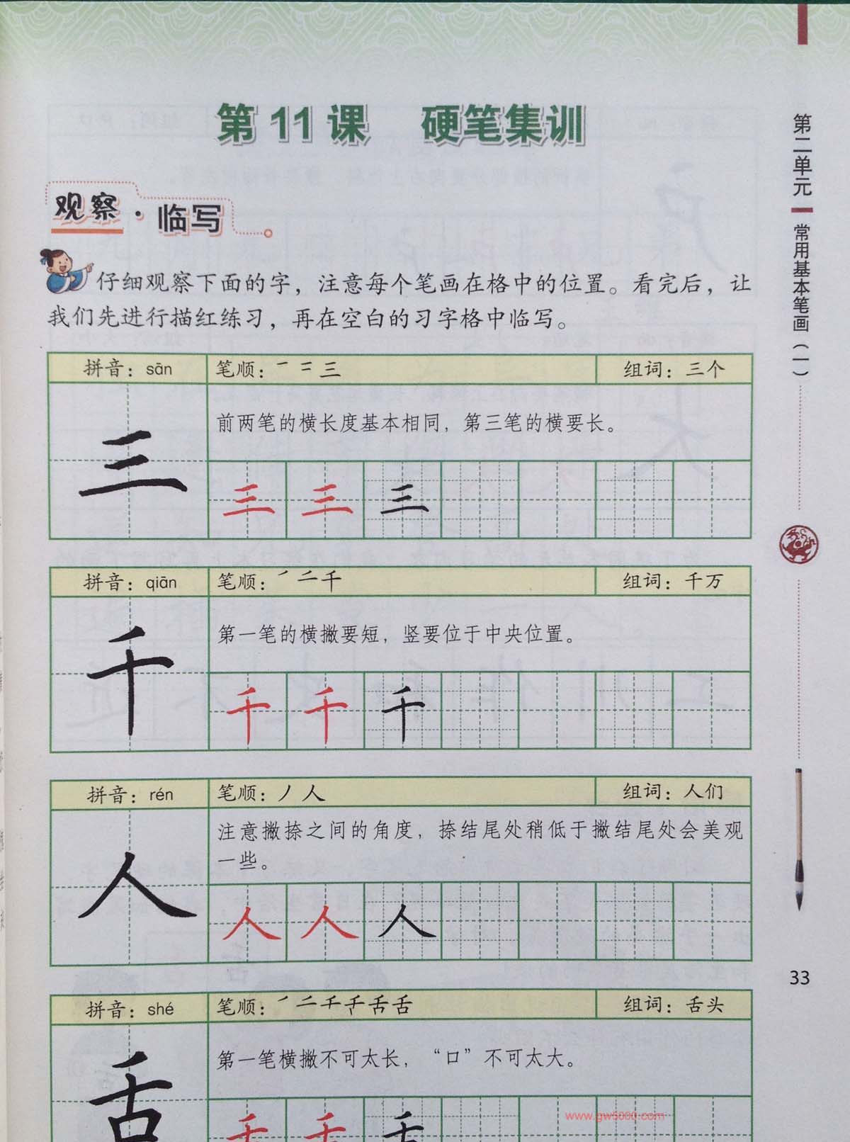 国内第一套视觉系书法教材:《书法练习指导三年级上册》,田英章主编,科学出版社,田雪松毛笔、硬笔书法字帖图片62张。