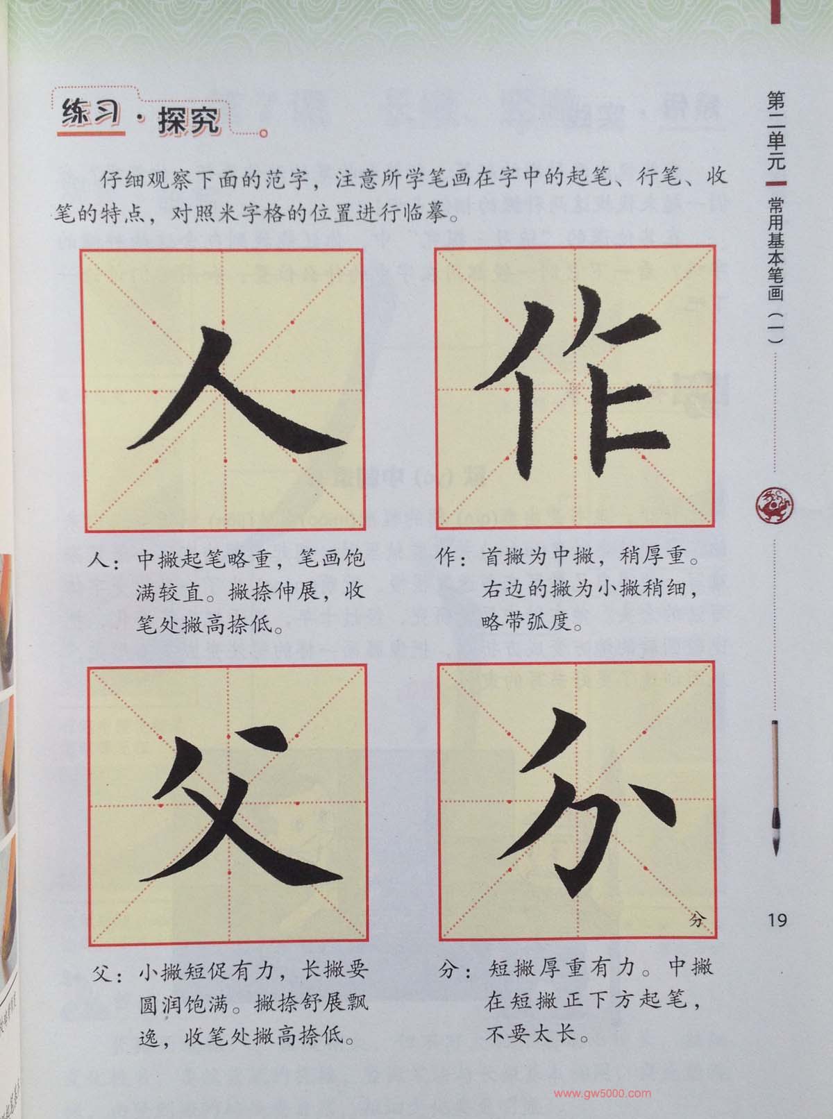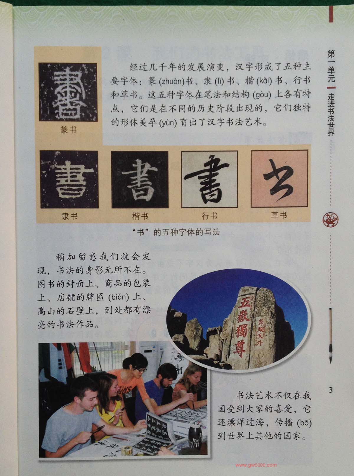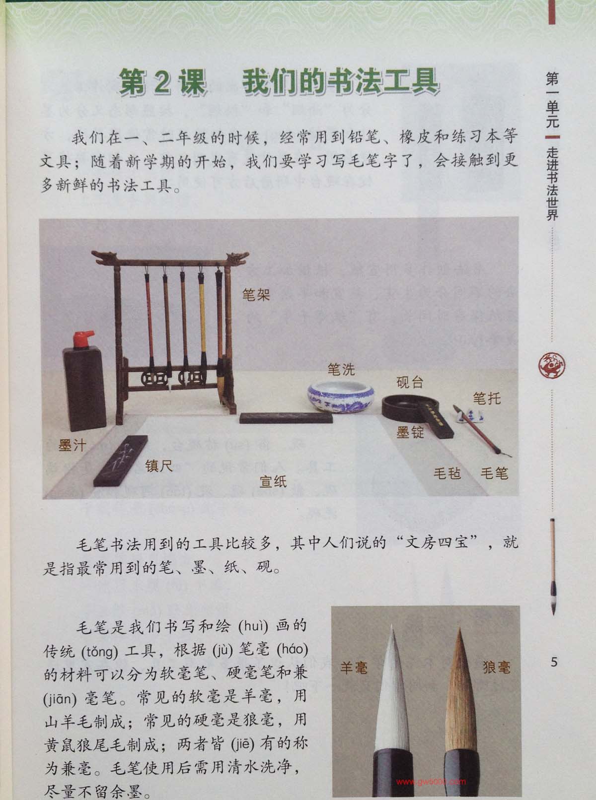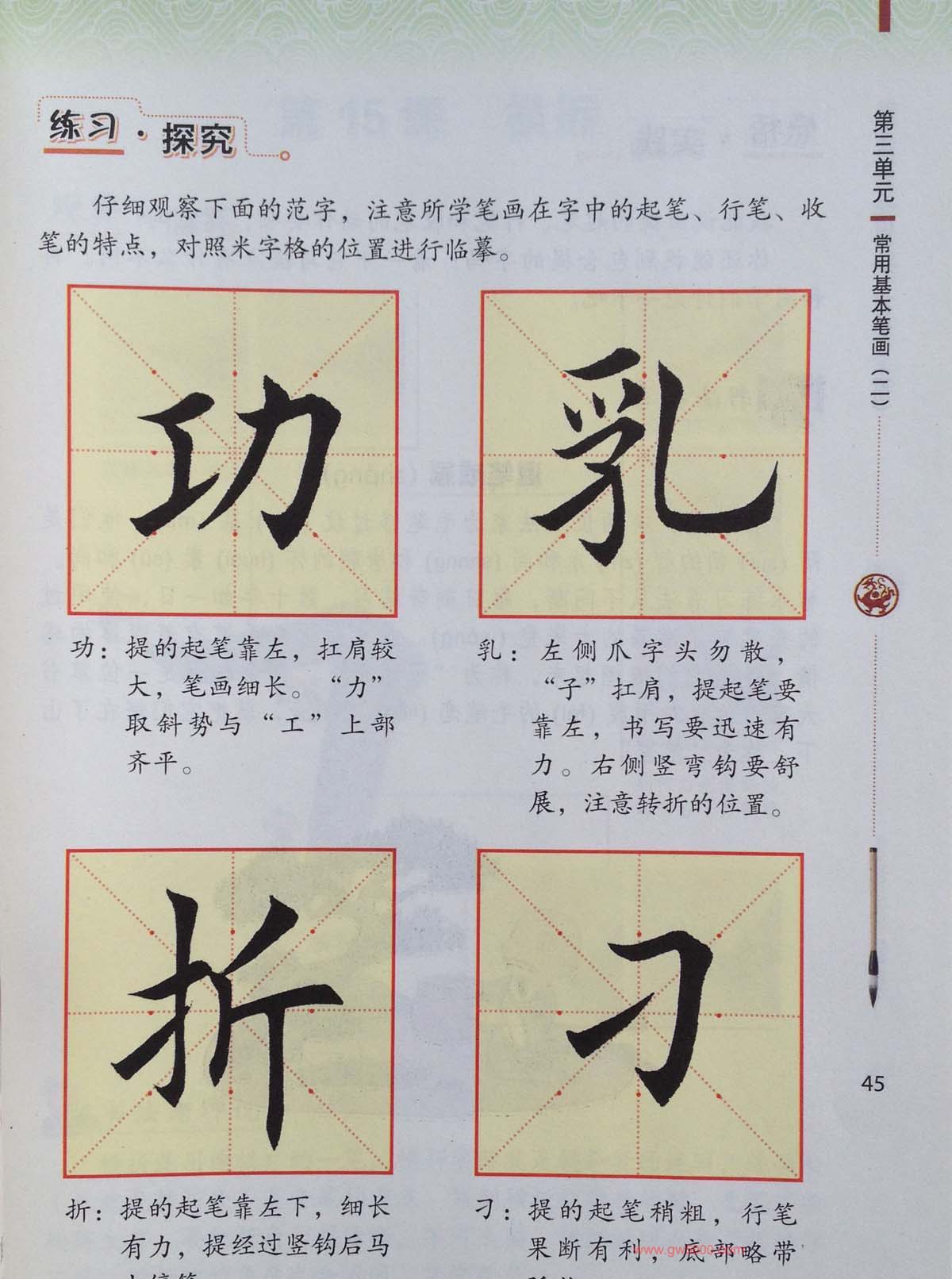 国内第一套视觉系书法教材:《书法练习指导三年级上册》,田英章主编,科学出版社,田雪松毛笔、硬笔书法字帖图片62张。