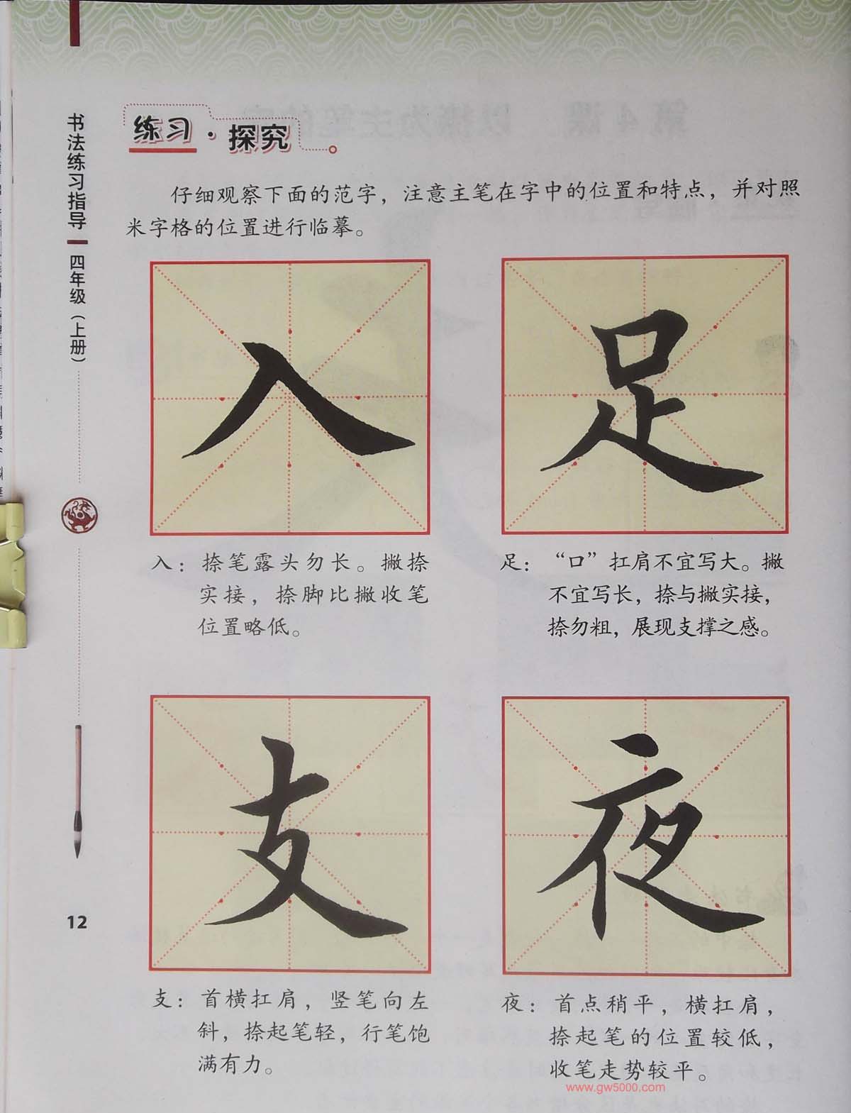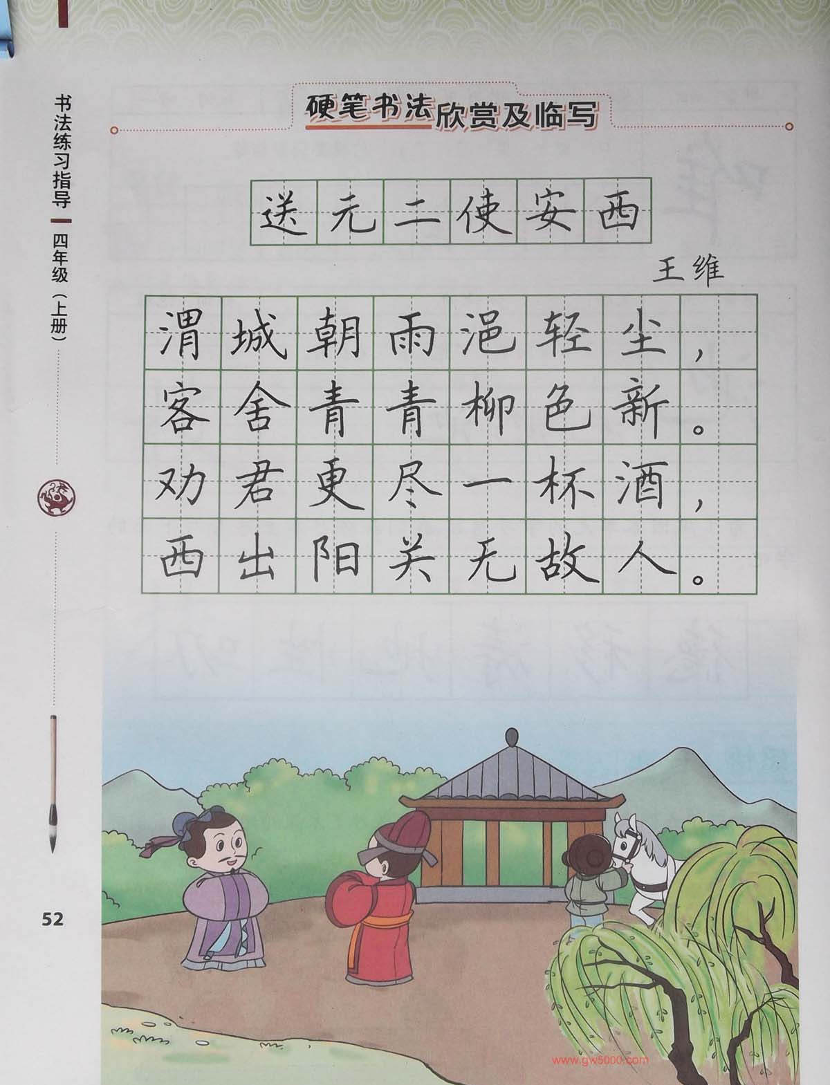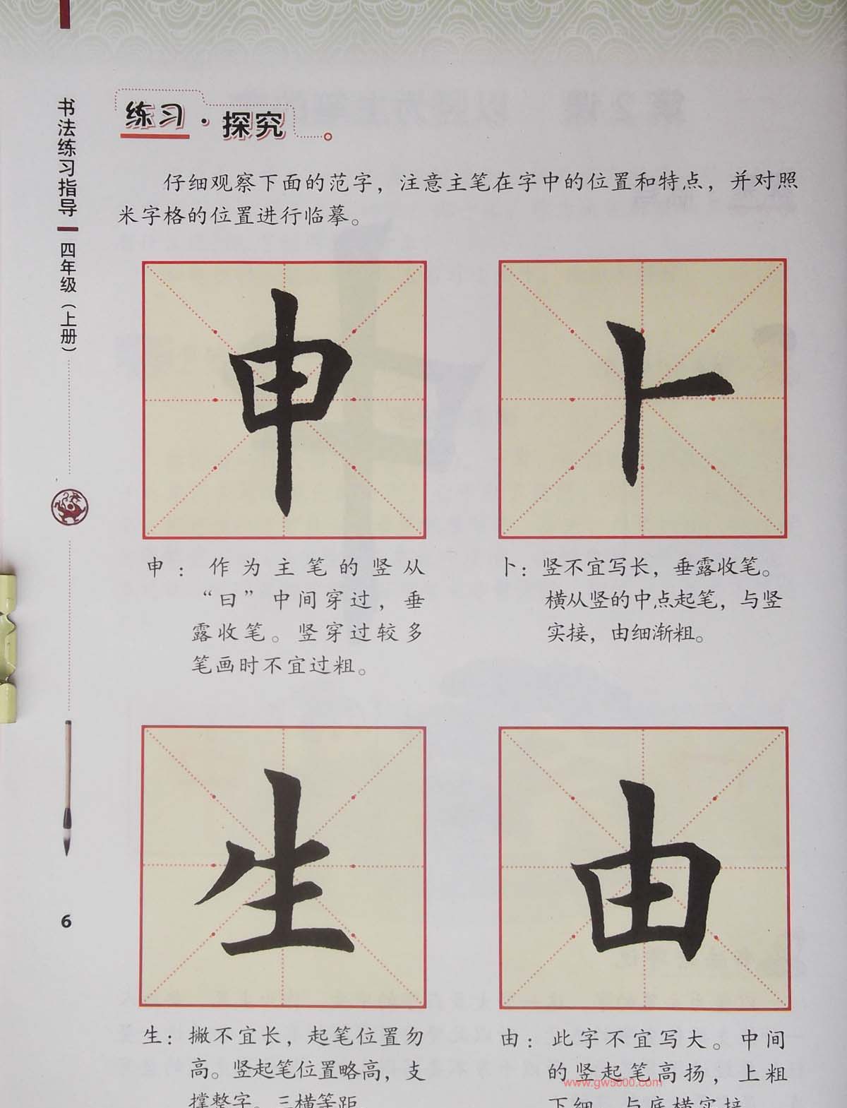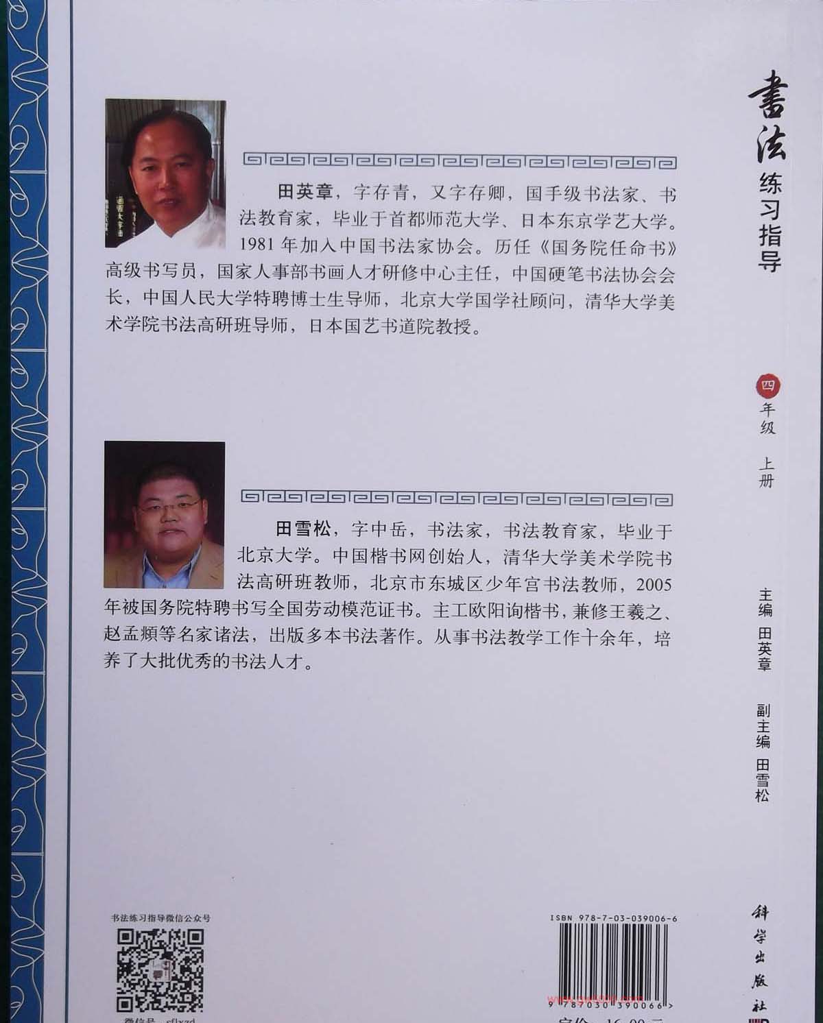 国内第一套视觉系书法教材:《书法练习指导四年级上册》,田英章主编,范字书写:田雪松,科学出版社,高清晰中小学毛笔、硬笔书法字帖图片58张。