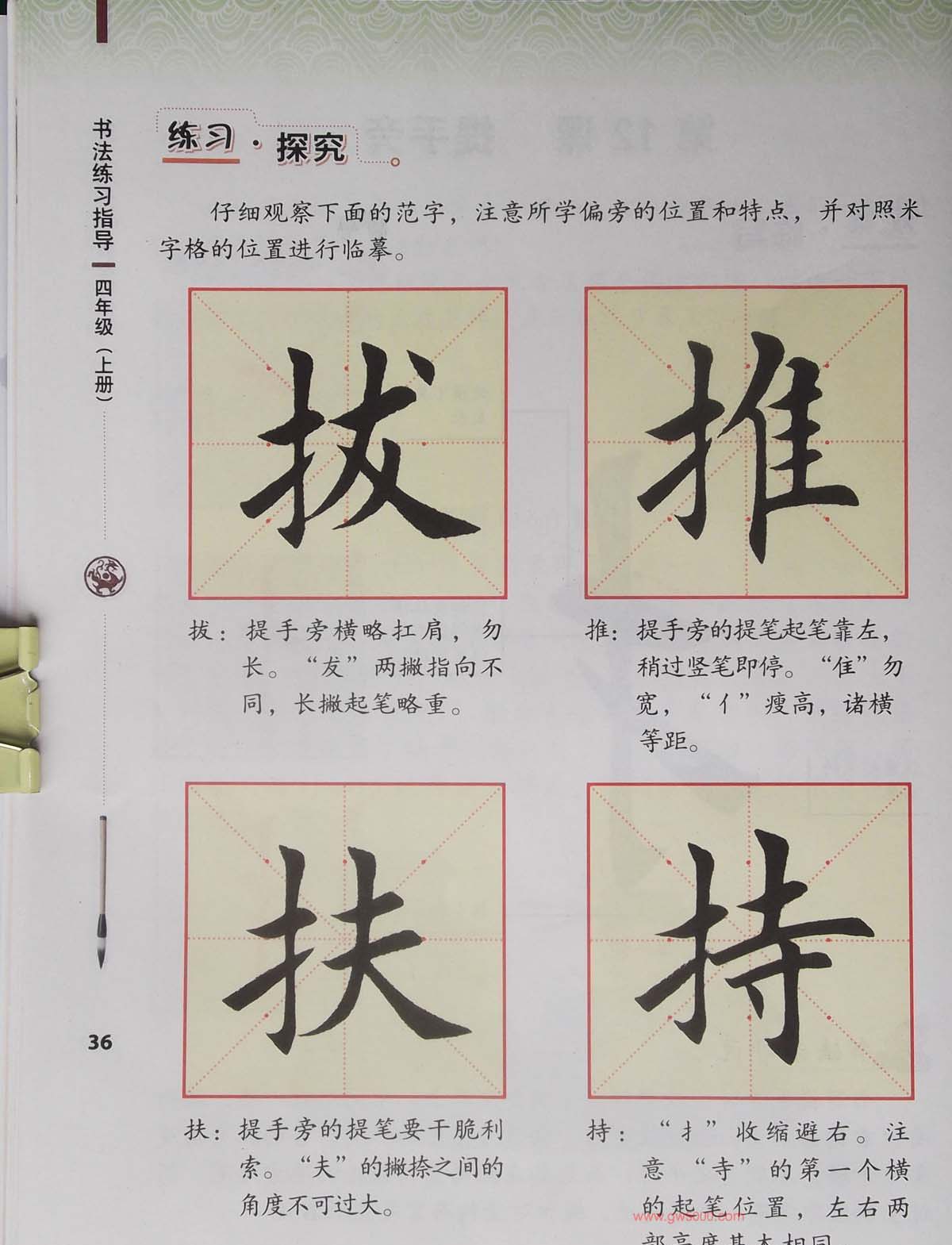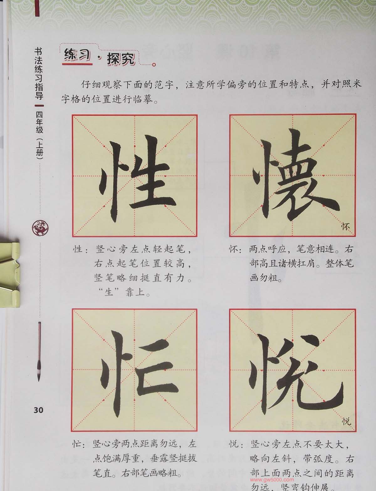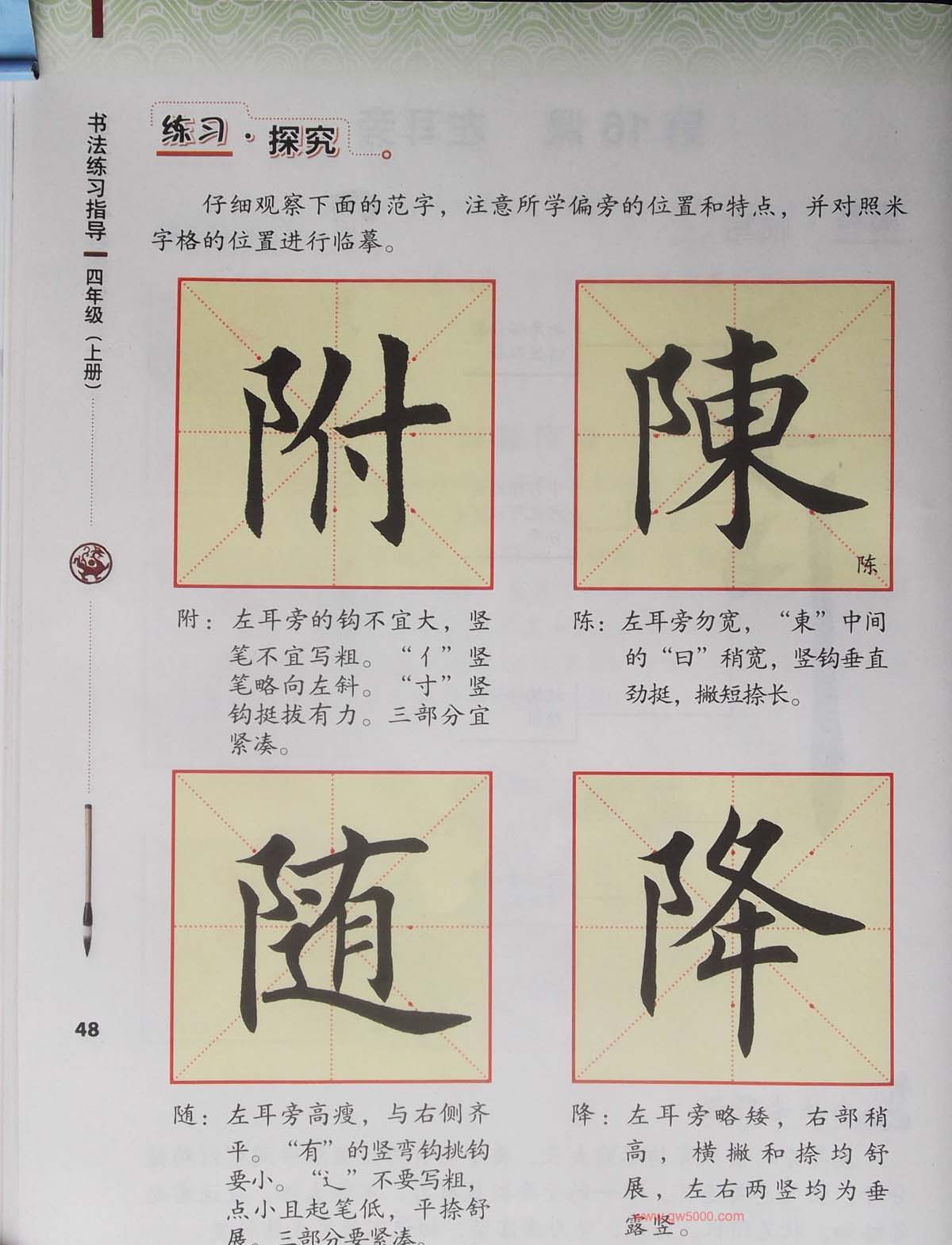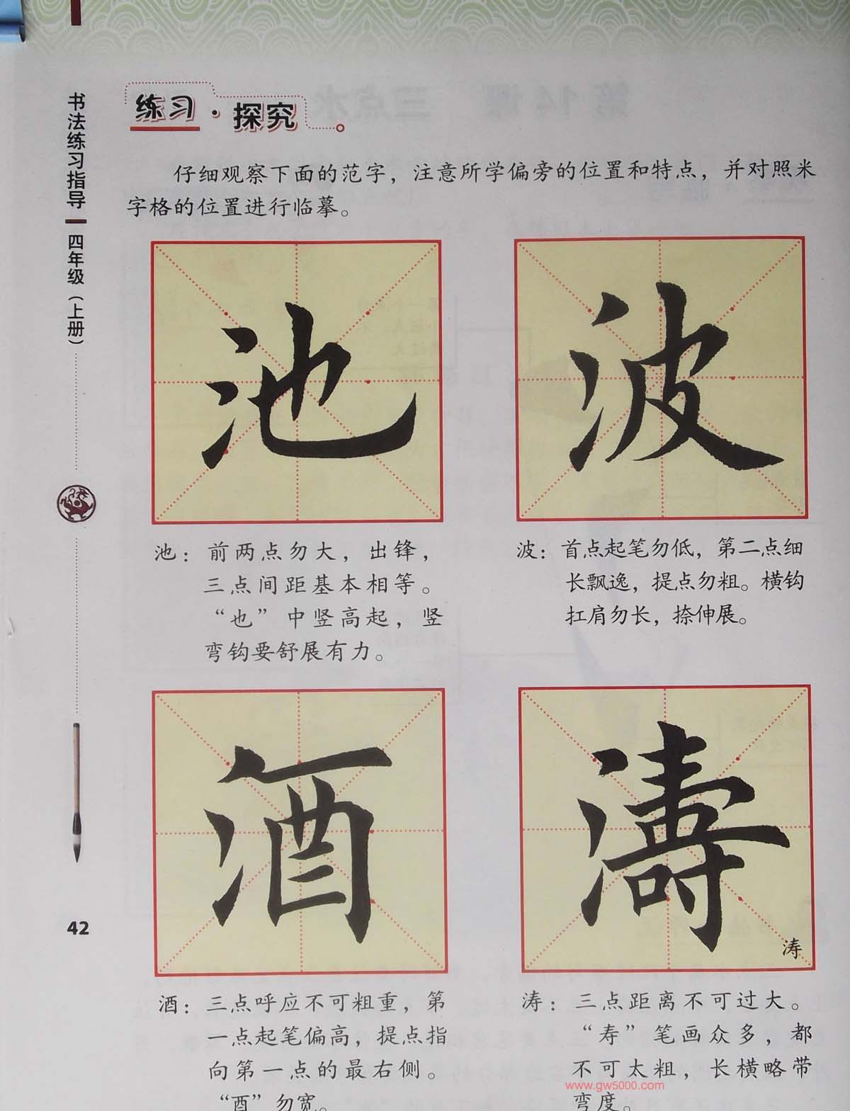 国内第一套视觉系书法教材:《书法练习指导四年级上册》,田英章主编,范字书写:田雪松,科学出版社,高清晰中小学毛笔、硬笔书法字帖图片58张。