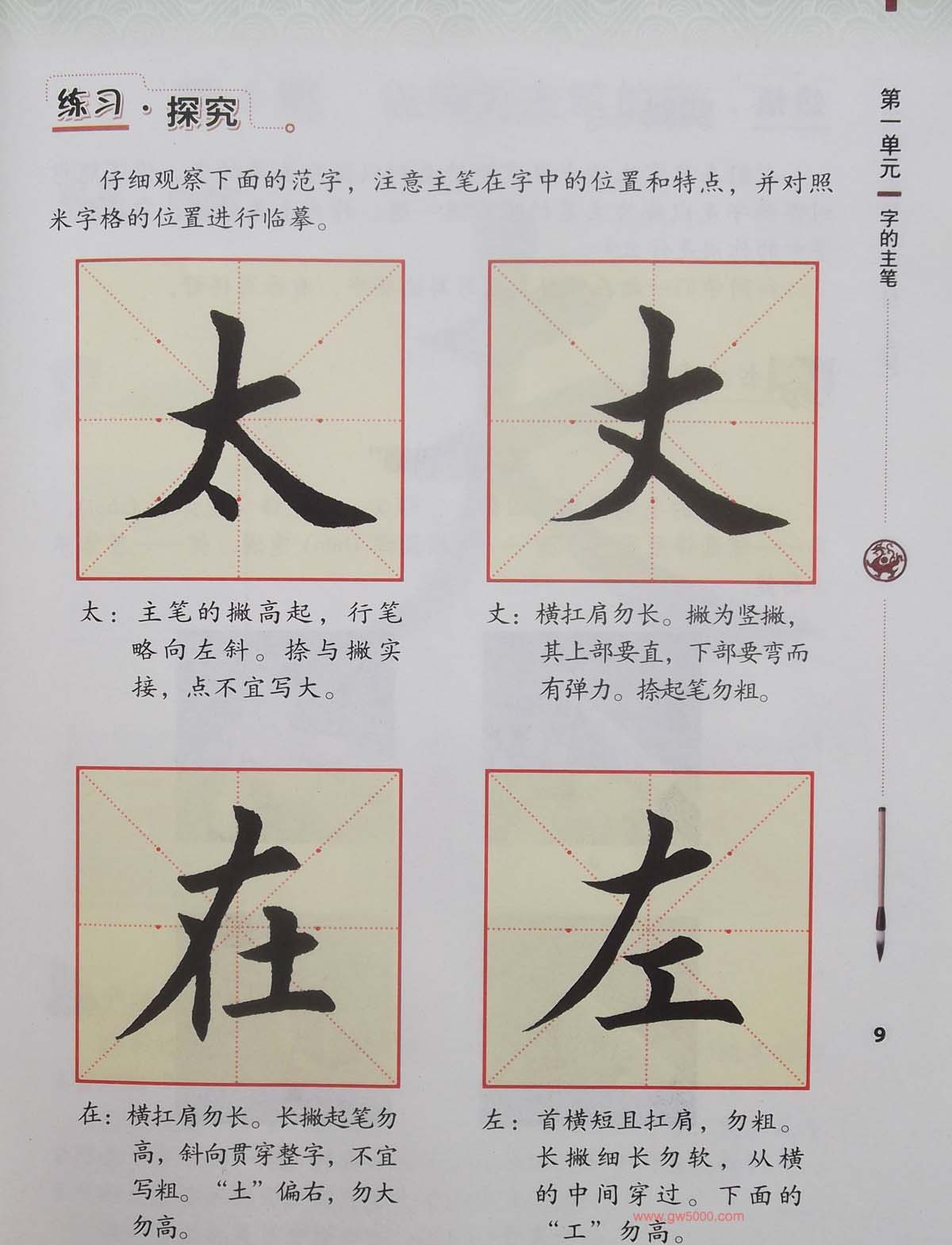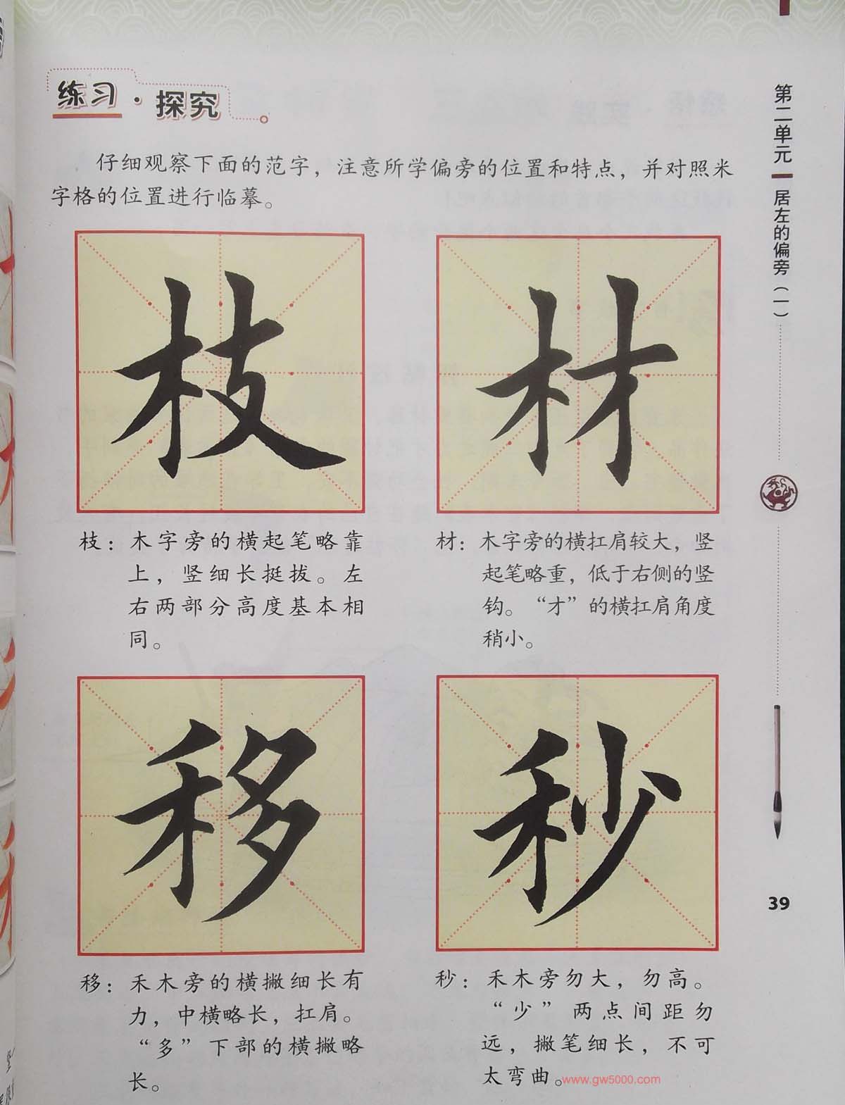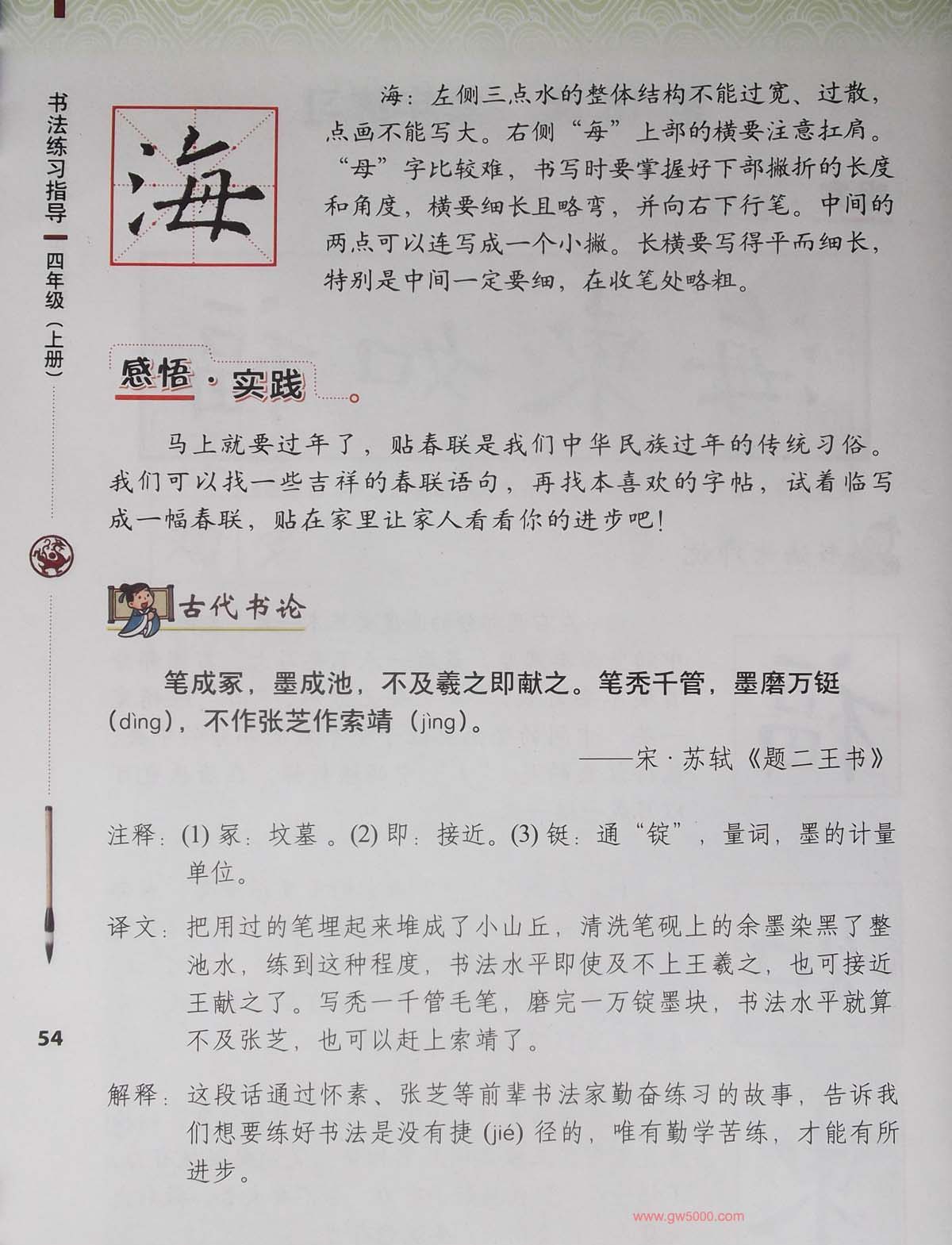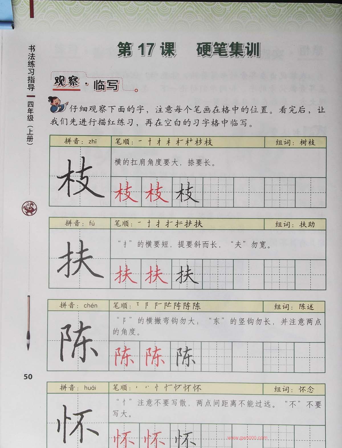 国内第一套视觉系书法教材:《书法练习指导四年级上册》,田英章主编,范字书写:田雪松,科学出版社,高清晰中小学毛笔、硬笔书法字帖图片58张。
