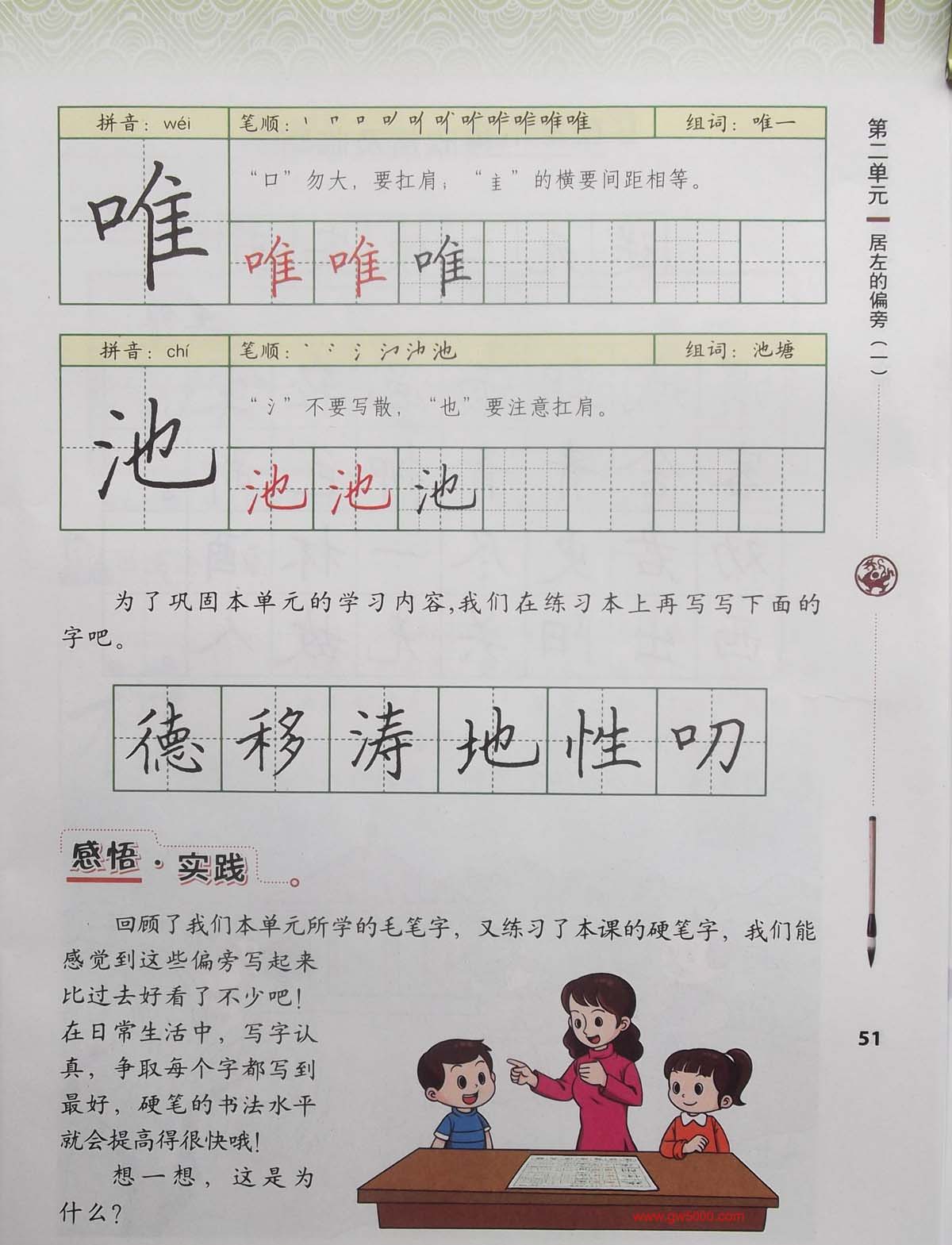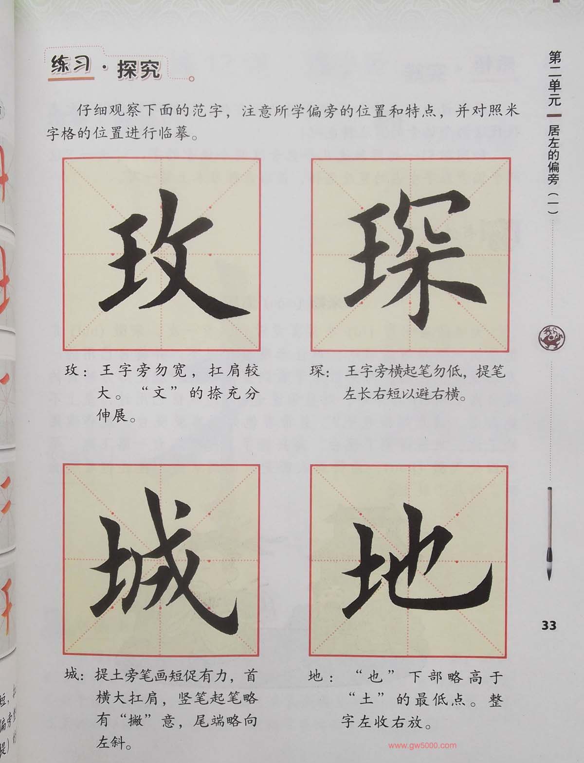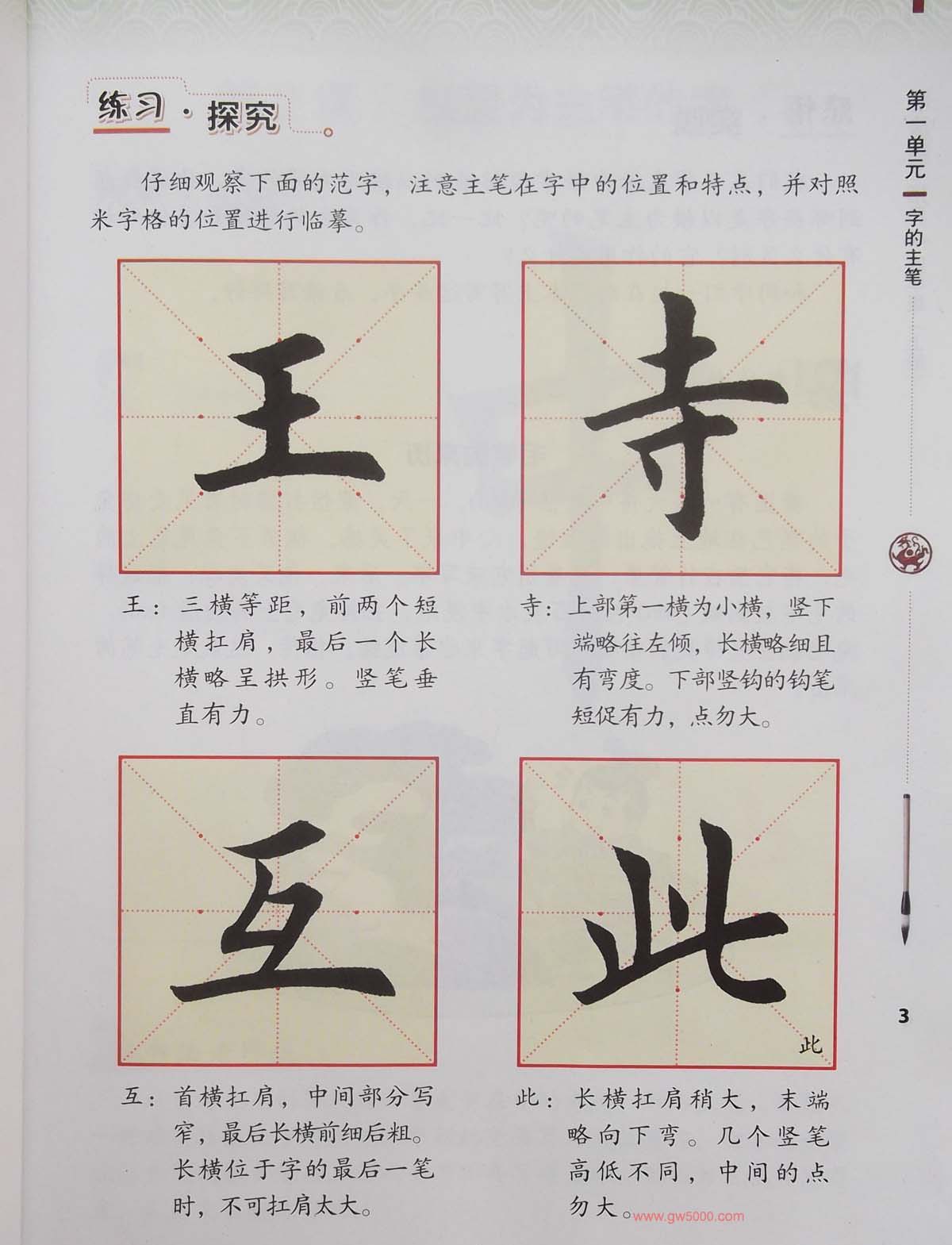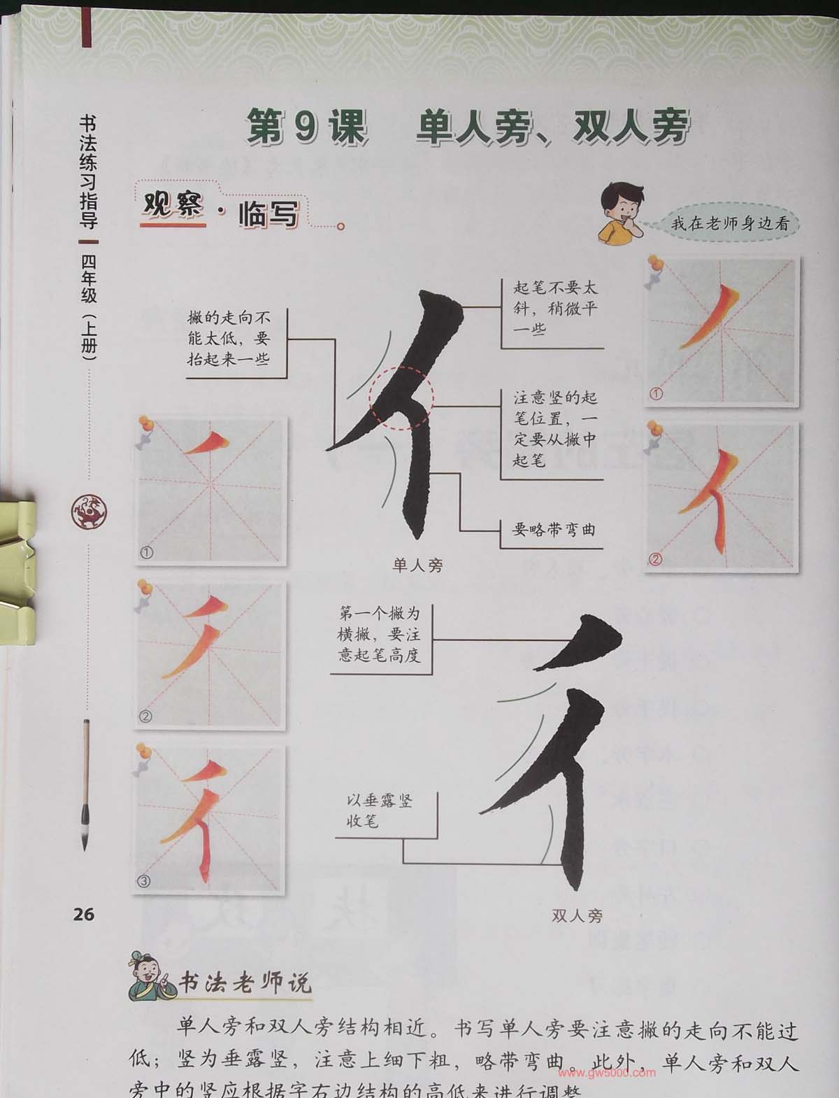 国内第一套视觉系书法教材:《书法练习指导四年级上册》,田英章主编,范字书写:田雪松,科学出版社,高清晰中小学毛笔、硬笔书法字帖图片58张。