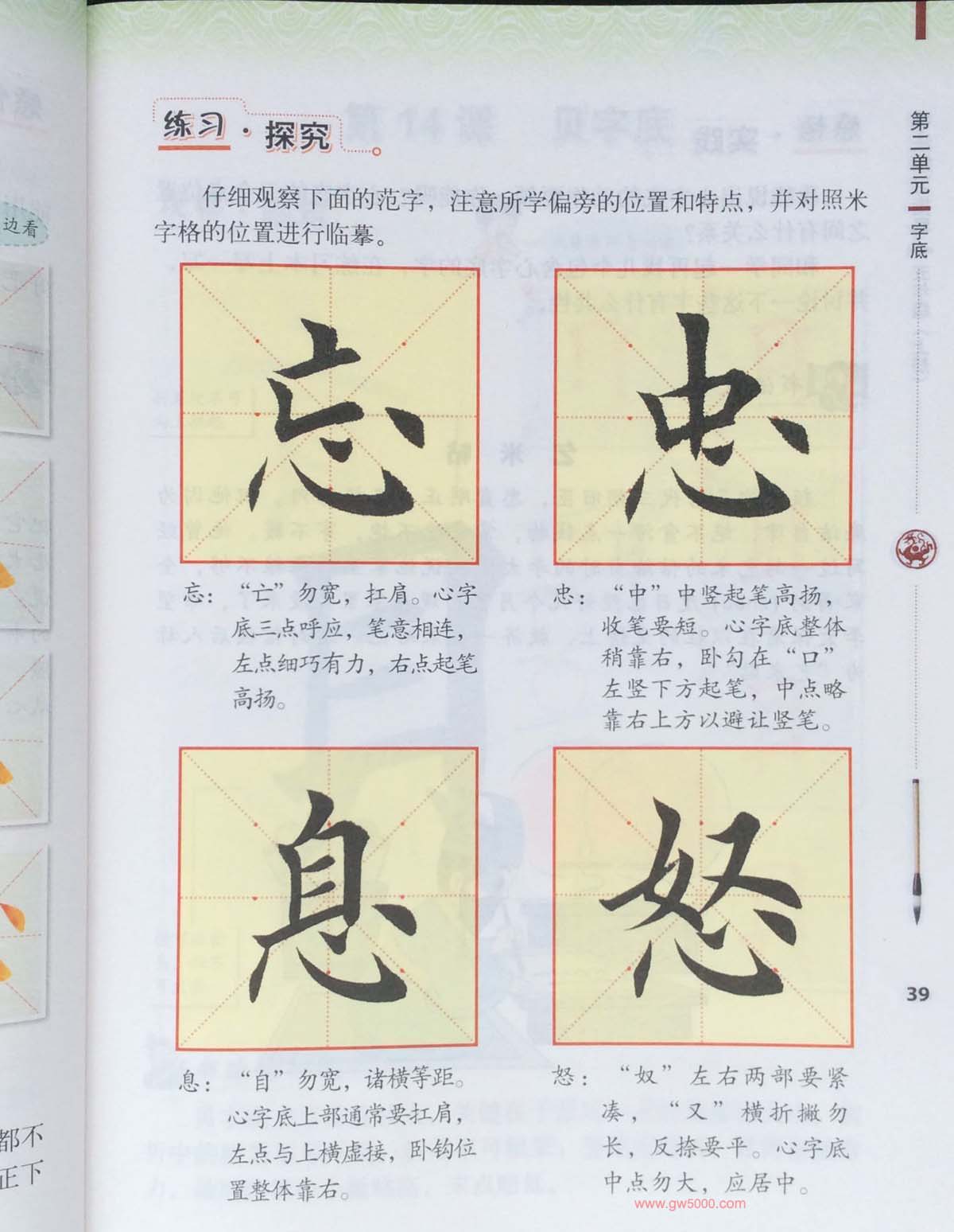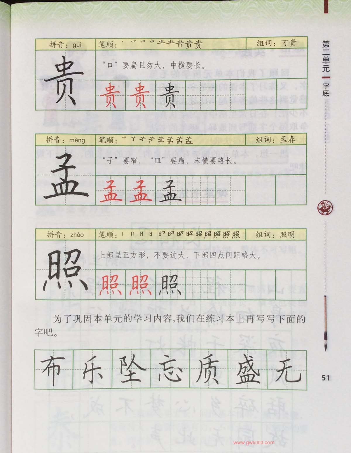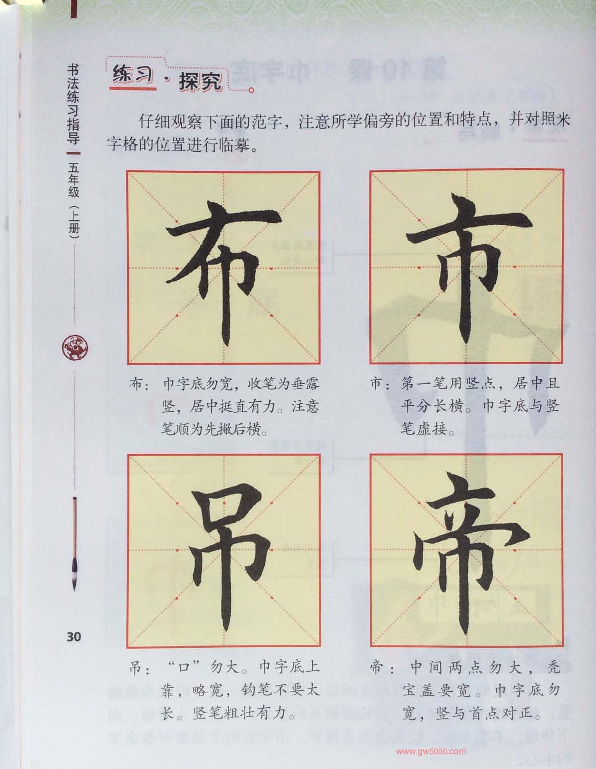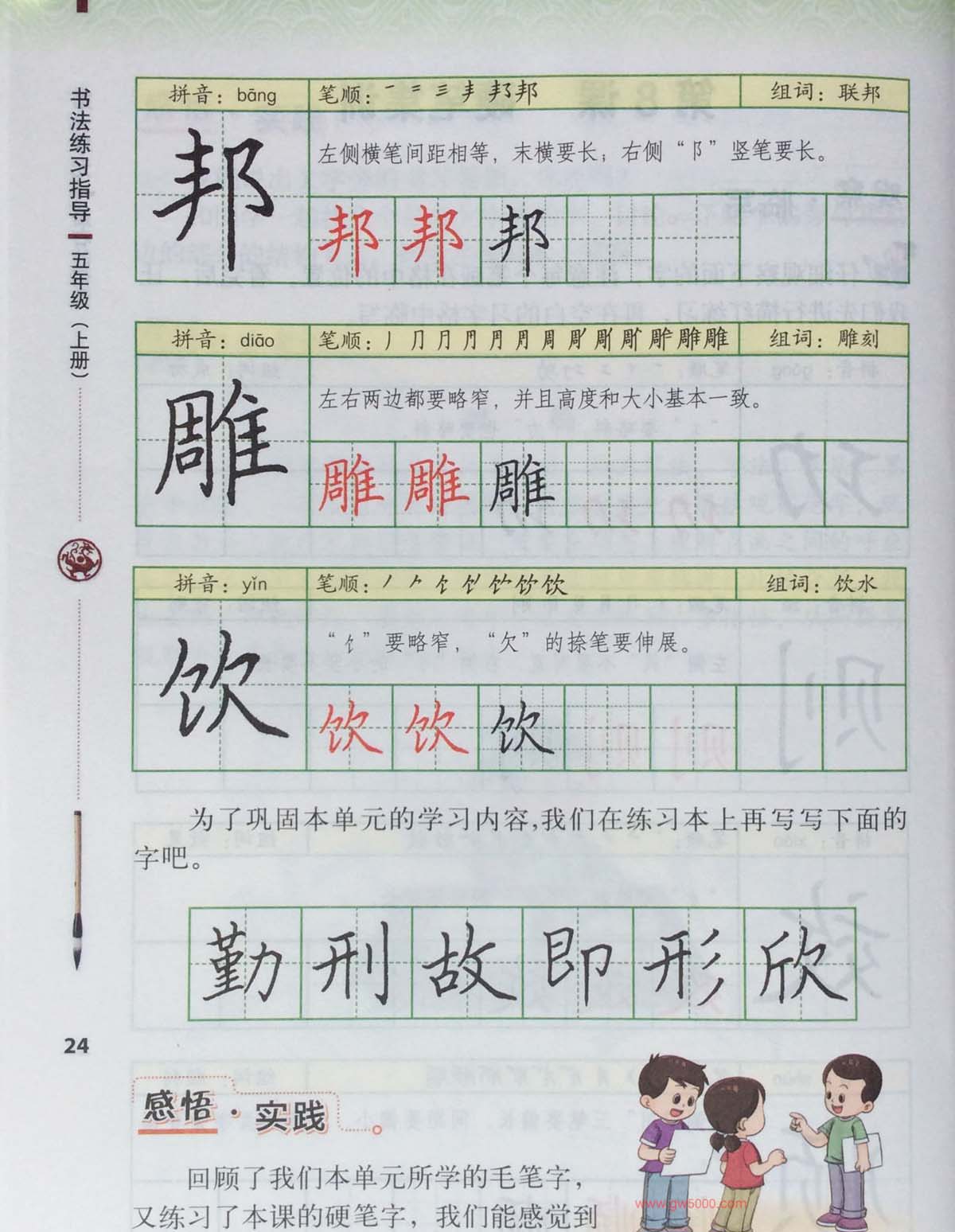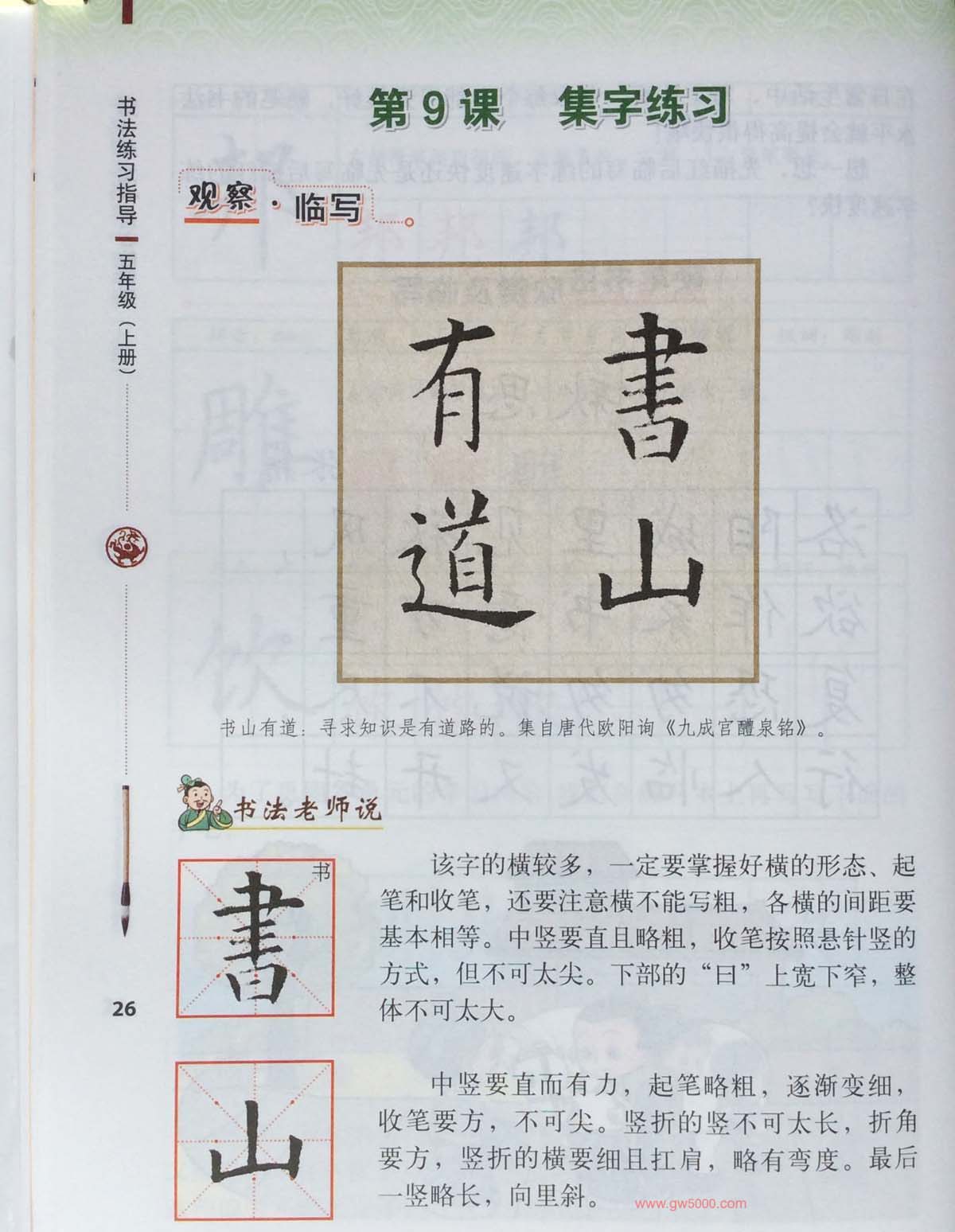 田英章书法教材《书法练习指导五年级上册》