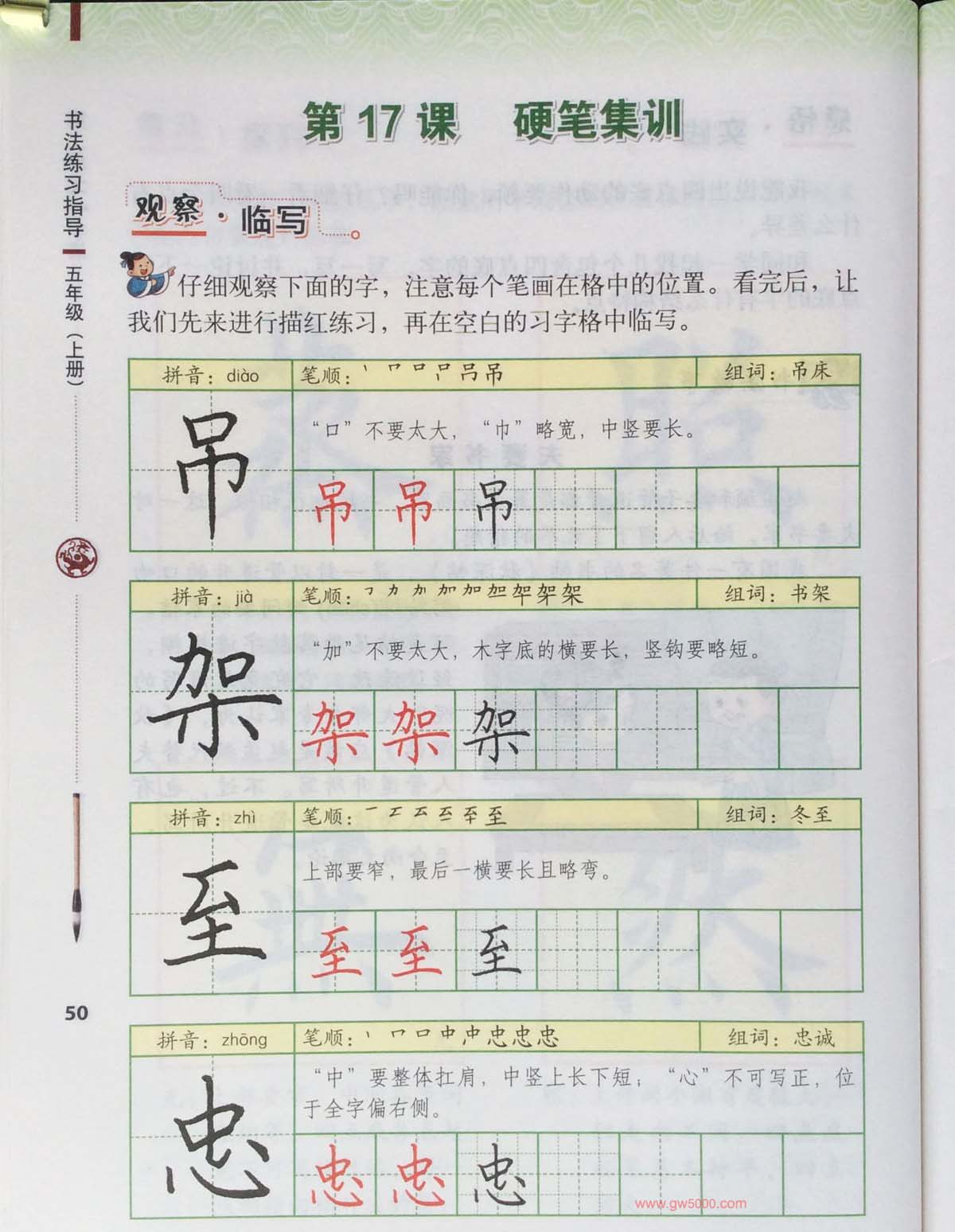 田雪松书法教材《书法练习指导五年级下册》