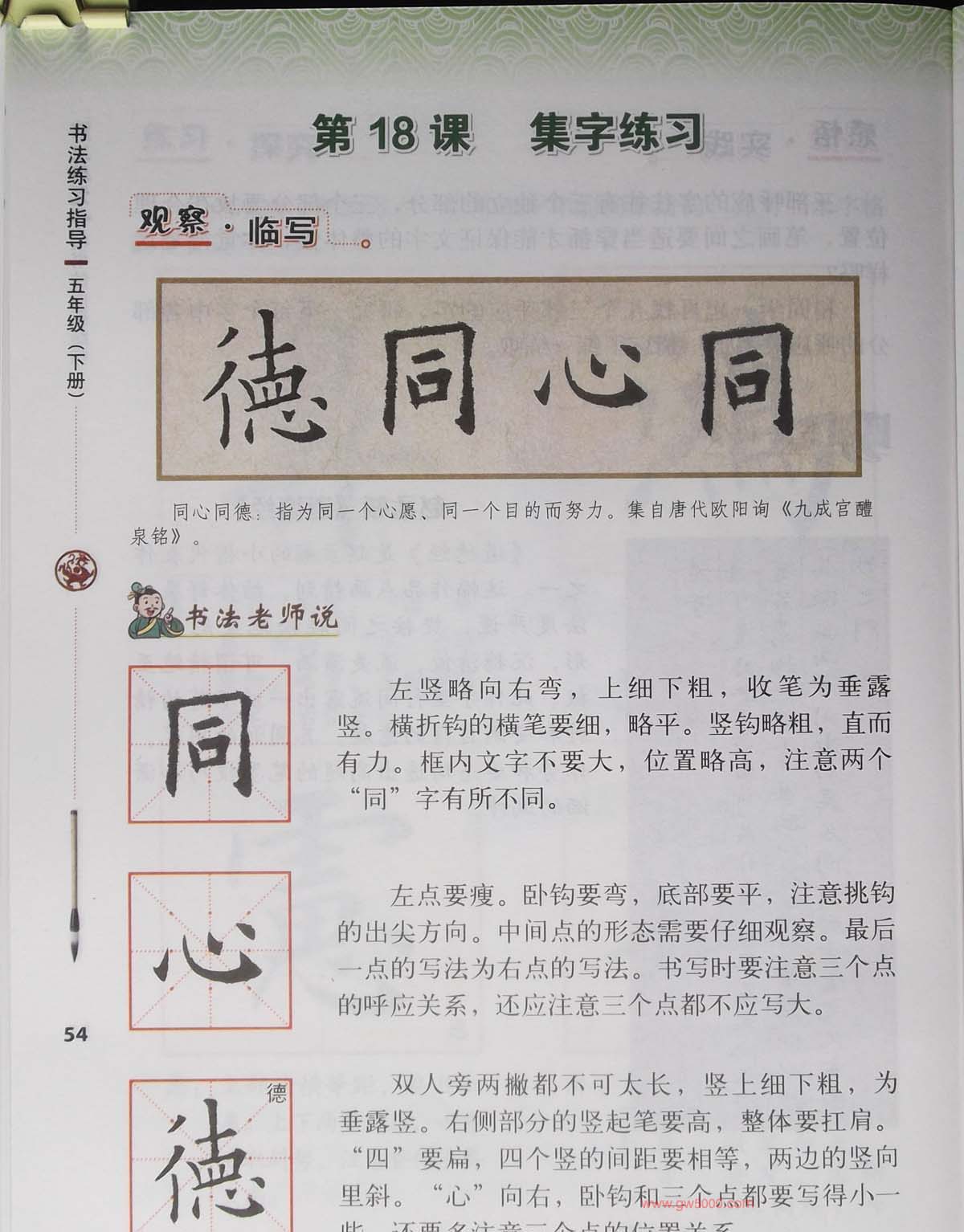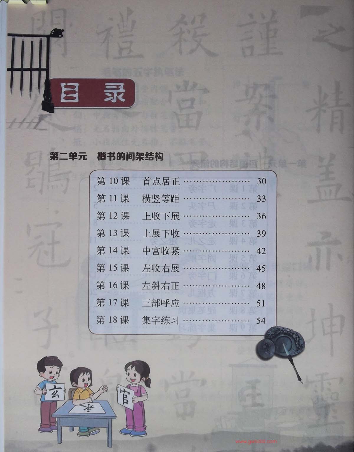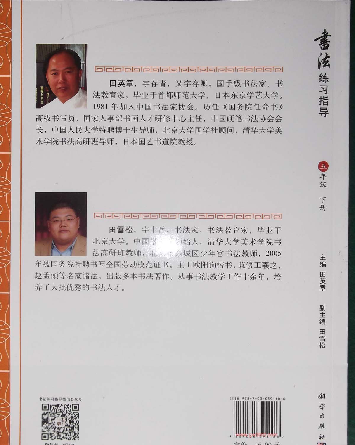 国内第一套视觉系书法教材:《书法练习指导五年级下册》,田英章主编,范字书写:田雪松,科学出版社,中小学书法指导字帖图片58张。