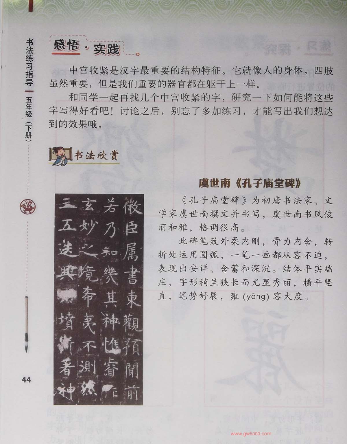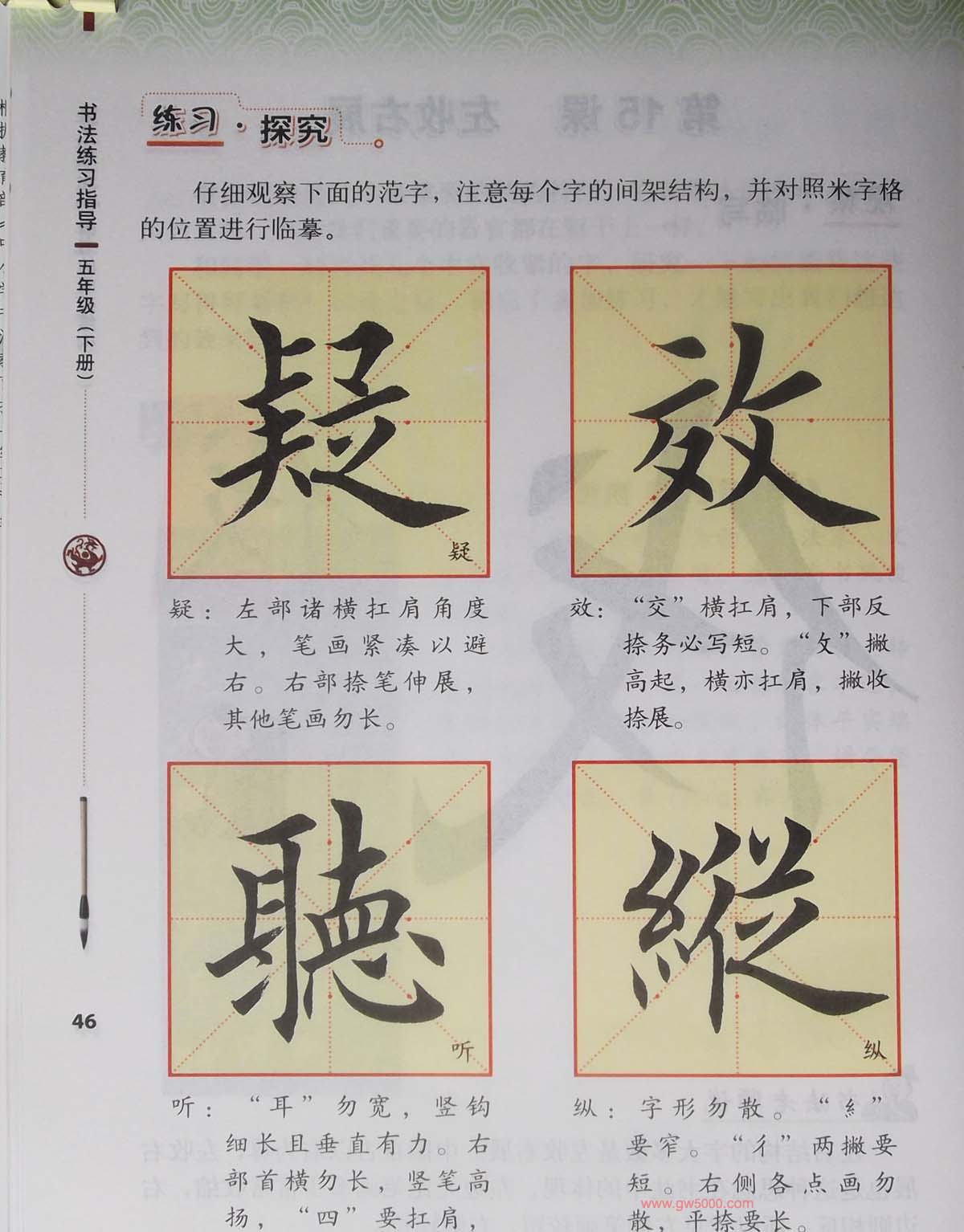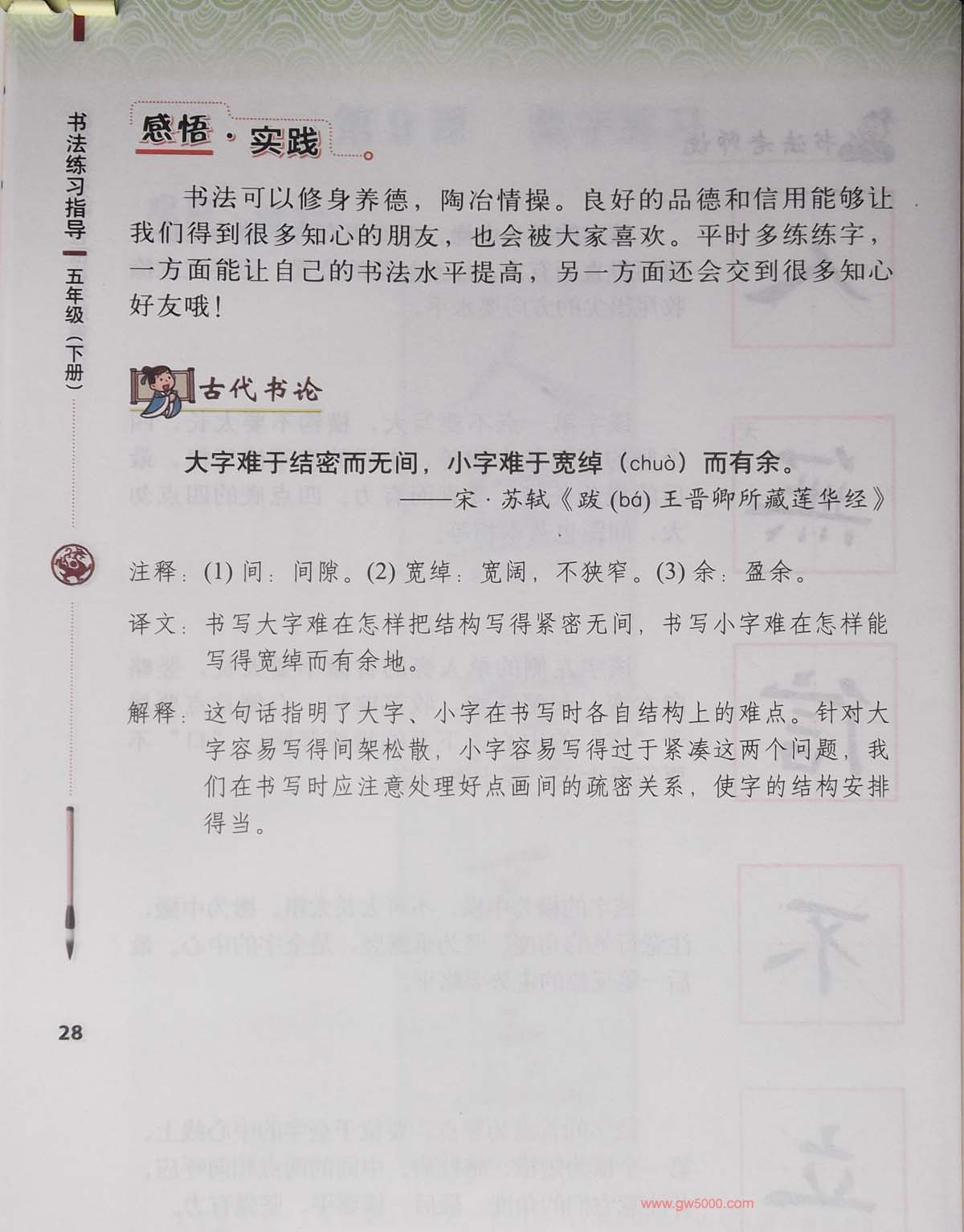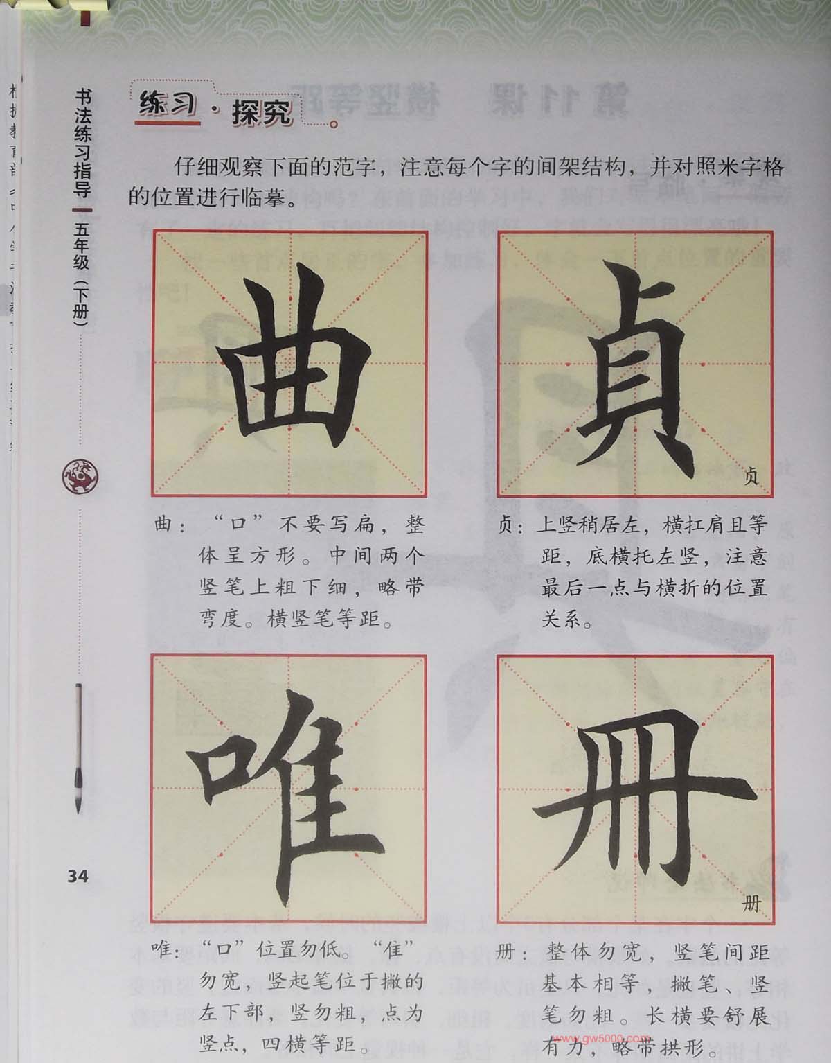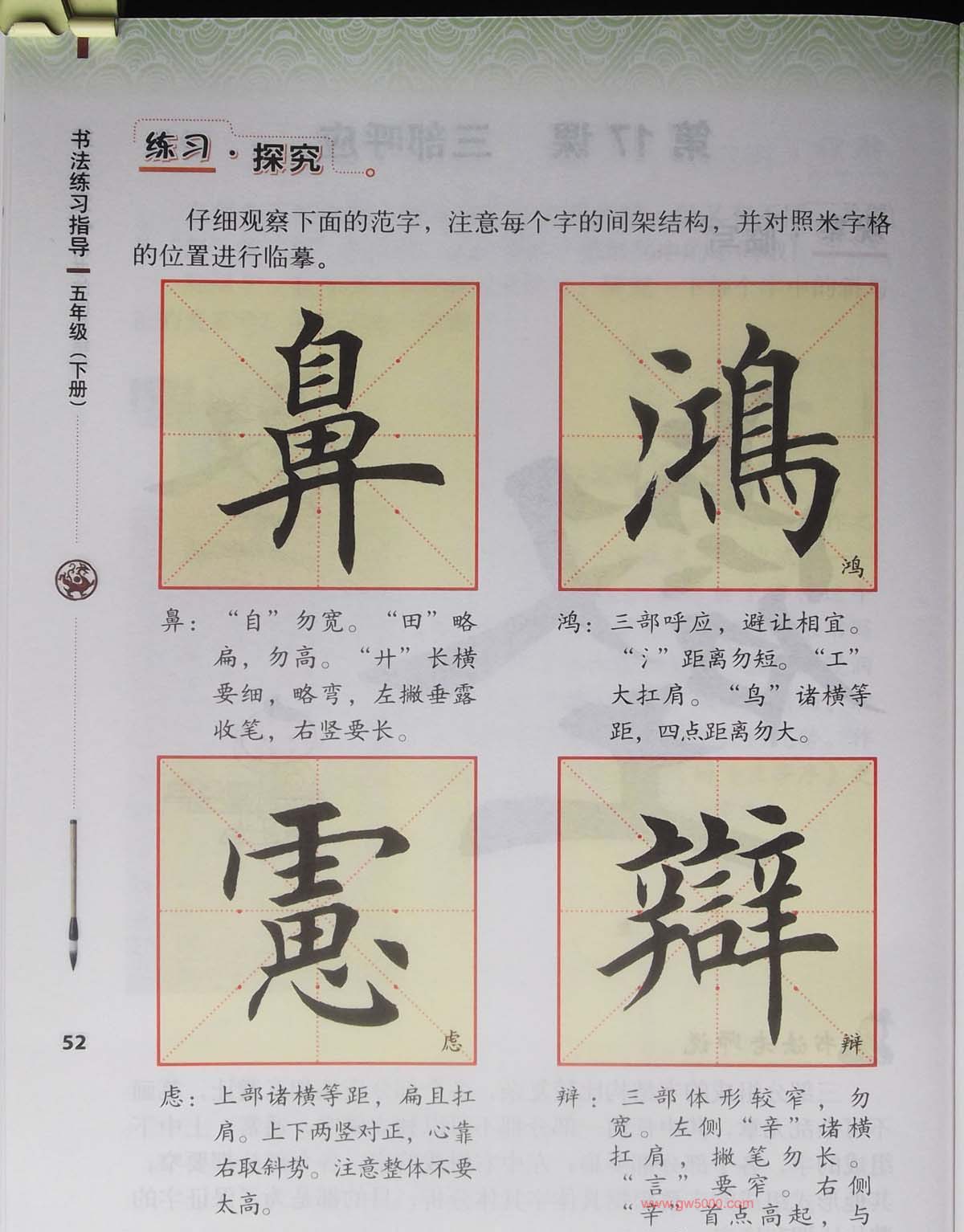 田雪松书法教材《书法练习指导五年级下册》