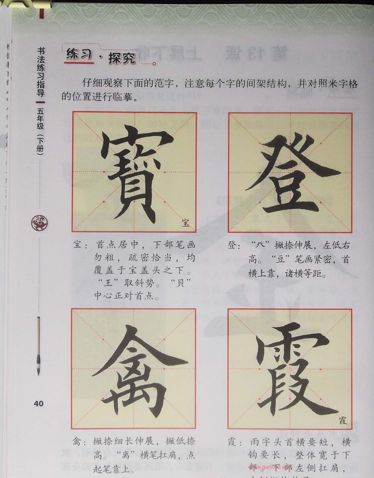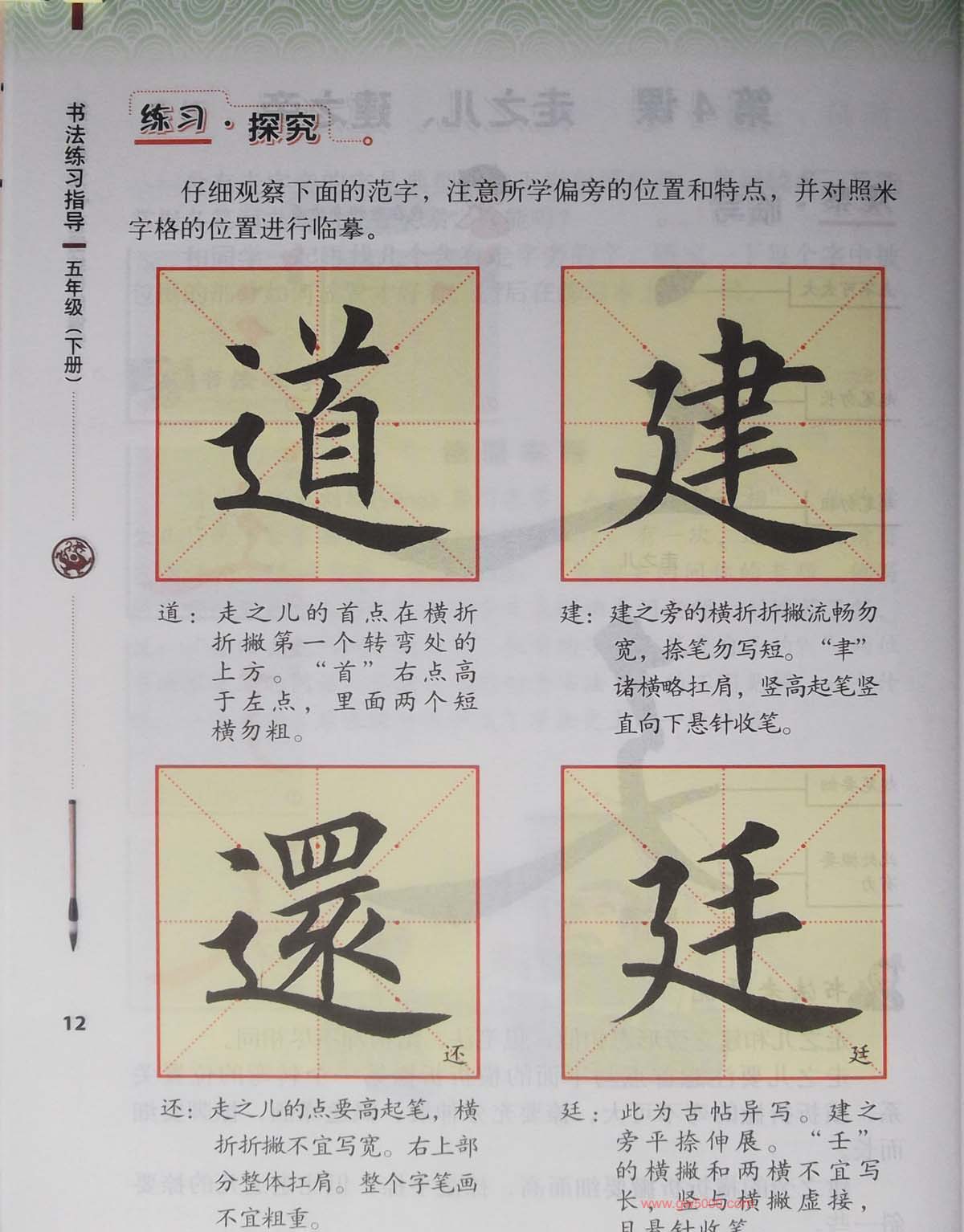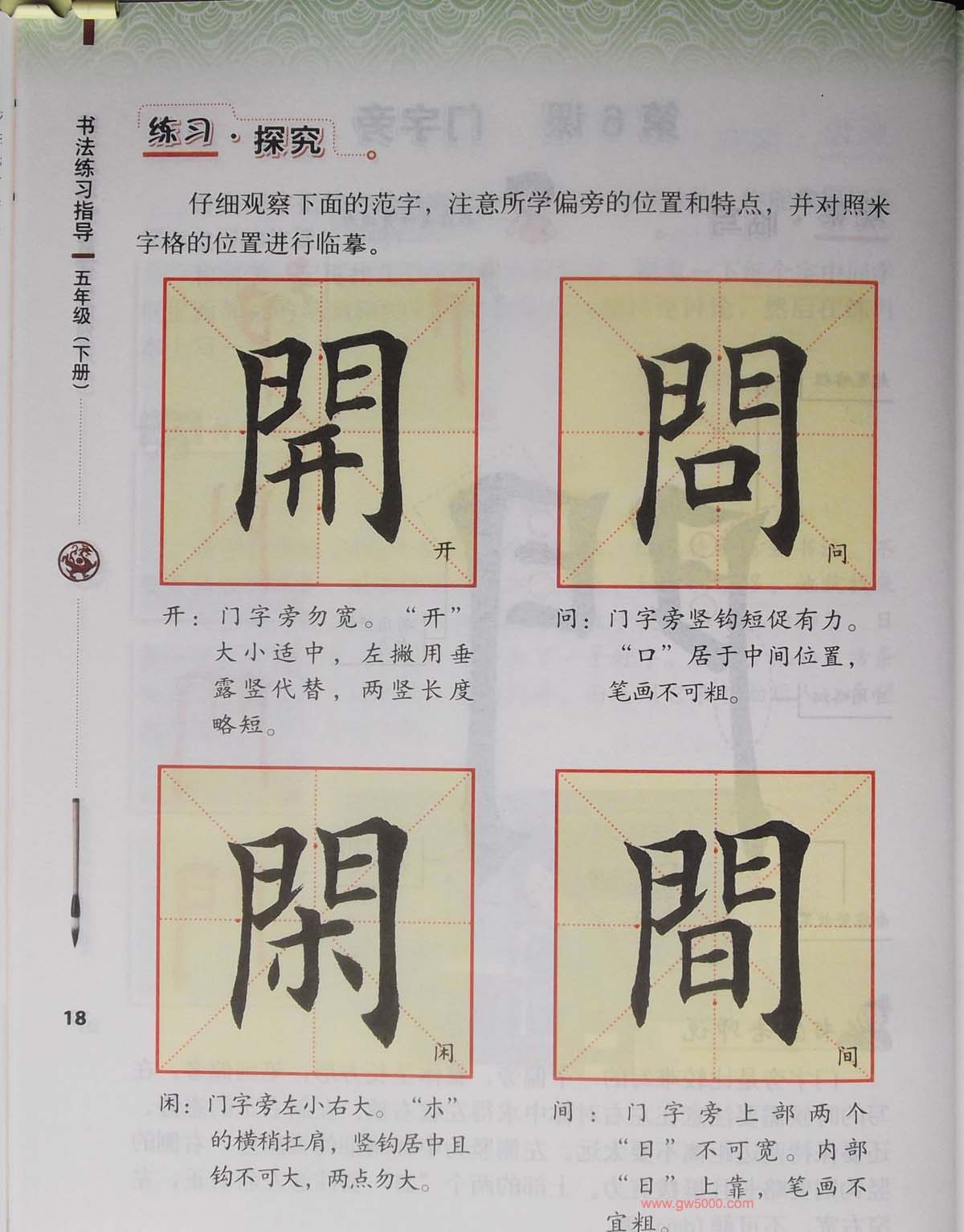 田英章书法教材《书法练习指导五年级上册》