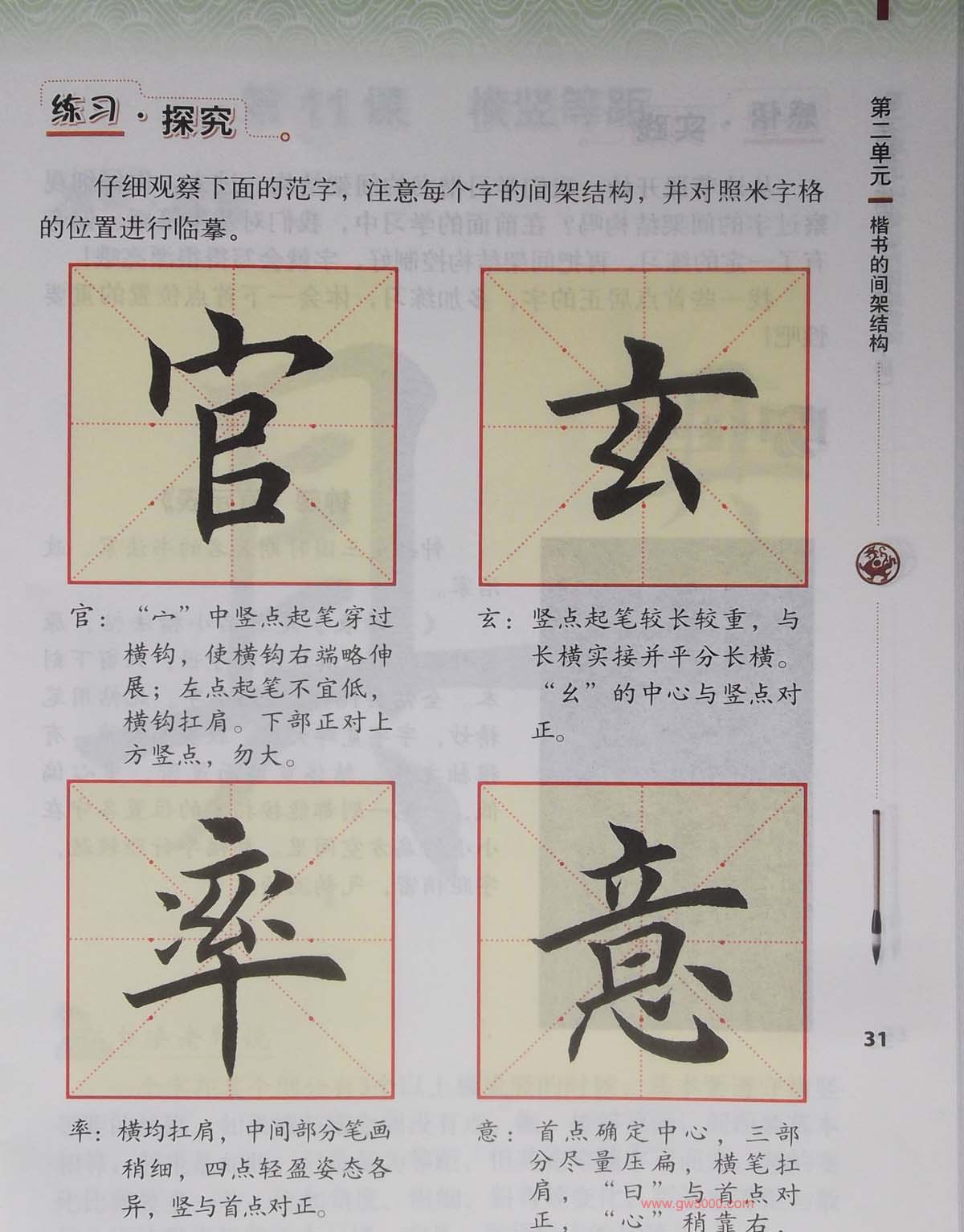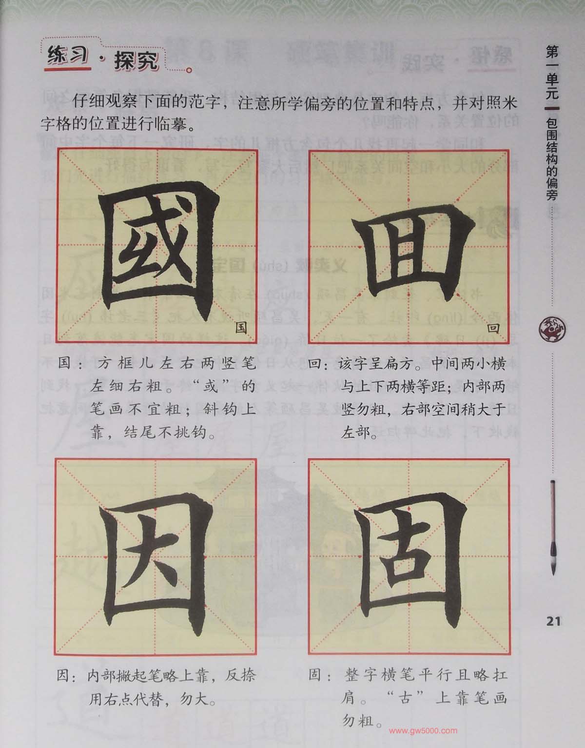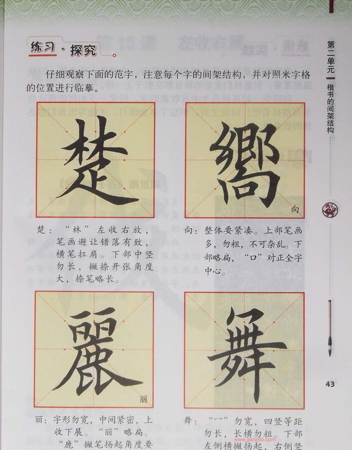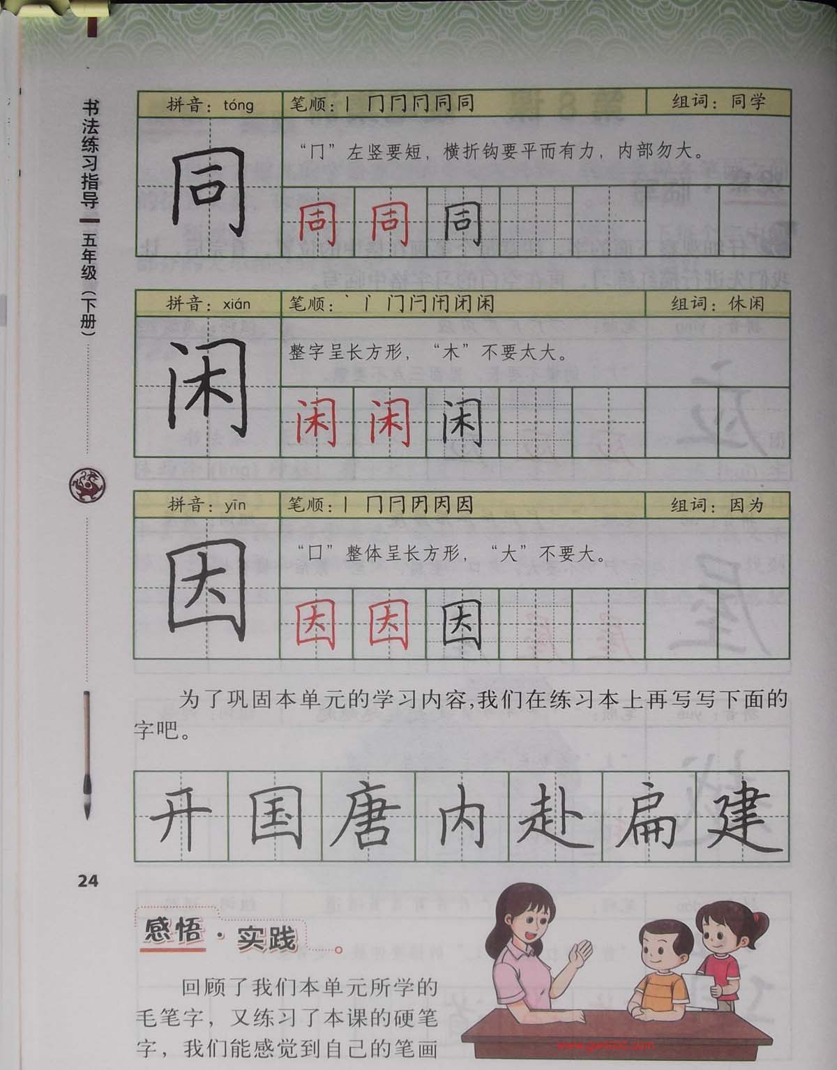 田英章书法教材《书法练习指导五年级上册》