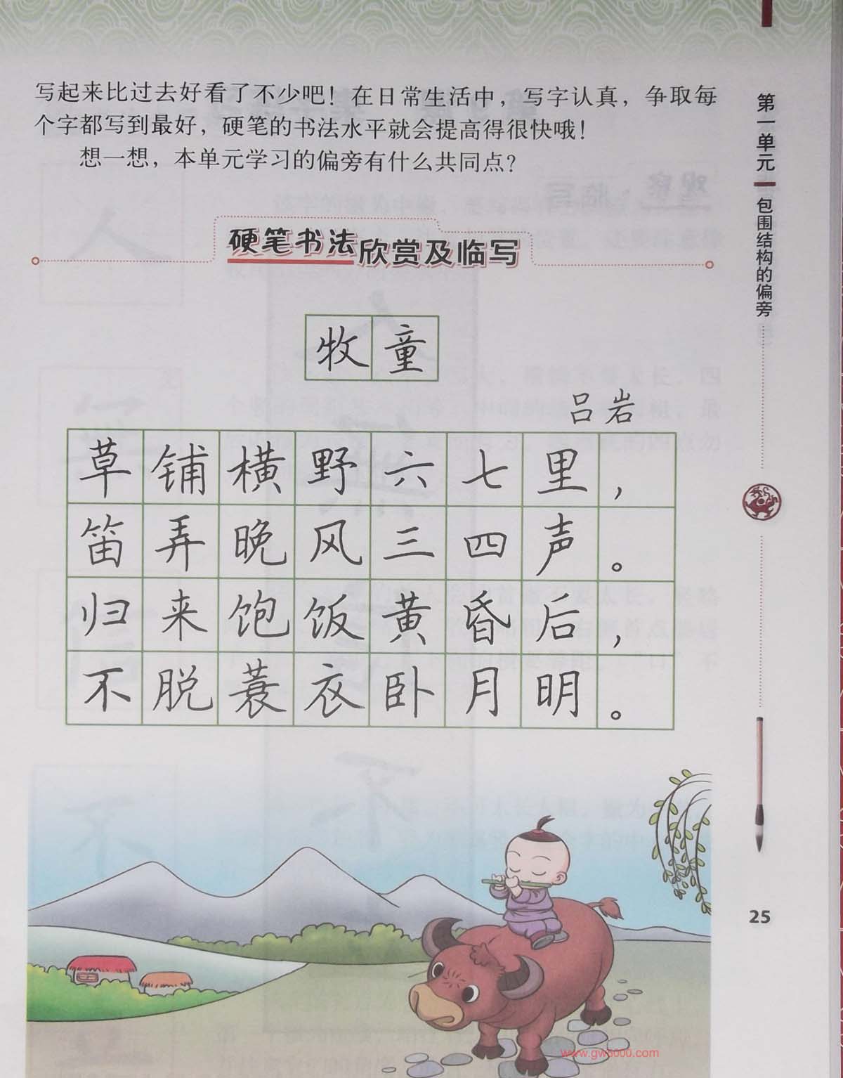 硬笔行楷书法教材《书法练习指导六年级上册》