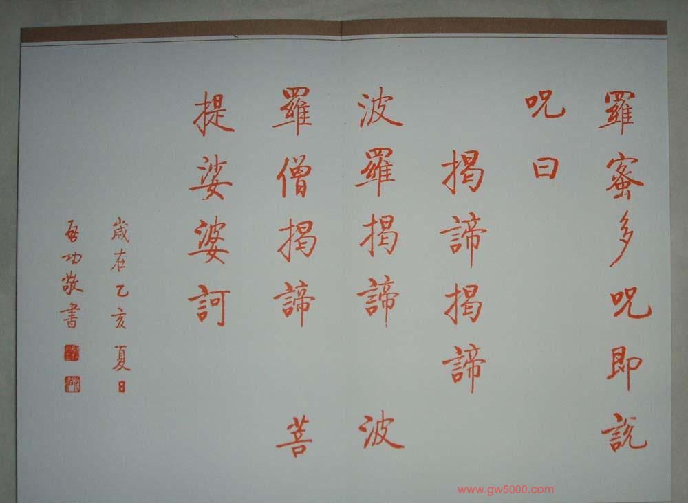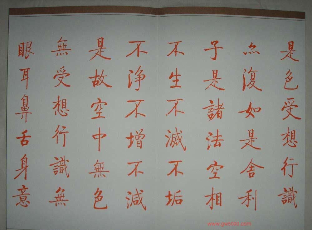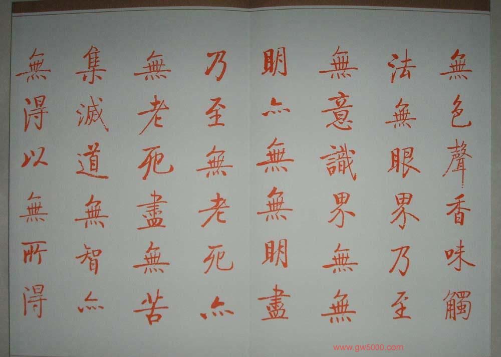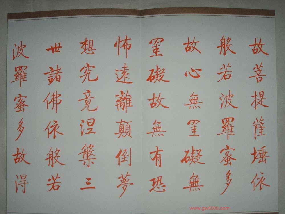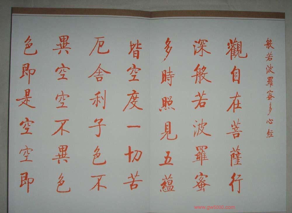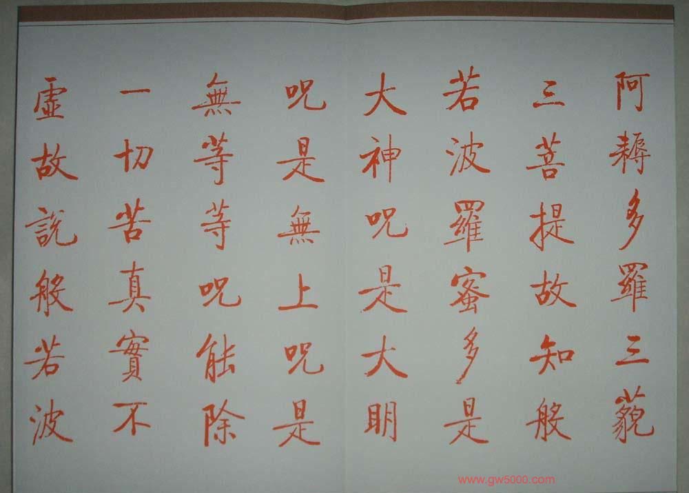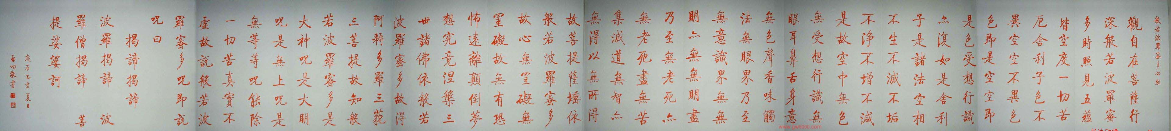 启功朱笔小楷作品《心经》书法图片7张