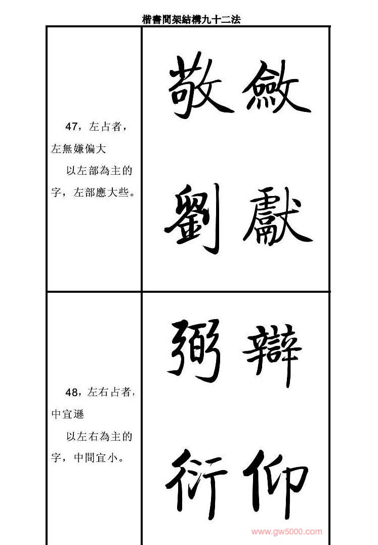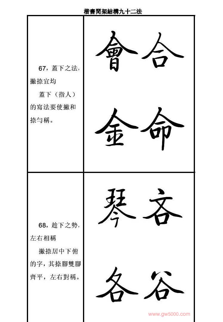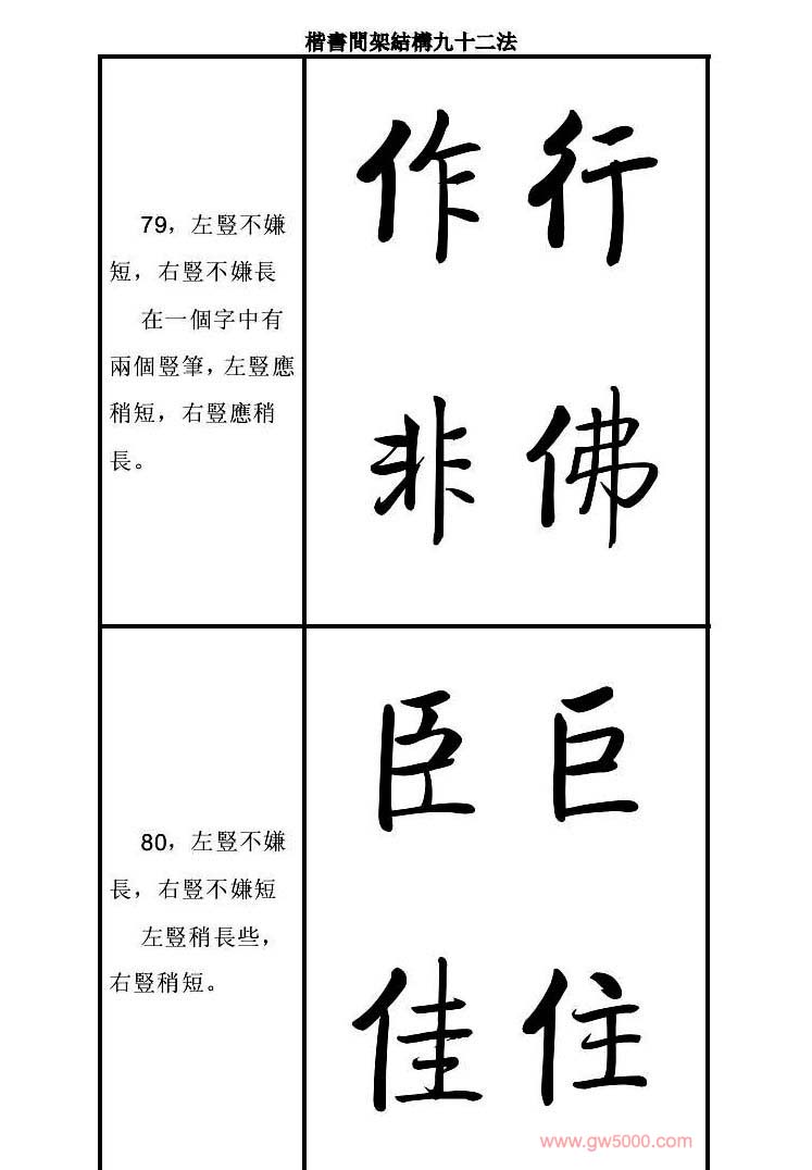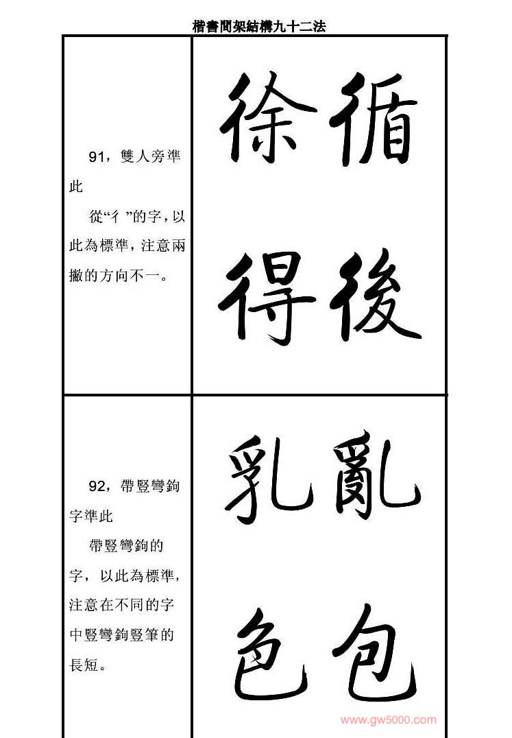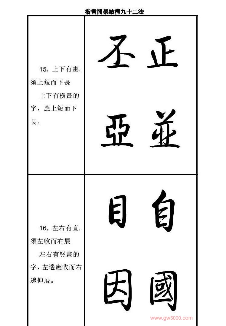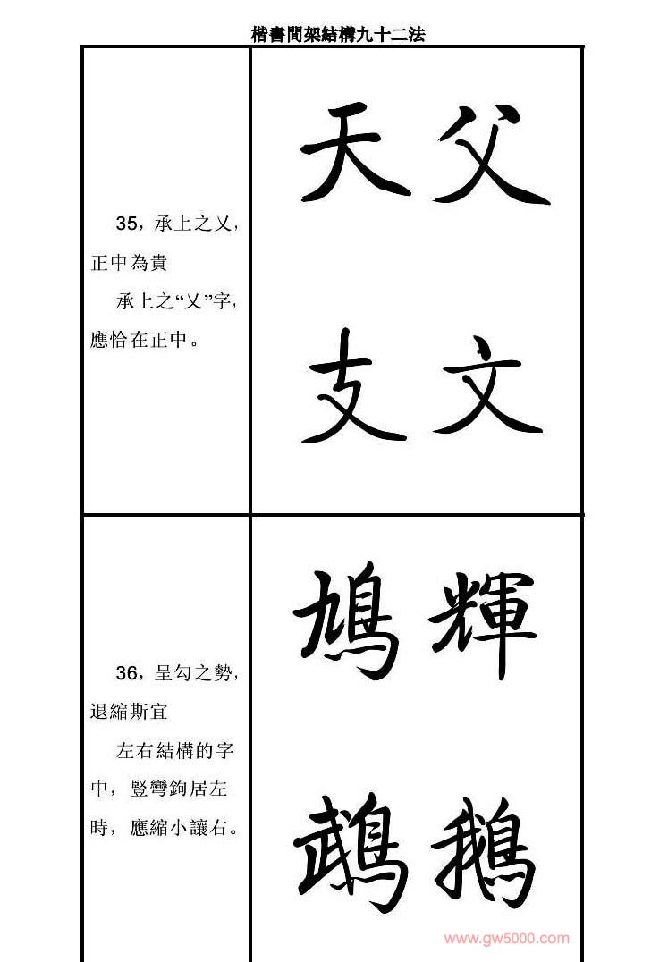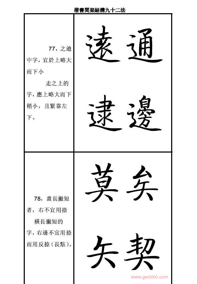 启功字帖楷书间架结构九十二法