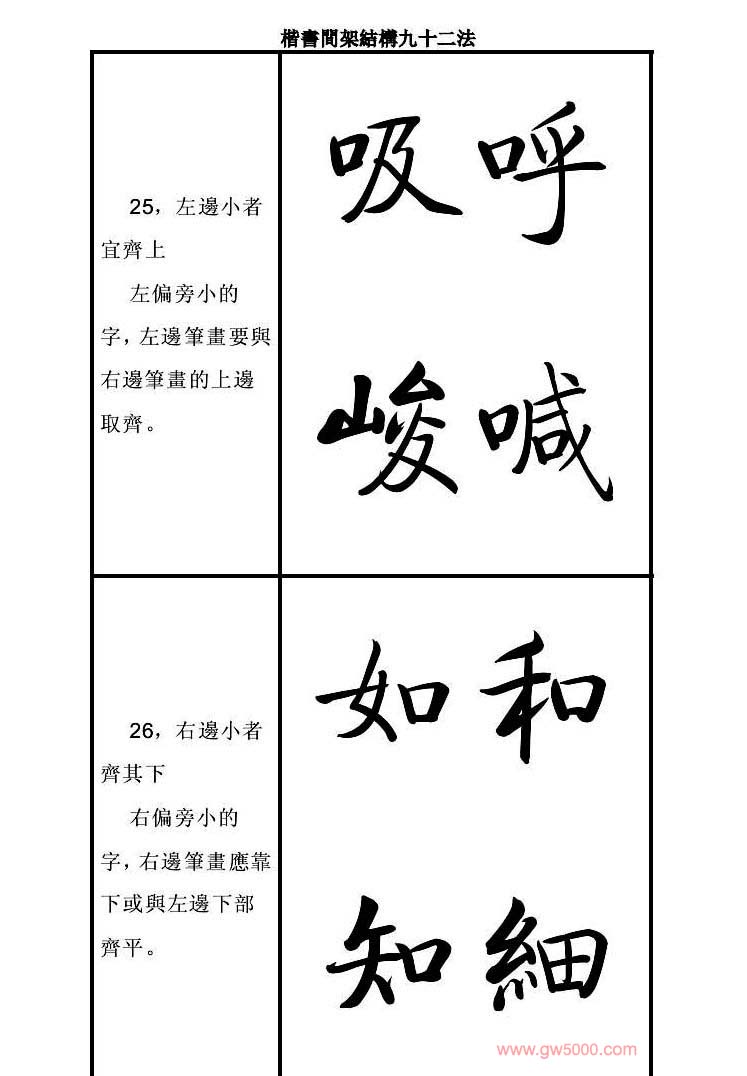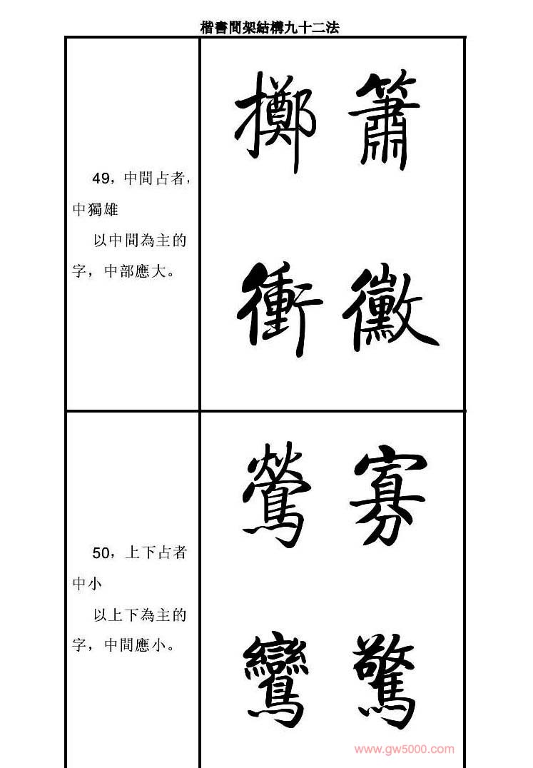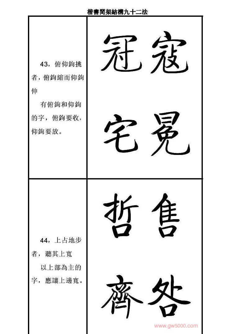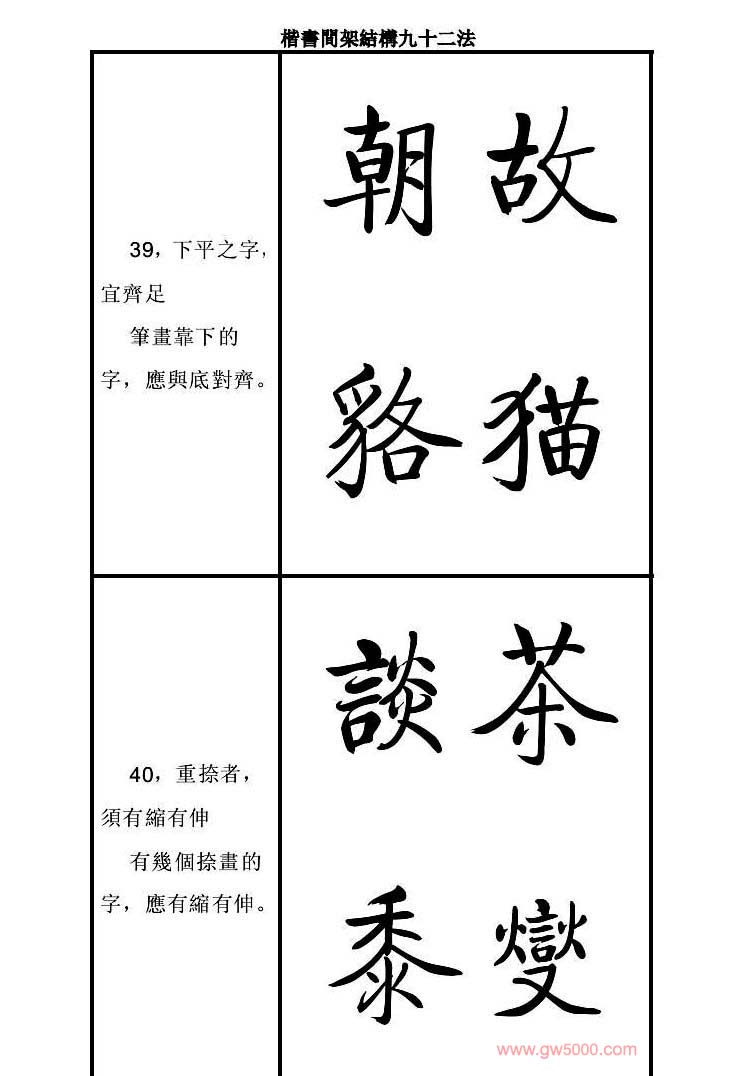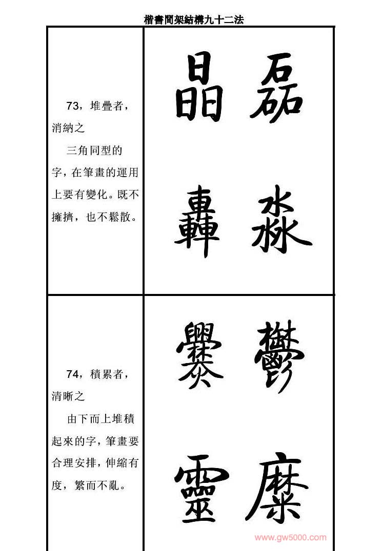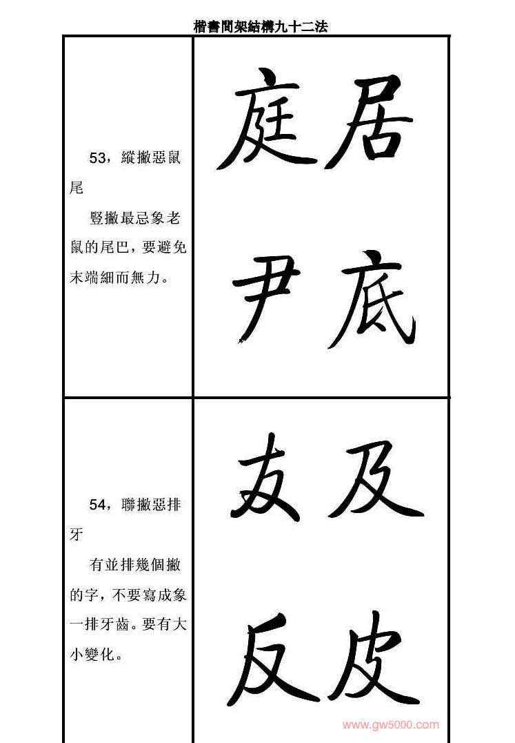 启功字帖楷书间架结构九十二法