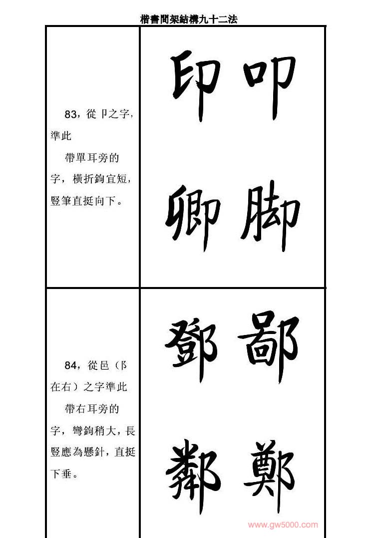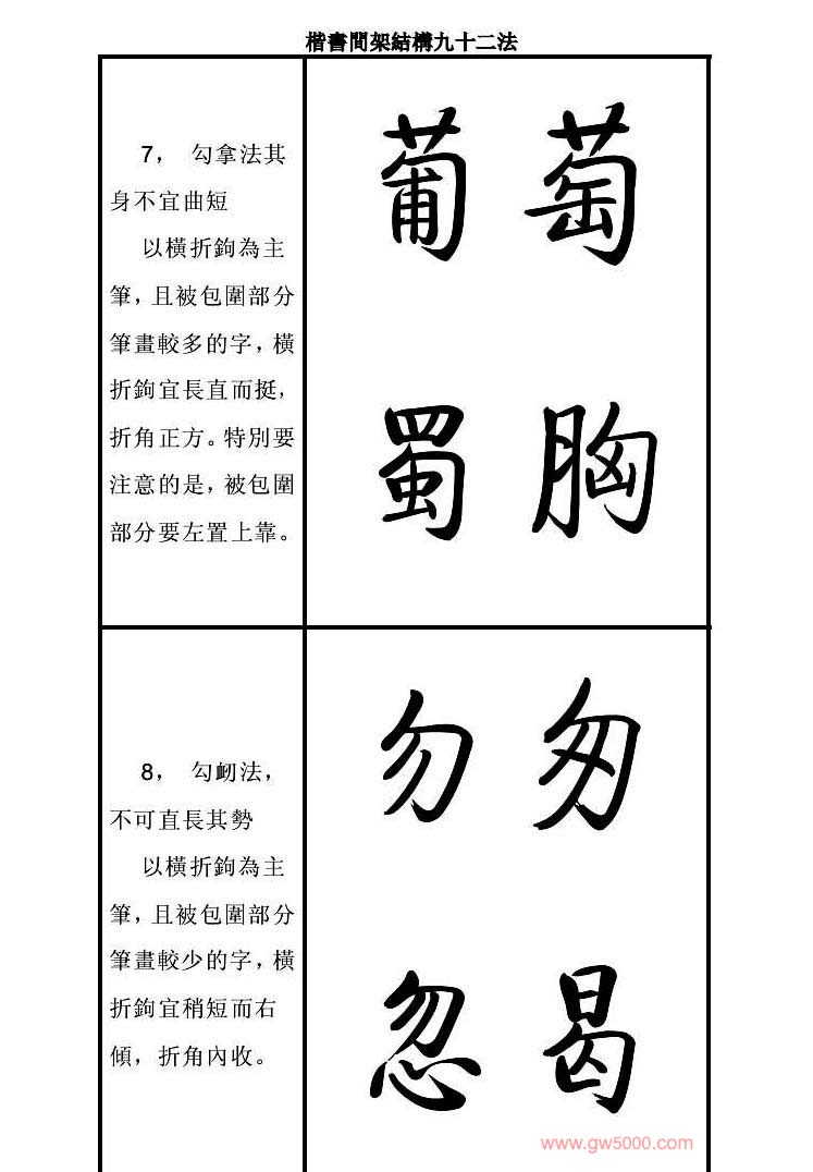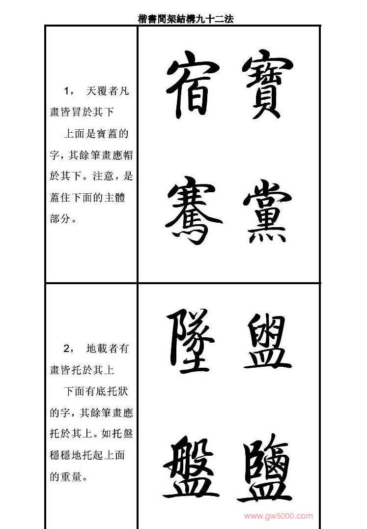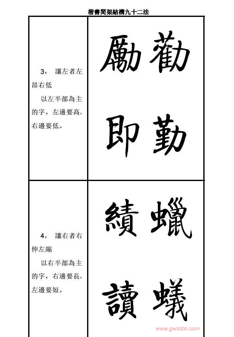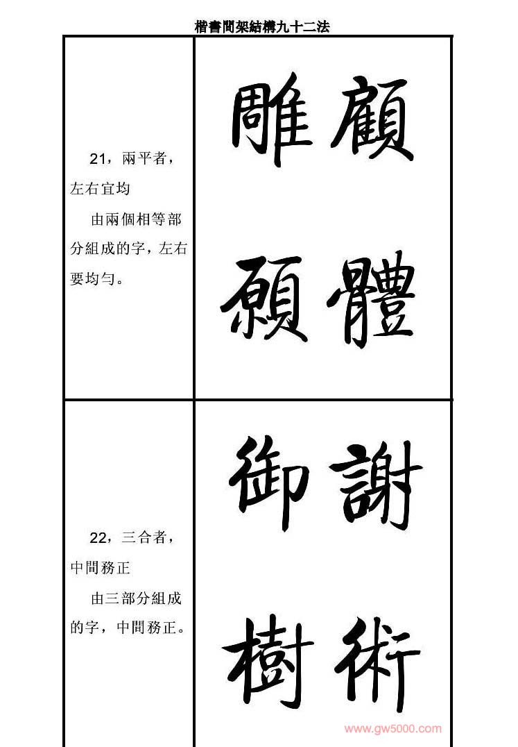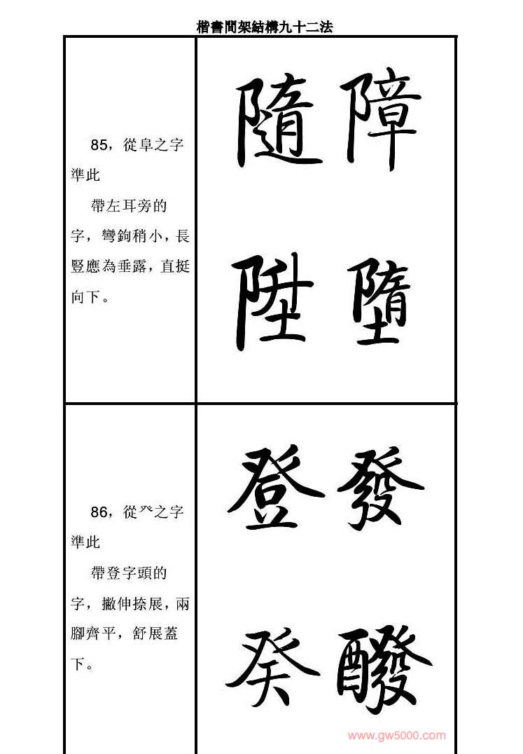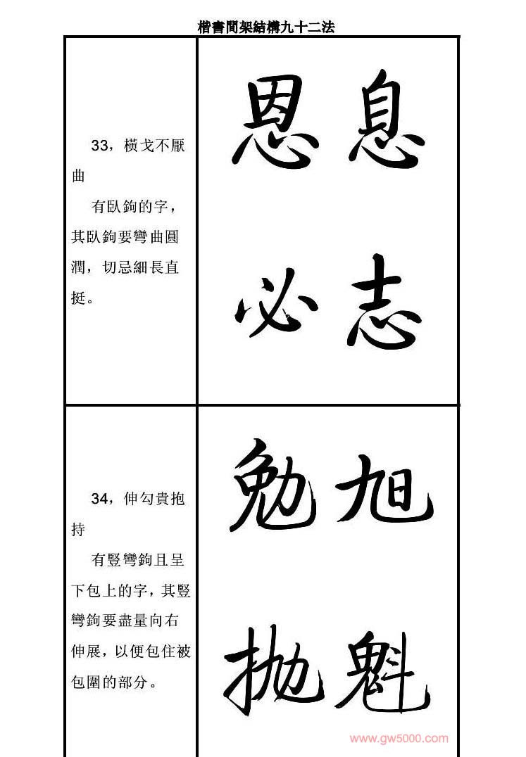启功字帖楷书间架结构九十二法