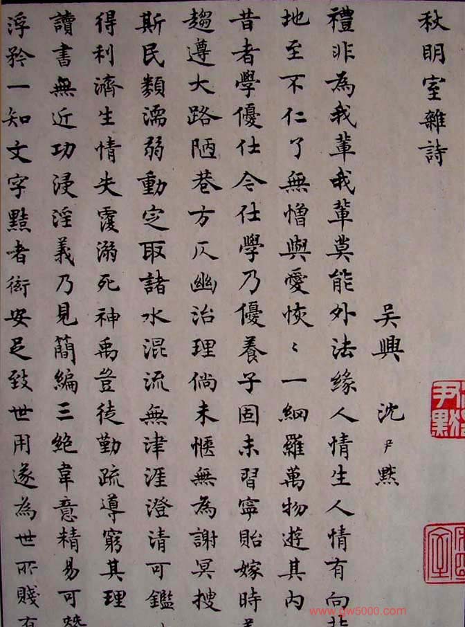沈尹默小楷书法欣赏《秋明室杂诗》,五十九首于1950年6月,楷书图片17张。