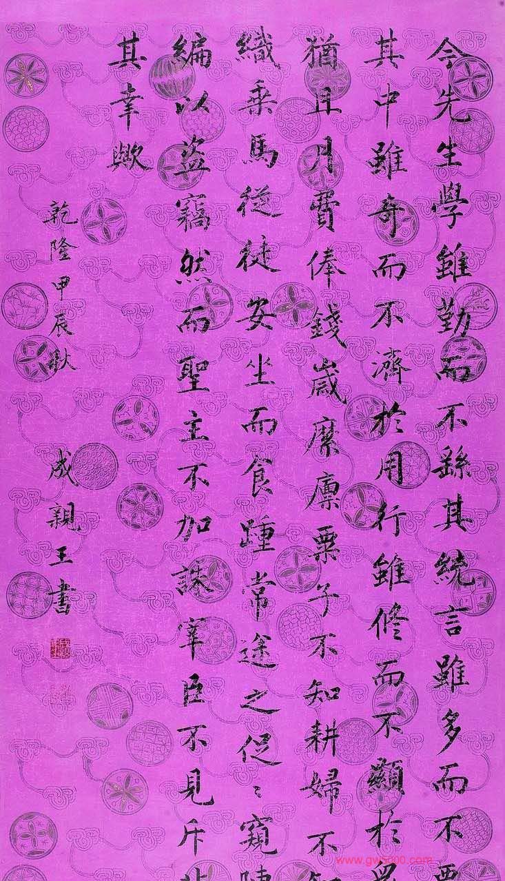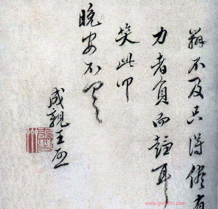 释文:石恪轴已遵谕如数即托价呈收。至《黄庭》及《北磵》卷作如此出脱,已属甚廉,奈家下亦以岁务倥偬,目前措办不及,只得尽有力者负而趋耳,一笑。此叩晚安,不具。成亲王启