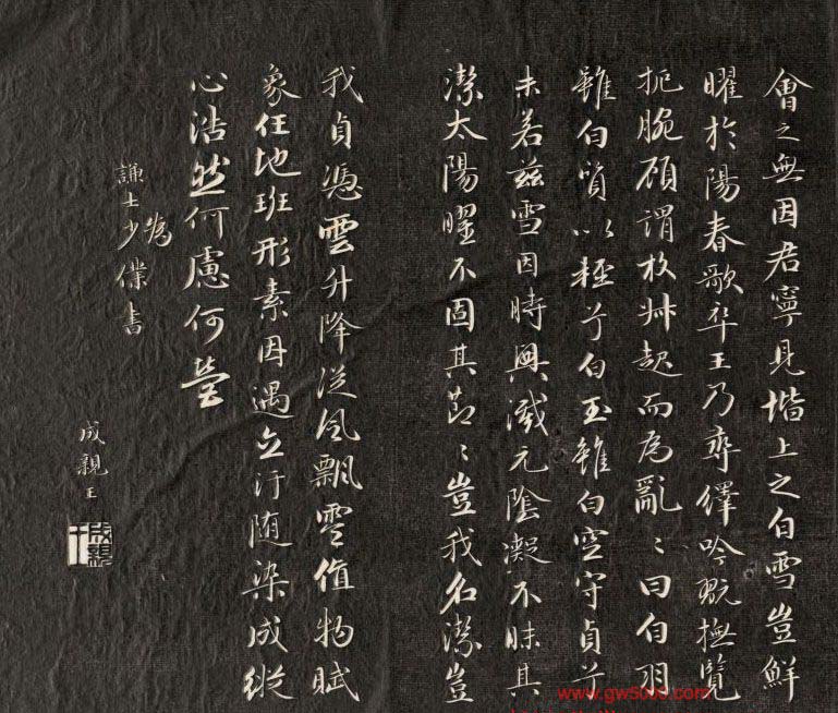 成亲王小字行楷书法雪赋和月赋初拓本,永瑆書,錢泳摹勒詒晉齋法書第四集,嘉慶24年(1819)刻石。爱新觉罗·永瑆书法碑帖图片10张。