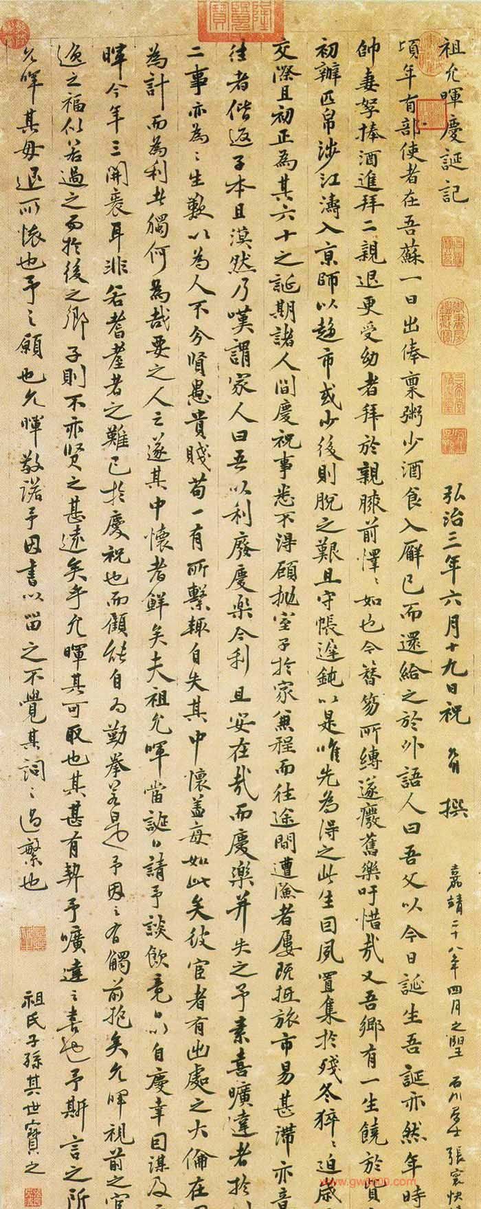 祝允明书法作品《祖允晖庆诞记》,台北故宫博物院藏。