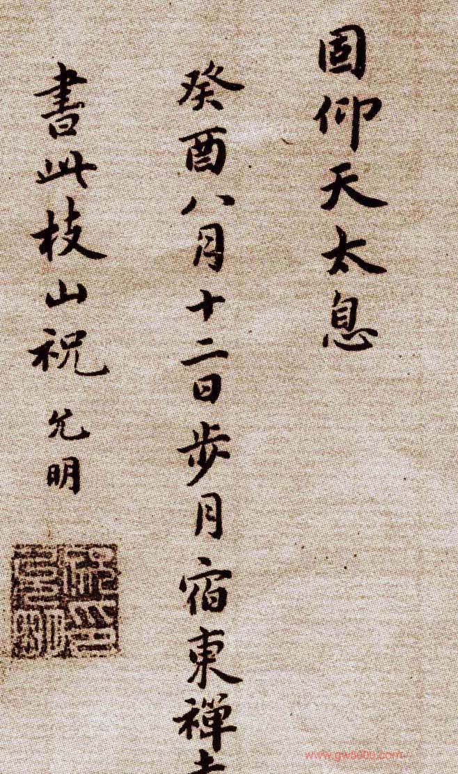祝允明(1460-1526)字希哲,因右手有枝生手指,故自号枝山。他的楷书早年精谨,师法赵孟俯,褚遂良,并从欧,虞而直追“二王”。