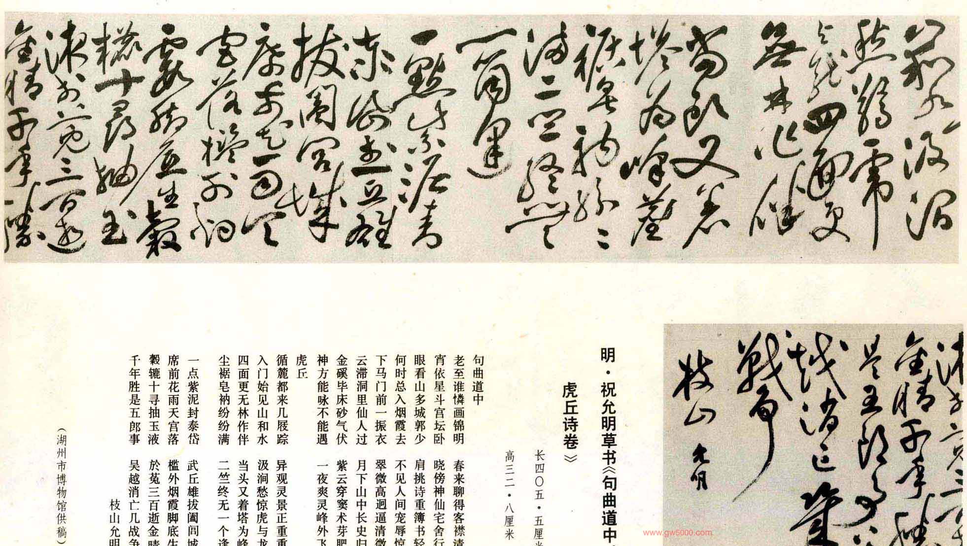 明代祝允明草书欣赏《句曲道中.虎丘诗卷》32.8*405.5厘米,湖州市博物馆藏.祝枝山书法长卷图片10张.
