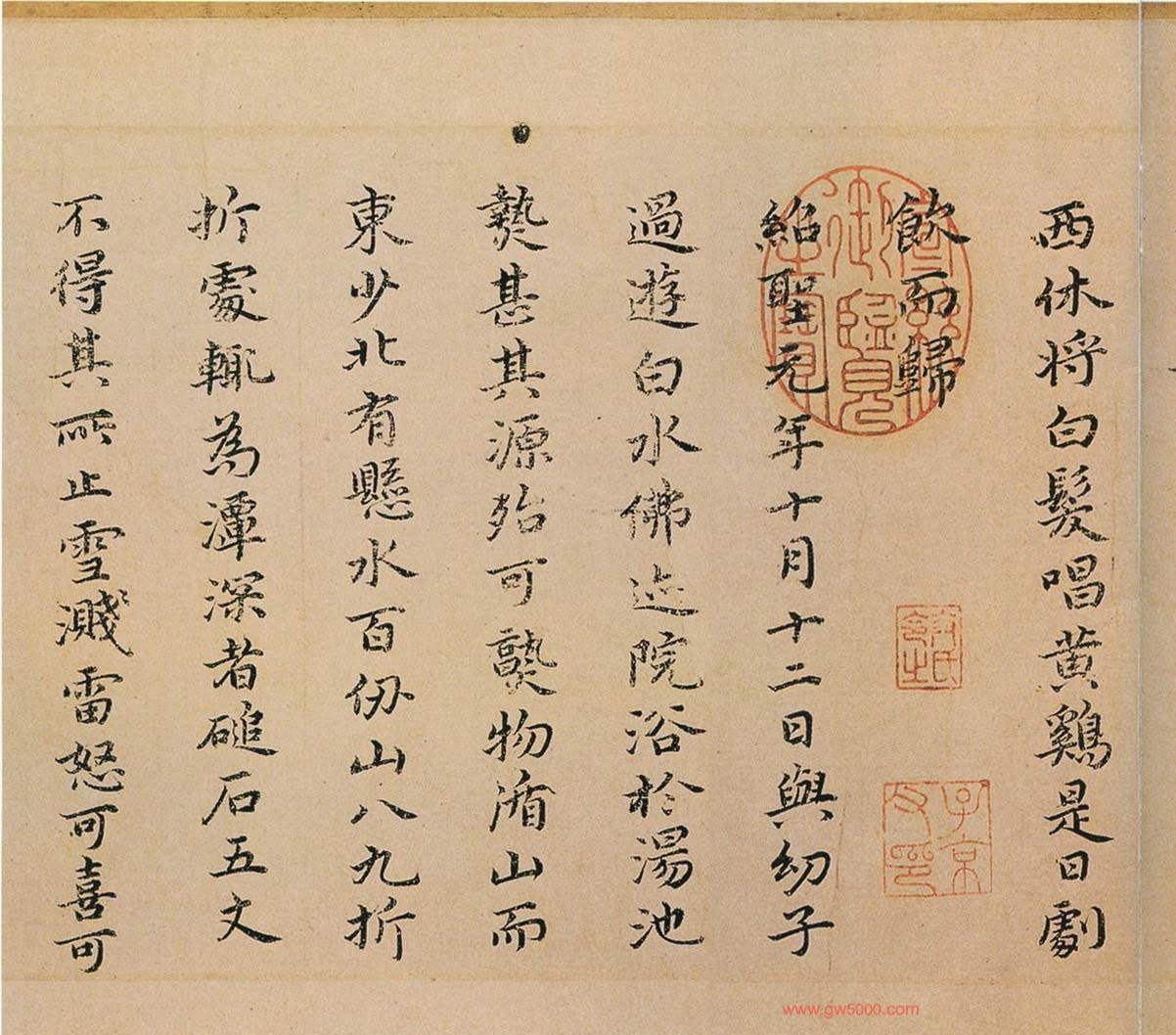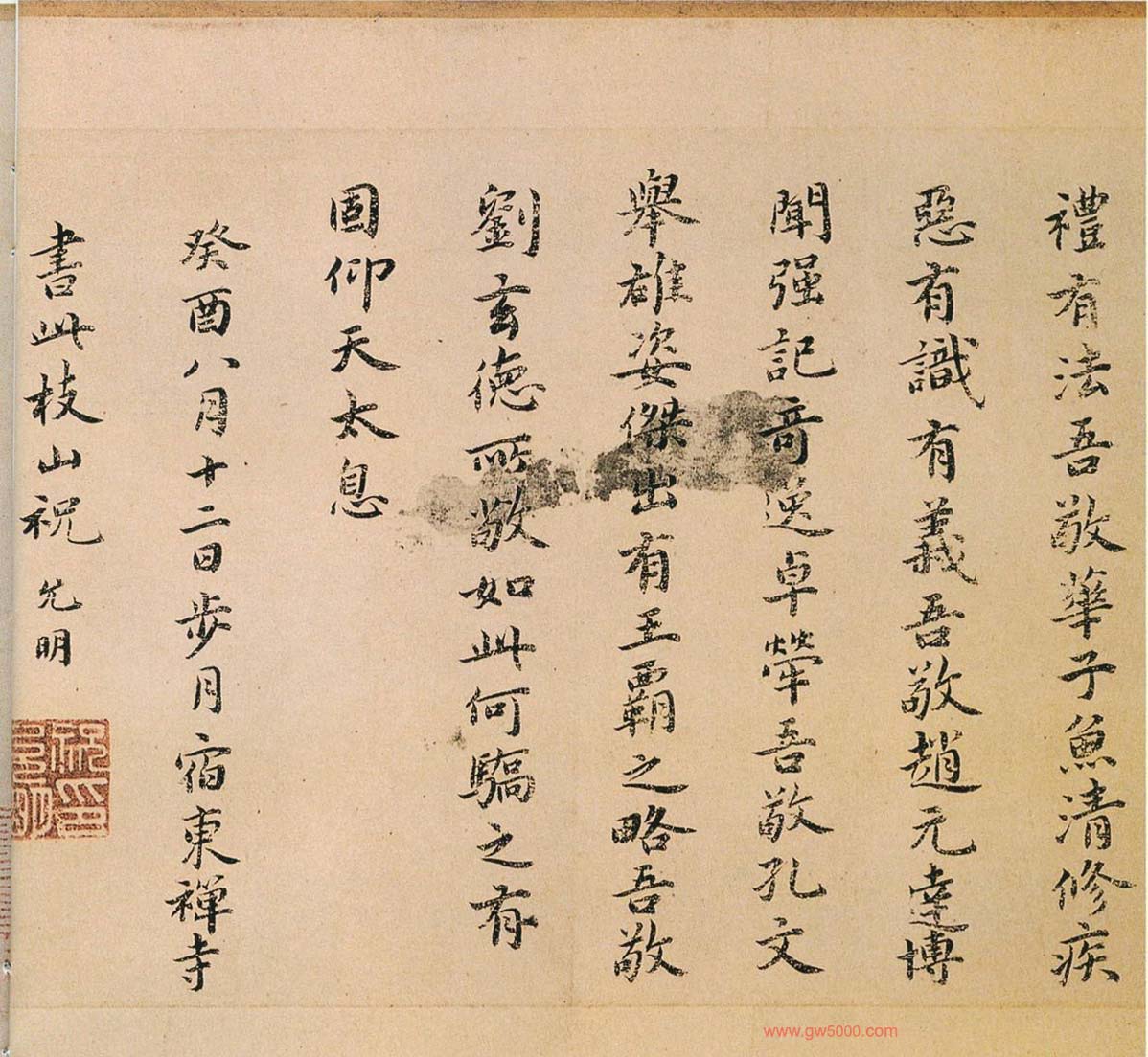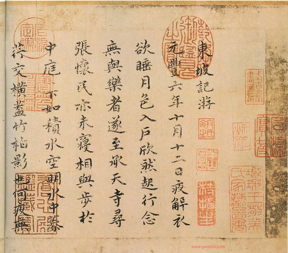 祝允明书法墨迹欣赏《东坡记游卷》彩版纸本,纵13.4厘米,横269.6厘米,款署“癸酉八月十二日步月宿东禅寺书此,枝山祝允明”。现藏辽宁省博物馆。附王宠和文彭书跋,枝指山人小楷书法图片17张。