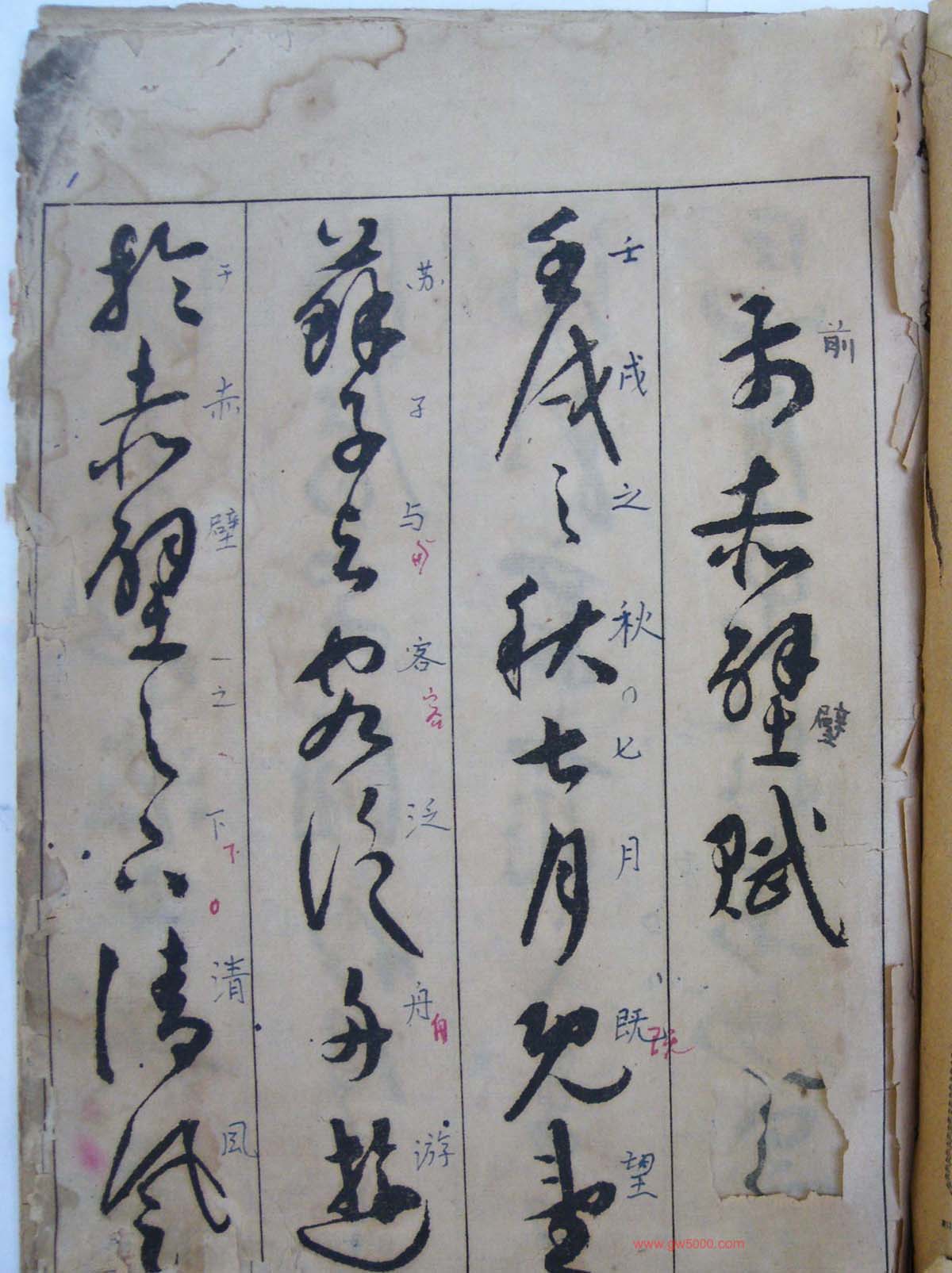明代祝允明草书前后赤壁赋图书两种,祝希哲有多本草书《赤壁赋》流传于世,其草书作品气势雄强,泼墨淋漓。一扫明初的沉滞之气,将明代草书推向了高峰。