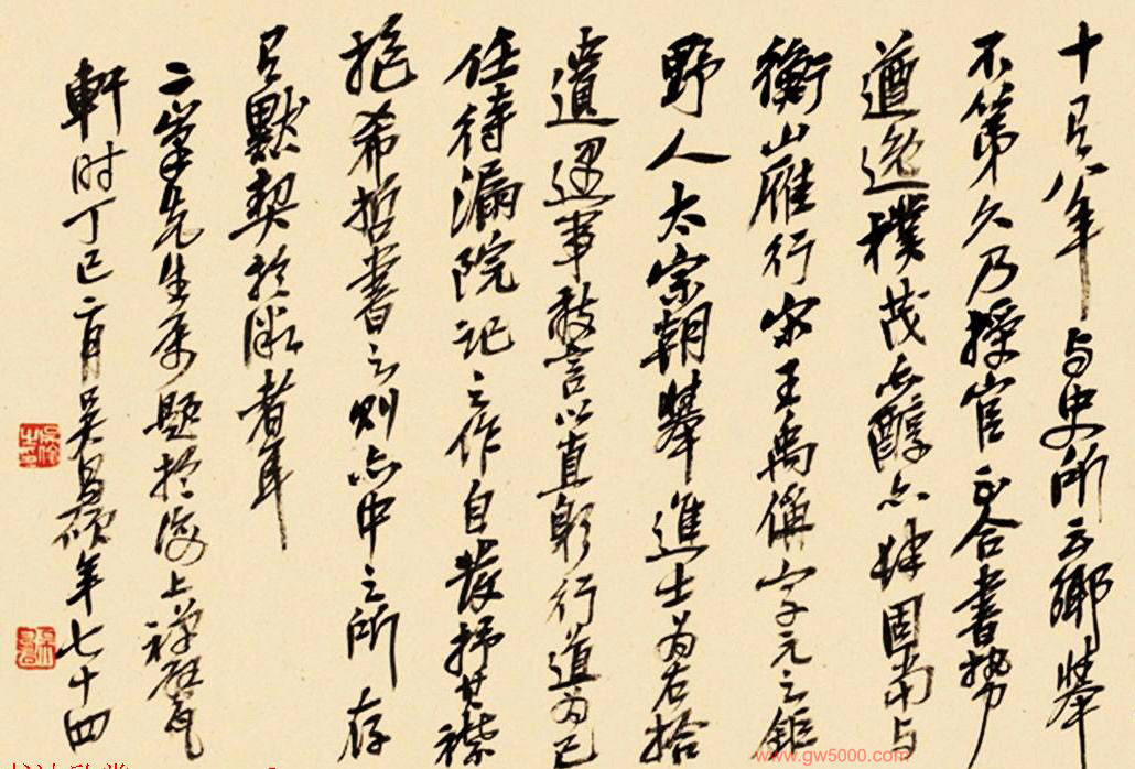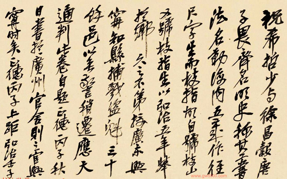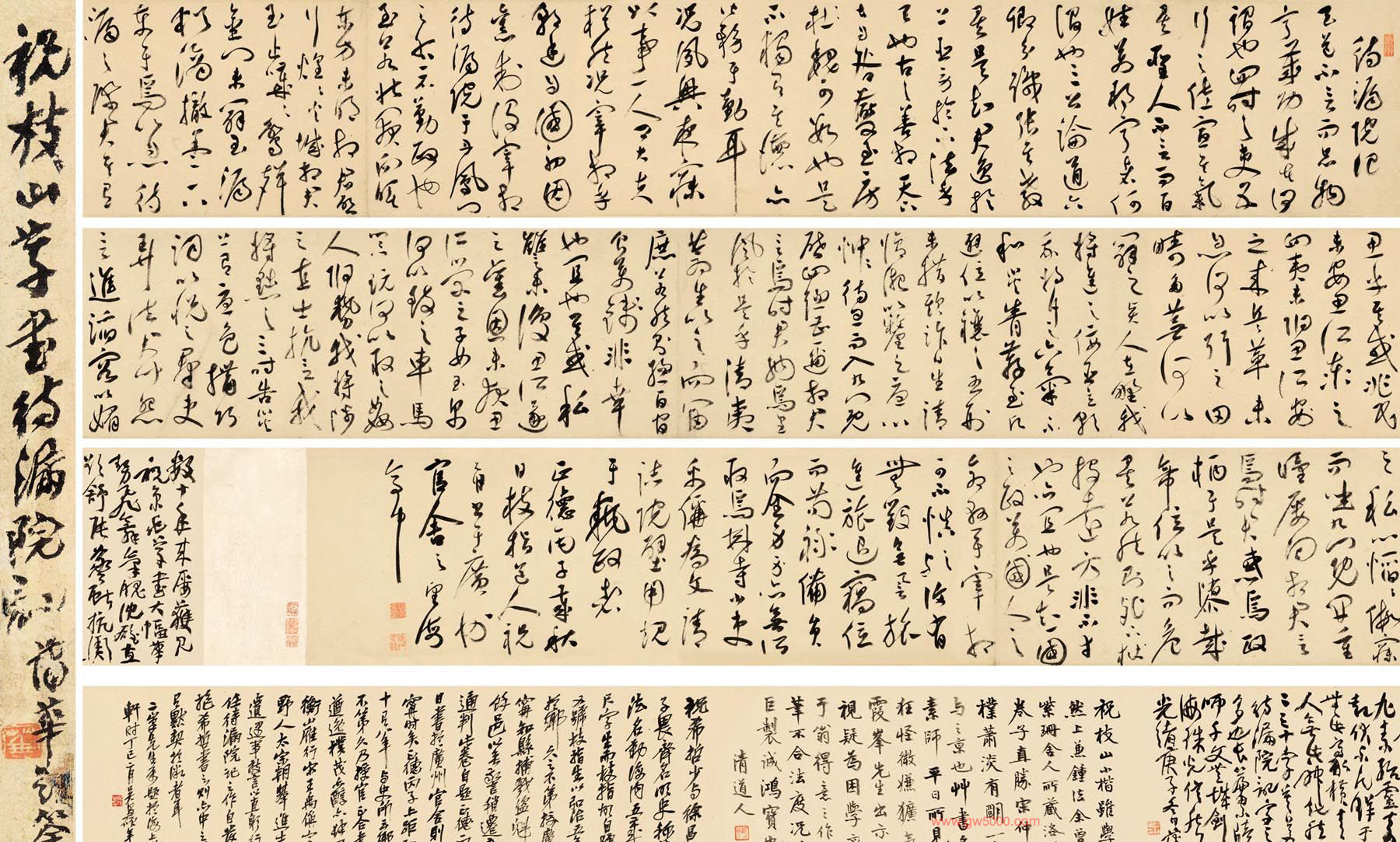 此卷作于正德十一年丙子(1516年),祝允明五十七岁广东任上,正是他泛澜百家,出入变化而生面自成之时。因此,信手书来,如水流花开,起倒自然而缤纷满目。