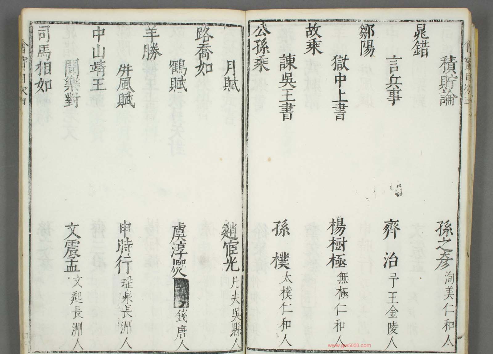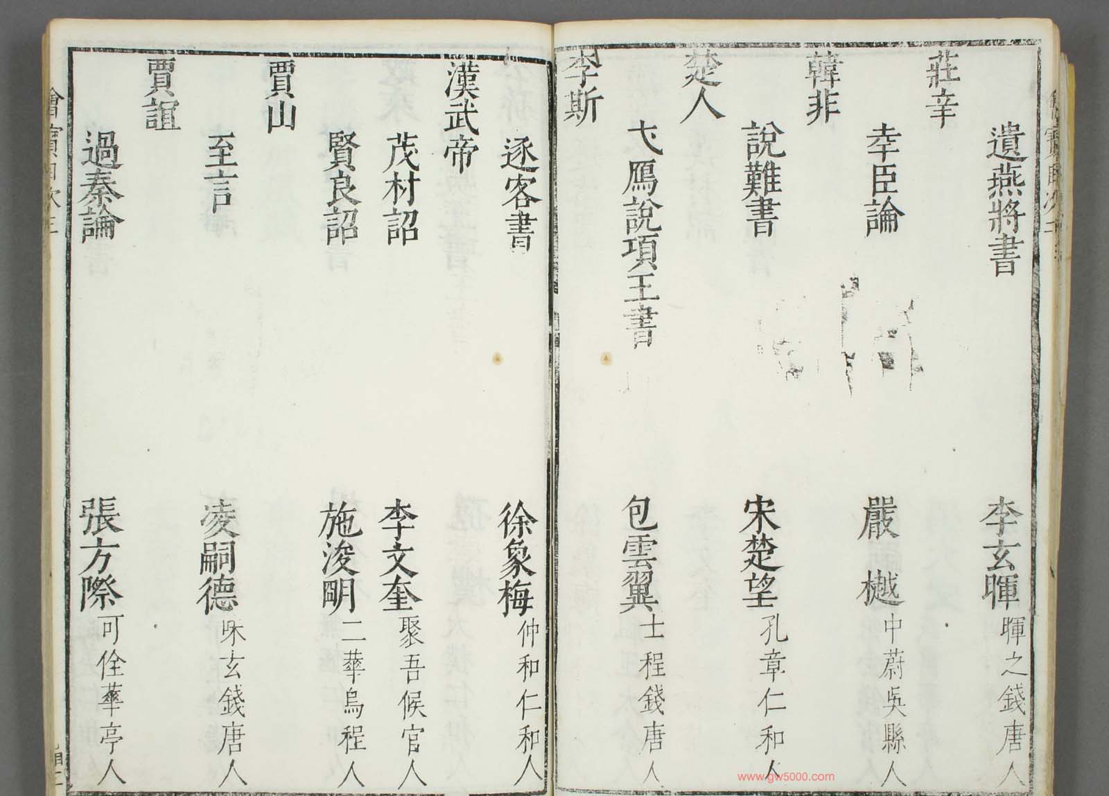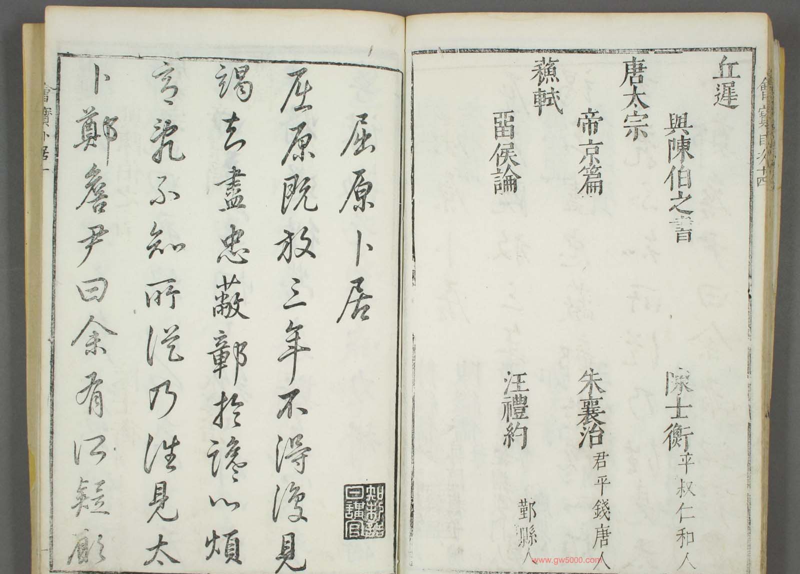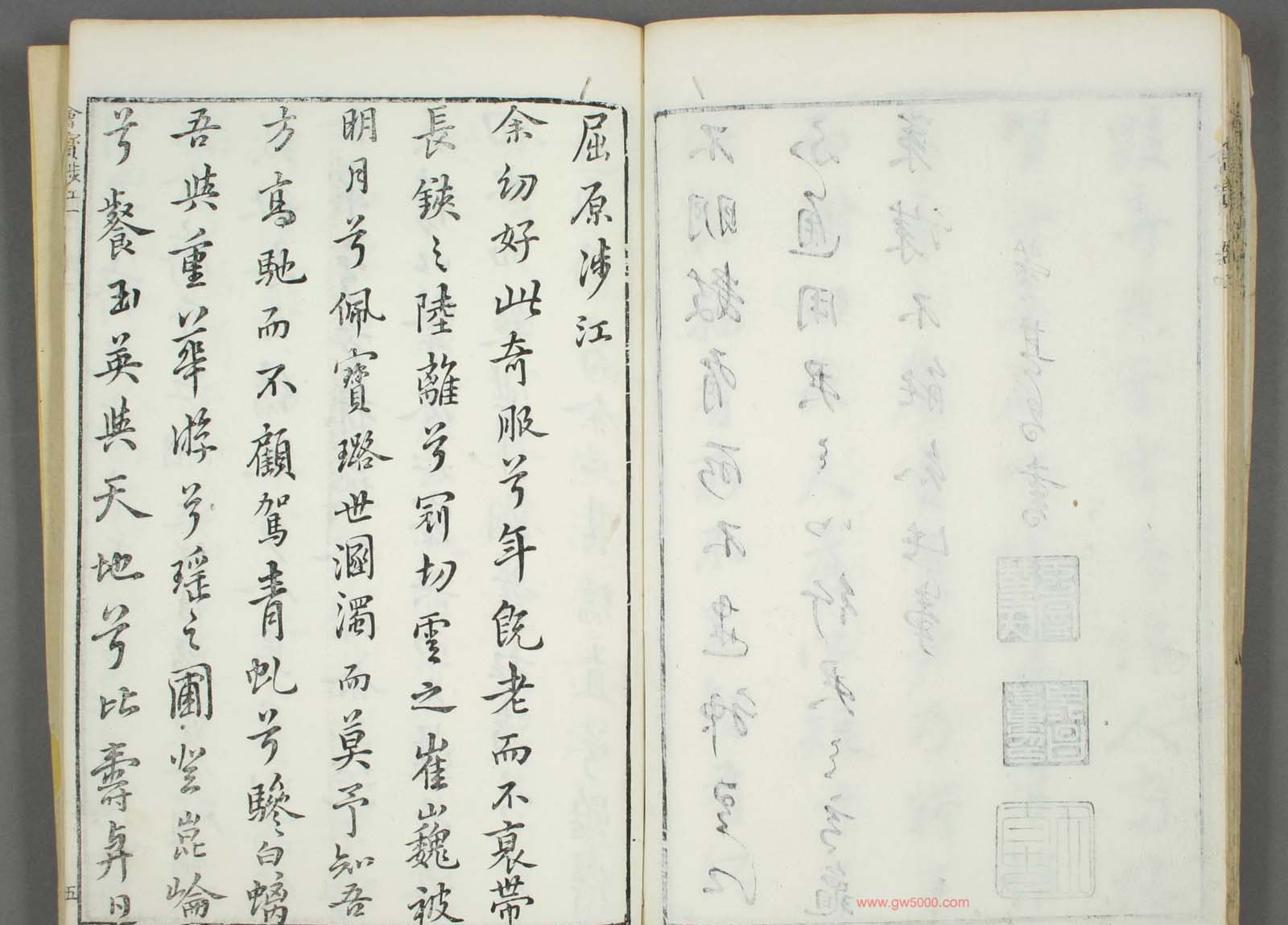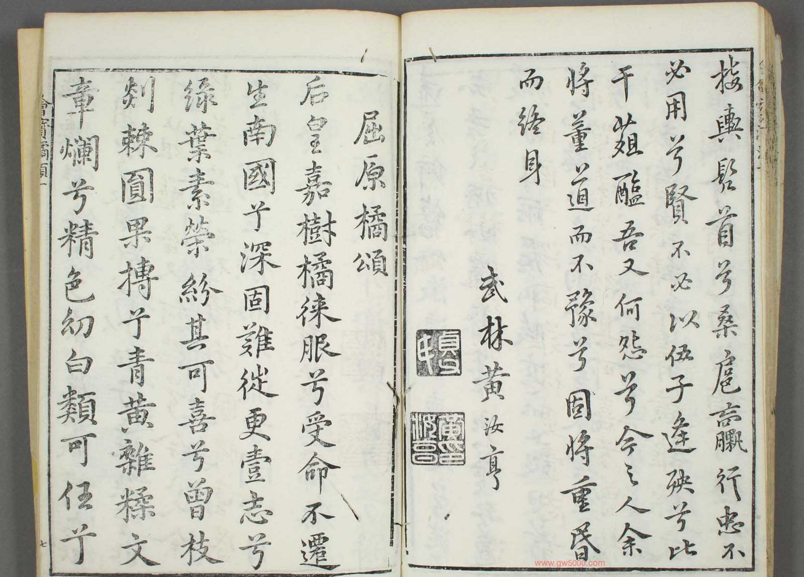 朱文治辑《文字会宝》第一册,董其昌等书屈原三篇,明万历三十六年(1608年)刻本。