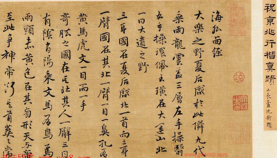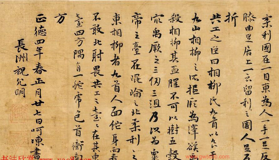 题识:海外西经。正德四年春正月廿七日呵冻书,长洲祝允明。