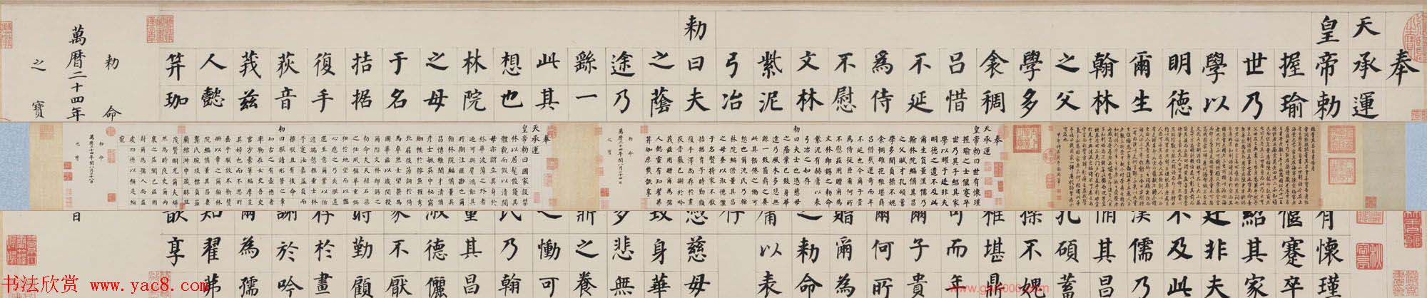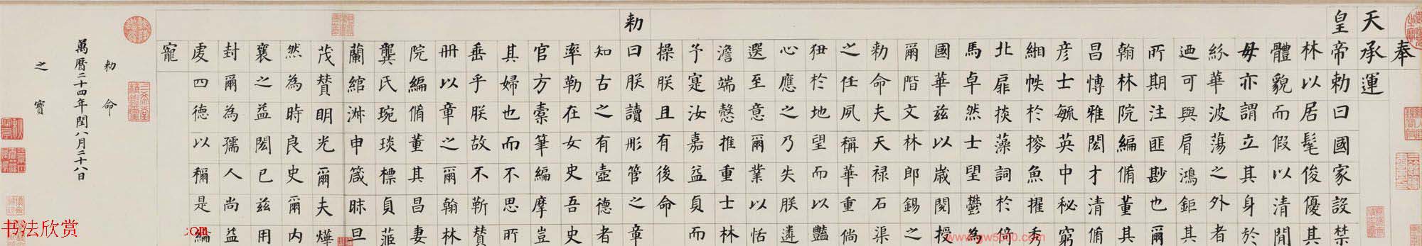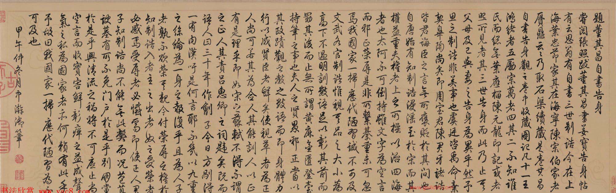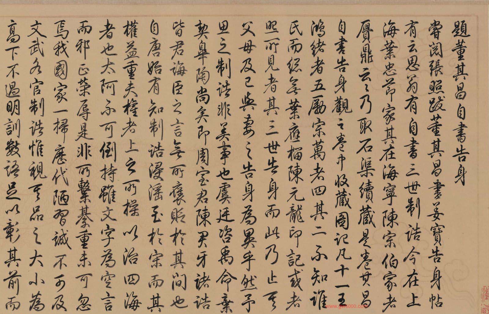 明代董其昌楷书自诰身帖绢本全卷高清本,绢本尺寸:26.8x414.3厘米,像素:59906x3661,大小:837MB,辽宁省博物馆藏。
