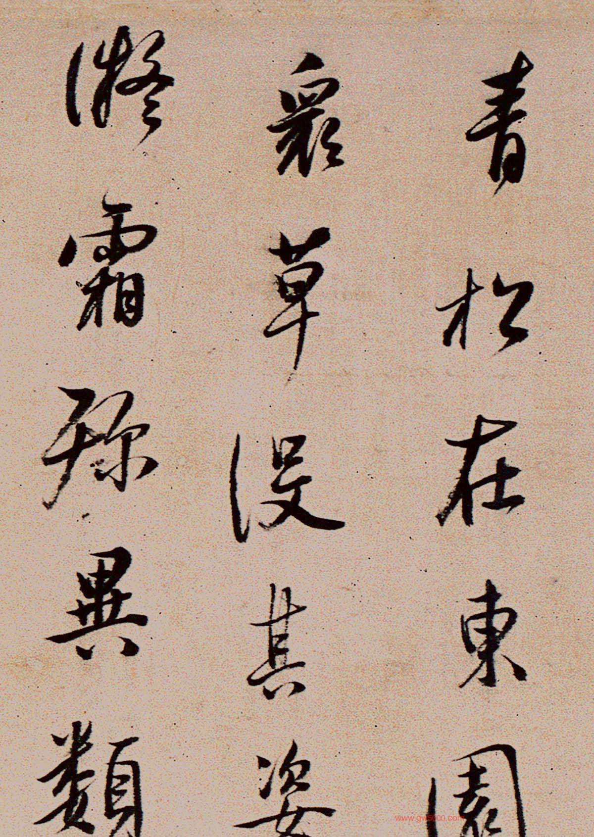 青松在东园,众草没其姿;凝霜殄异类,卓然见高枝。连林人不觉,独树众乃奇。提壶挂寒柯,远望时复为。吾生梦幻间,何事绁尘羁!