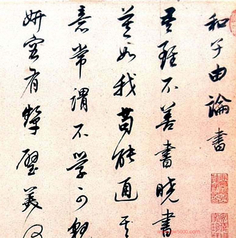 吾虽不善书,晓书莫如我。苟能通其意,常谓不学可。貌妍容有颦,璧美何妨橢。端庄杂流丽,刚健含婀娜。好之每自讥,不谓子亦颇。书成辄弃去,谬被旁人裹。体势本阔略,结束入细麽。子诗亦见推,语重未敢荷。迩来又学射,力薄愁官笥。多好竟无成,不精安用夥。何当尽屏去,万事付懒惰。吾闻古书法,守骏莫如跛。世俗笔苦骄,众中强嵬騀。钟张忽已远,此语与时左。