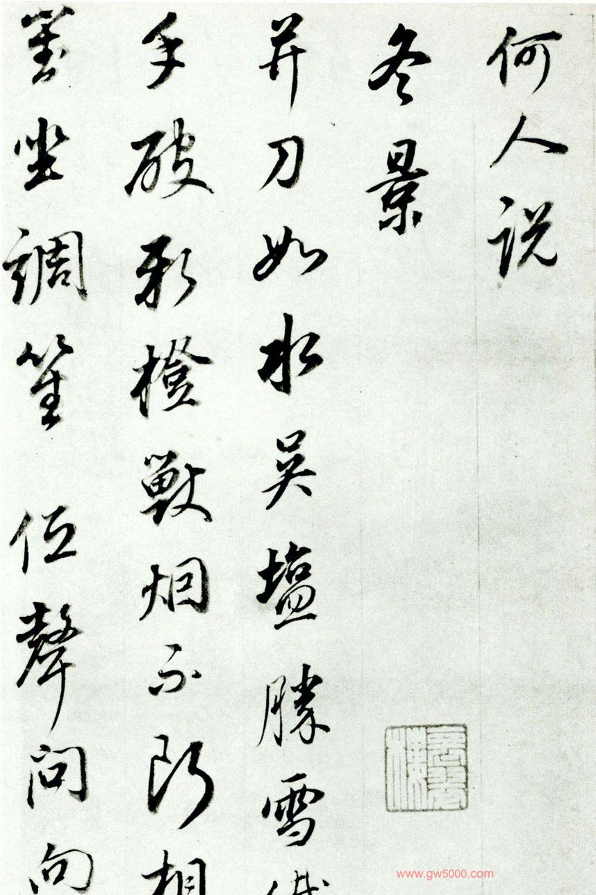 漠漠江皋 迢迢驿路 天教为传春信 万木丛边 百花头上 不管雪风飞紧 寻交访旧 惟翠竹寒松相认